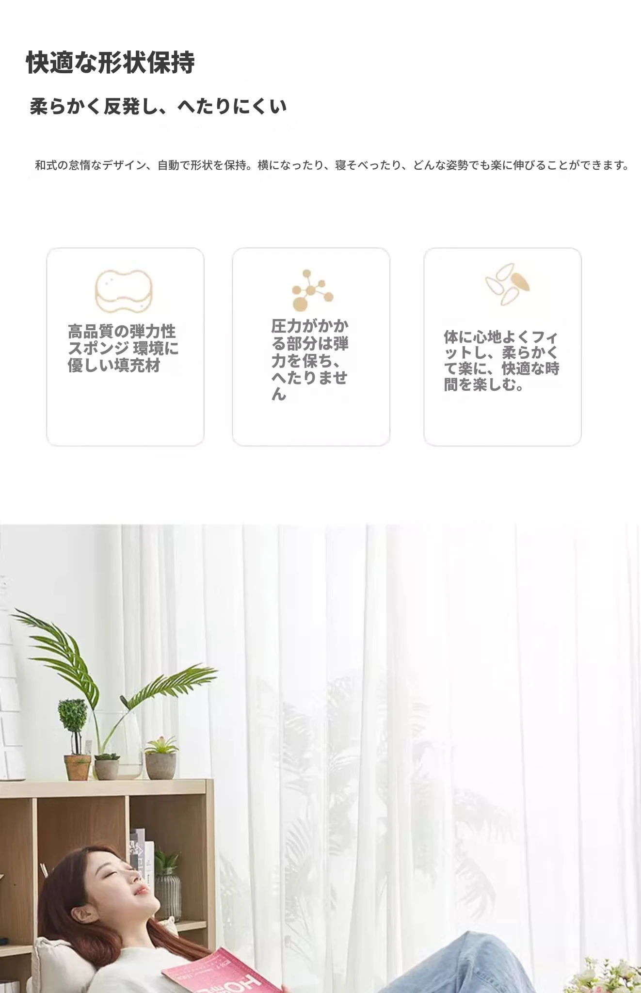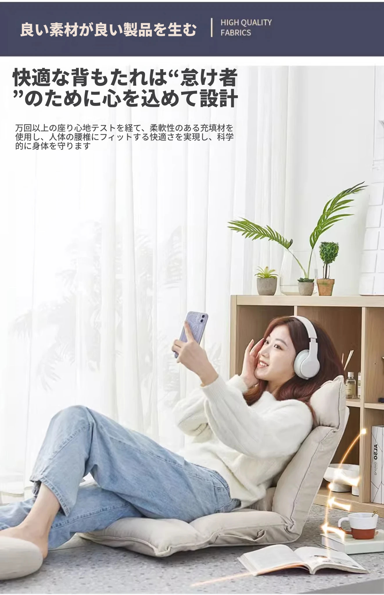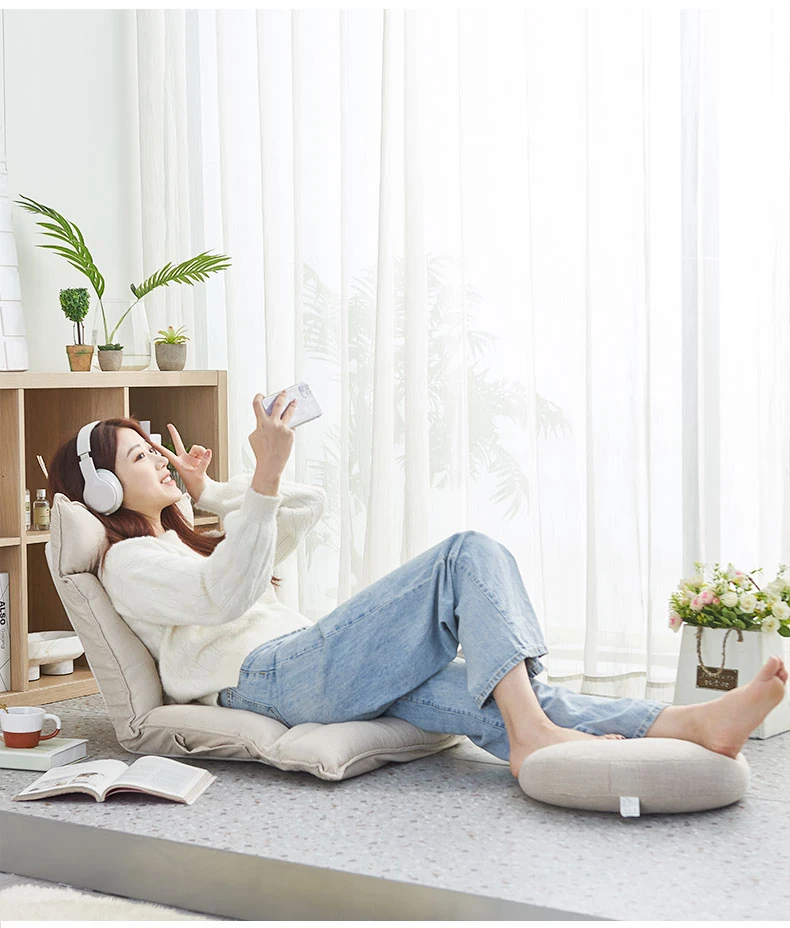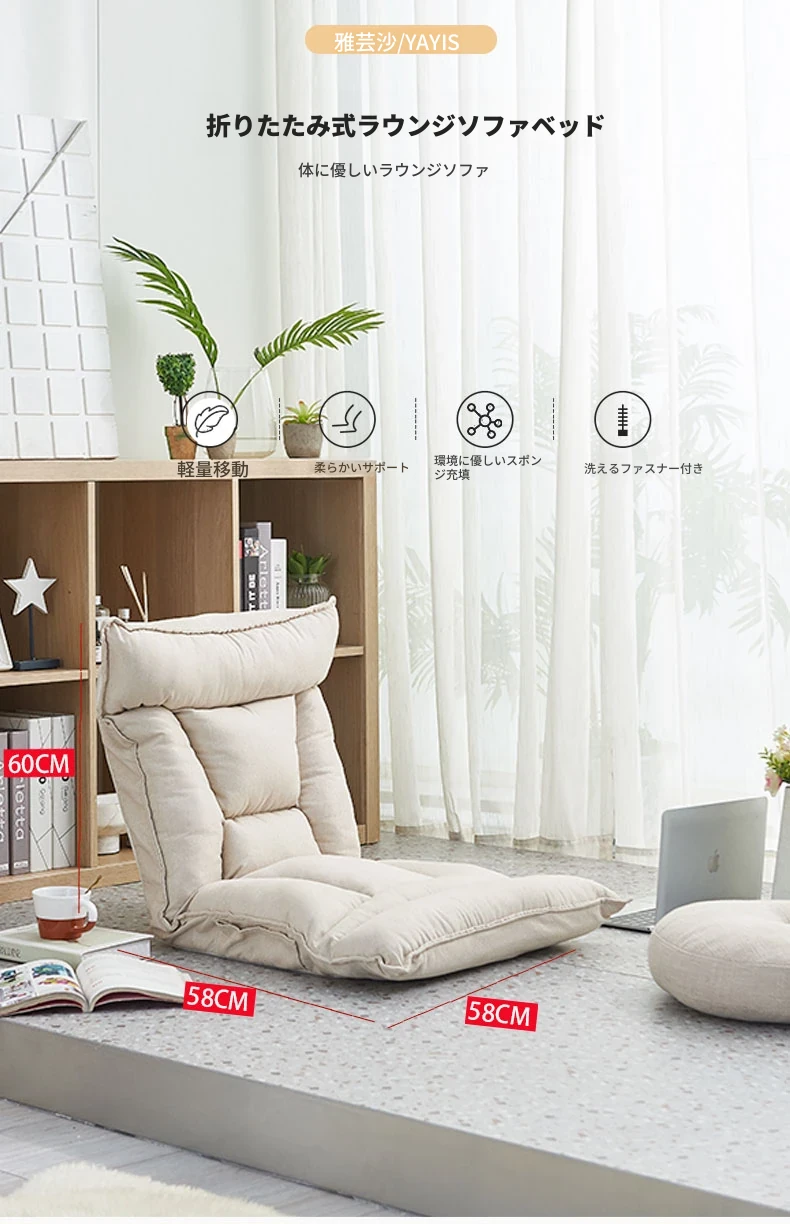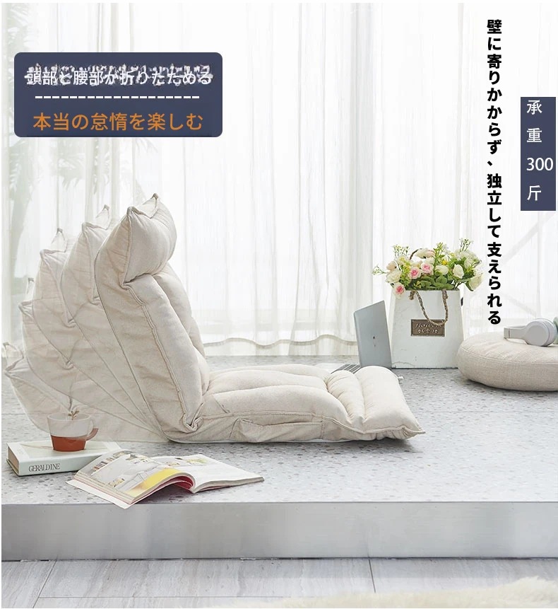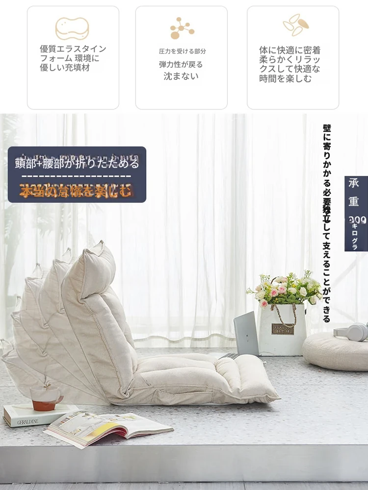 おしゃれな折りたたみソファ、窓辺やベッドにぴったりなクッションチェア!授乳やリラックスタイムに最適、畳スタイルの座布団で、寮やバルコニーでも大活躍!快適なひとときをあなたに。