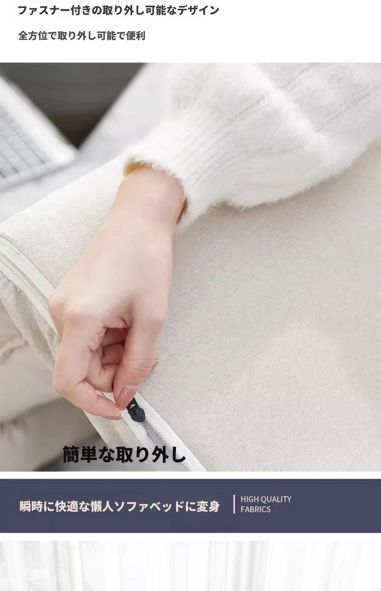 アイボリー - 肌触りの良いコットンリネン【アップグレード版 + 頭部、腰部調節可能】