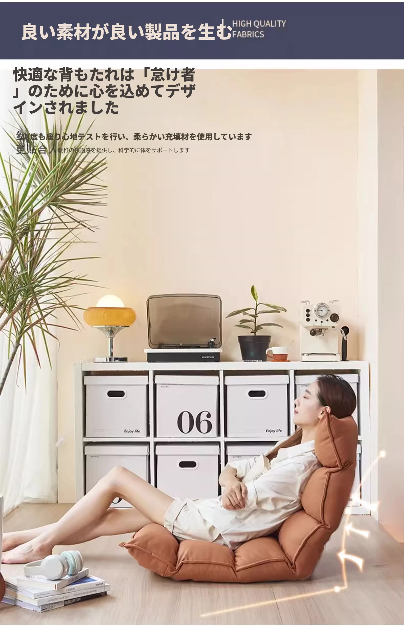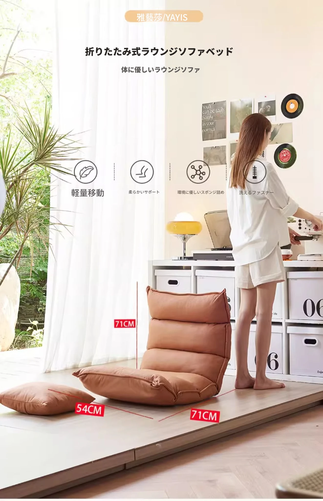 おしゃれなラウンジソファ!折りたたみ式の一人用畳ソファは、育児にも最適。和室やバルコニー、窓際でのリラックスタイムにぴったりです。快適な背もたれ付きで、あなたのくつろぎ空間を演出します!