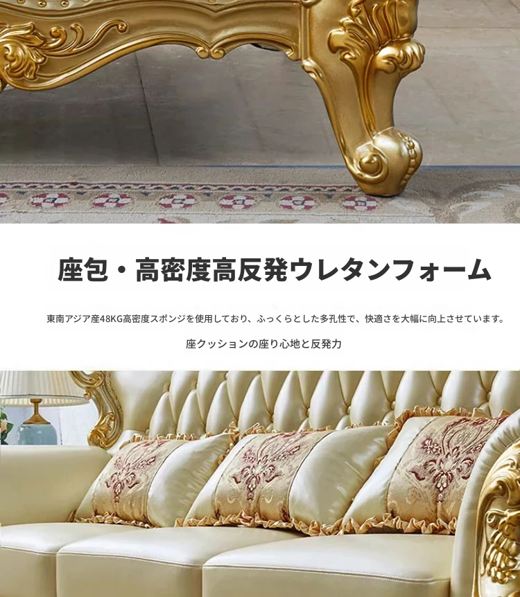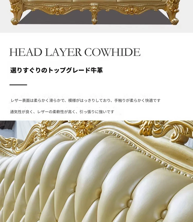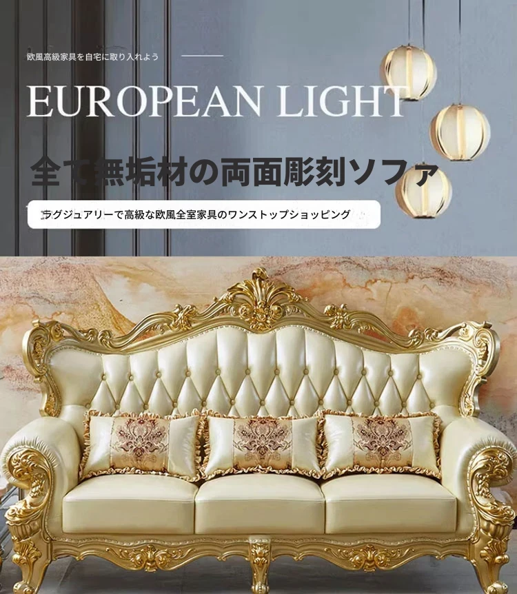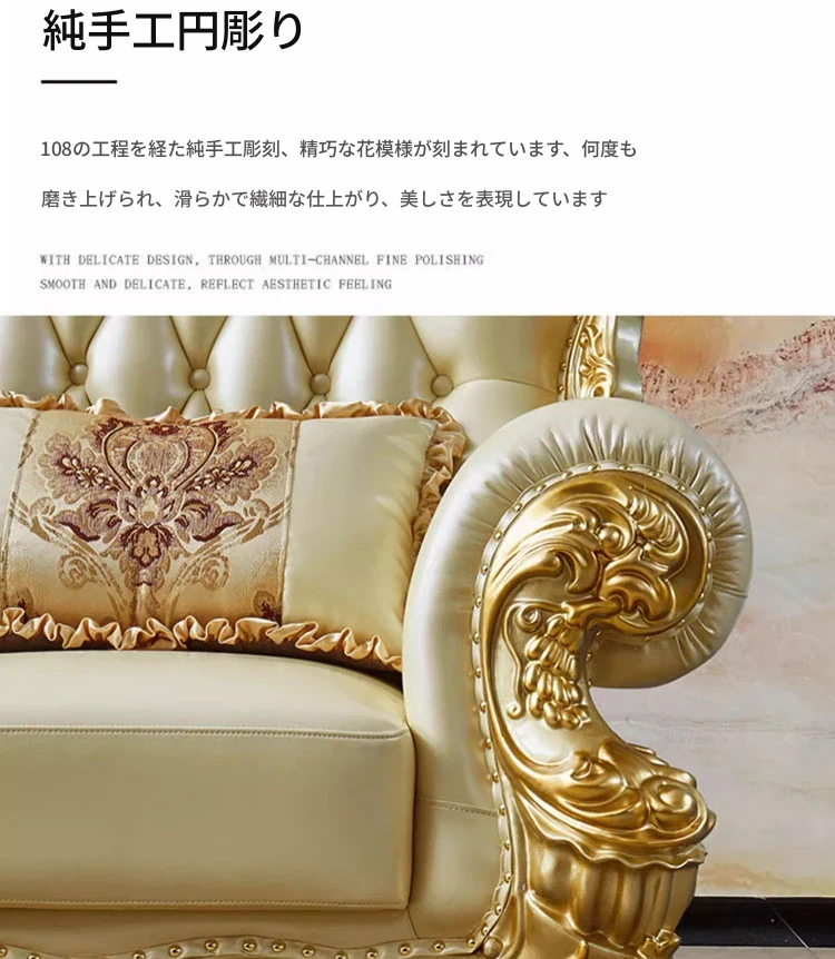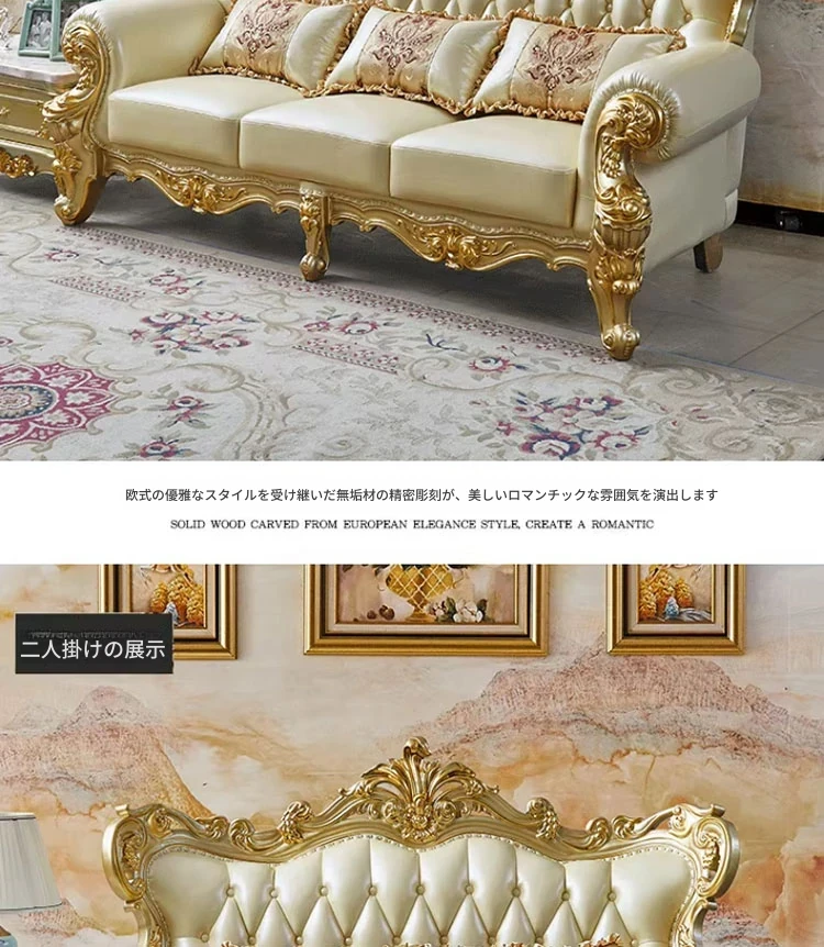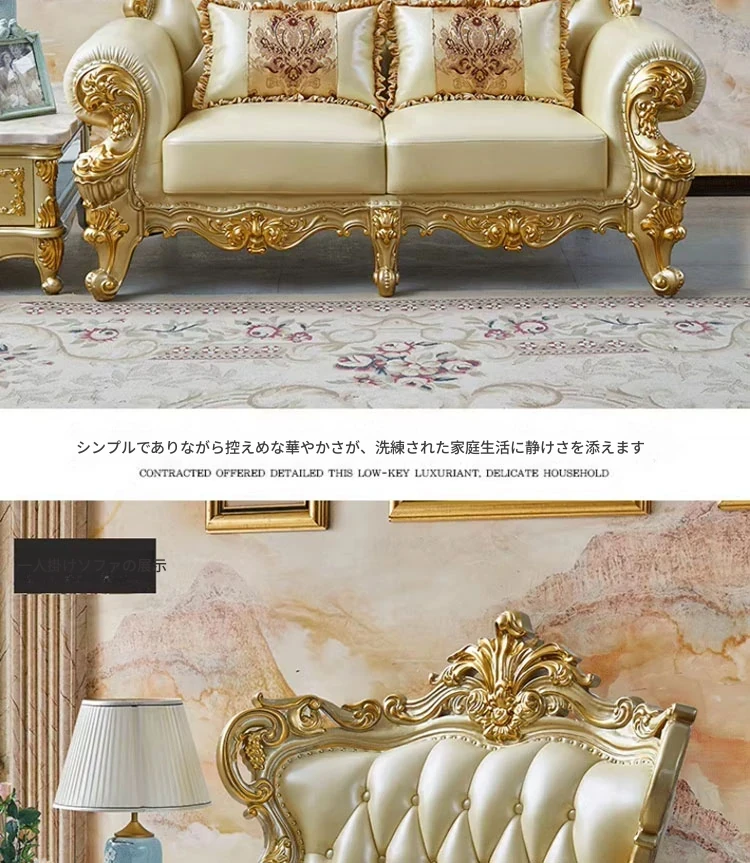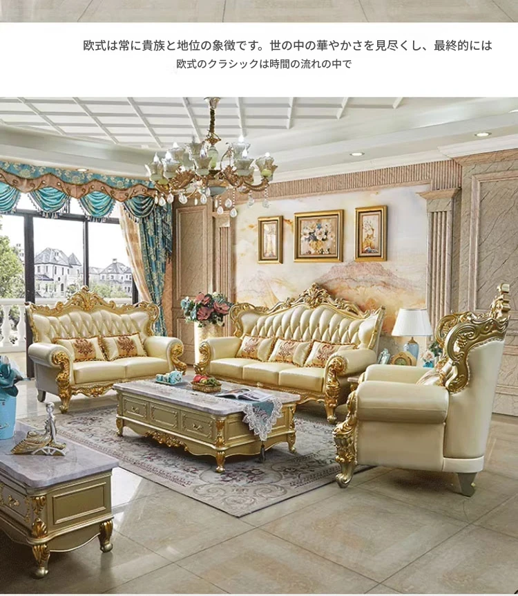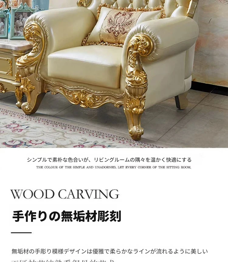 欧風本革ソファー 高級レザー使用、ヴィラのリビングにぴったり!ダブルサイド彫刻デザインで、贅沢で洗練された123ソファーセット。上質な素材と優雅なスタイルで、お部屋を華やかに演出します。