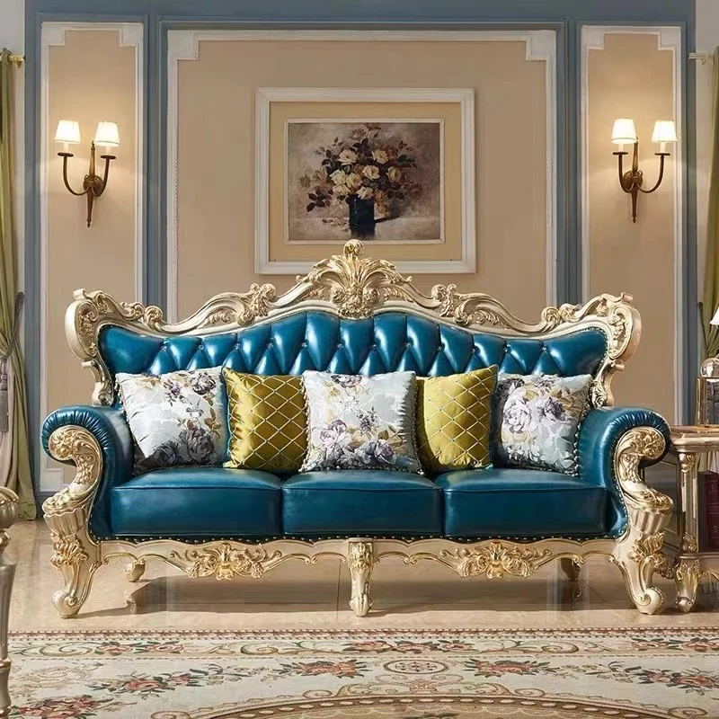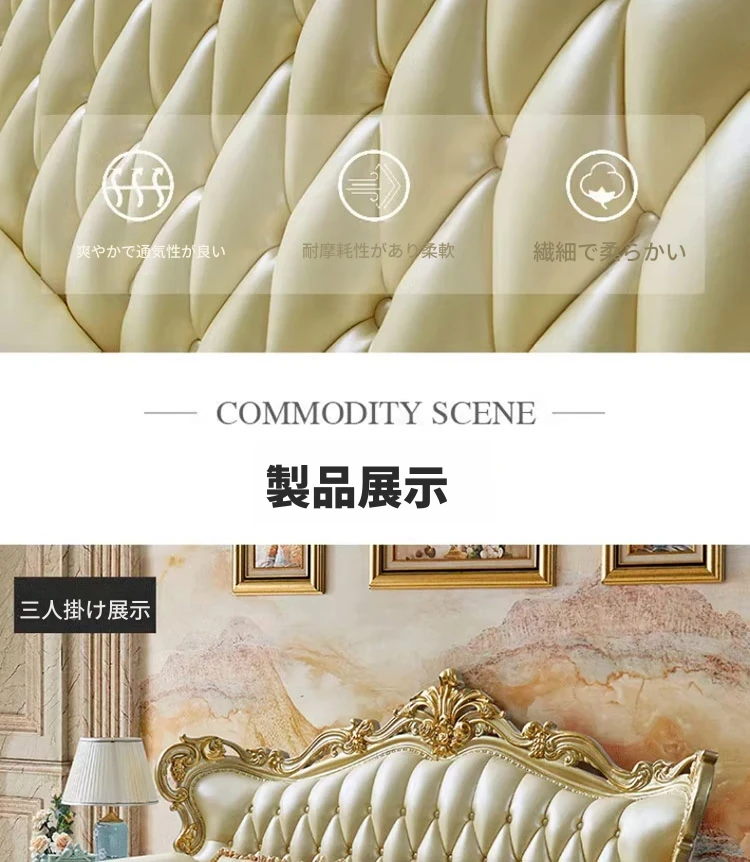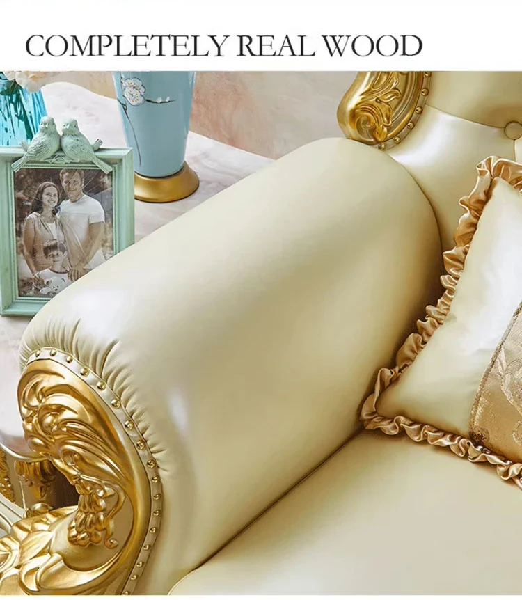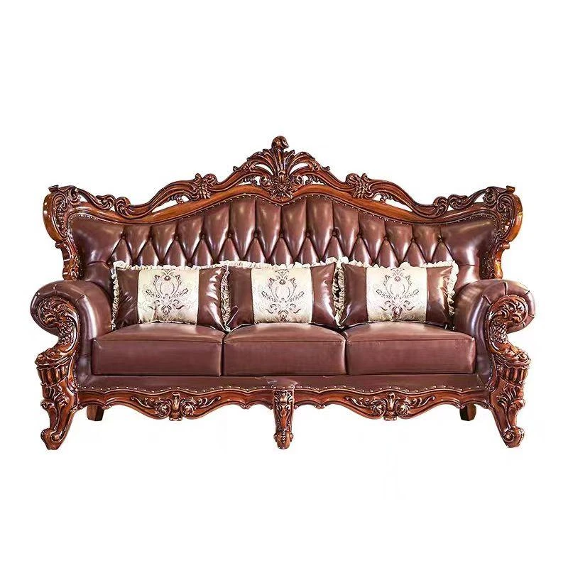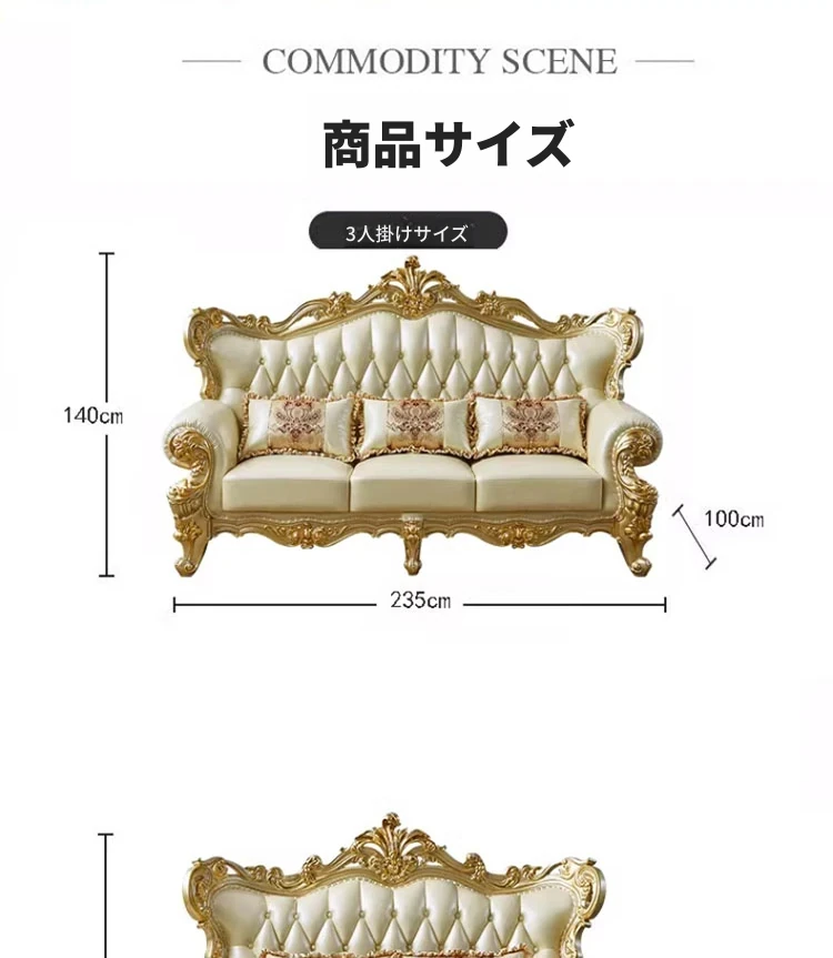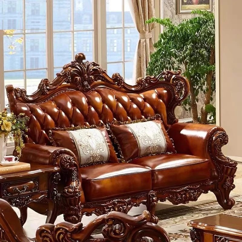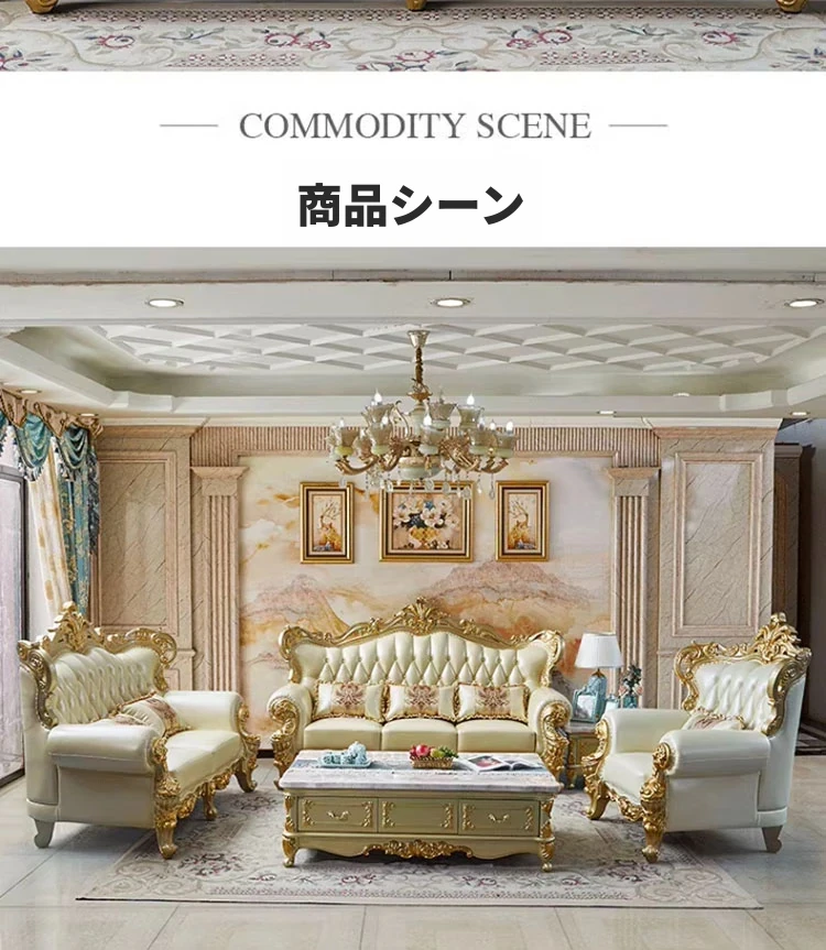欧風本革ソファー 高級レザー使用、ヴィラのリビングにぴったり!ダブルサイド彫刻デザインで、贅沢で洗練された123ソファーセット。上質な素材と優雅なスタイルで、お部屋を華やかに演出します。