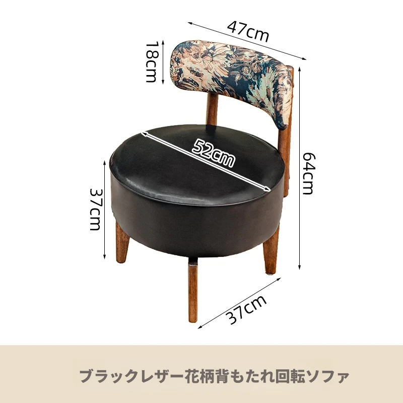 黒皮花柄背もたれ回転ソファ