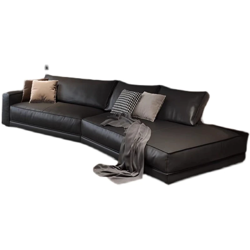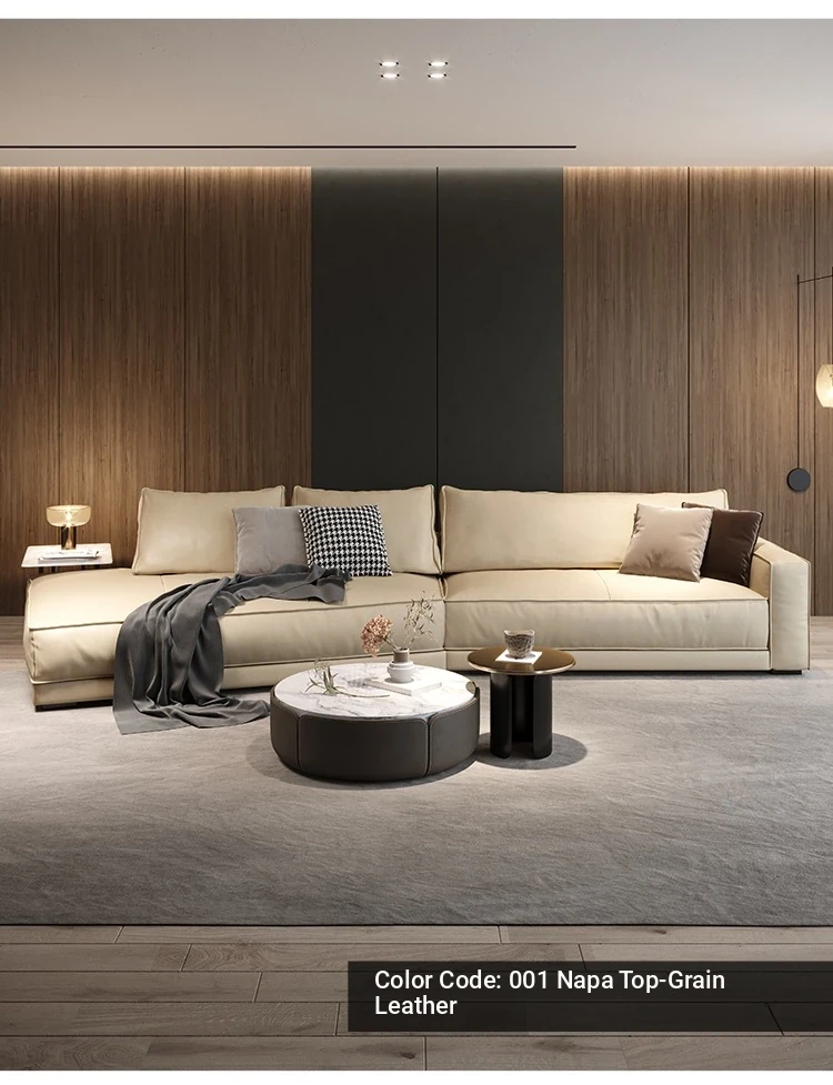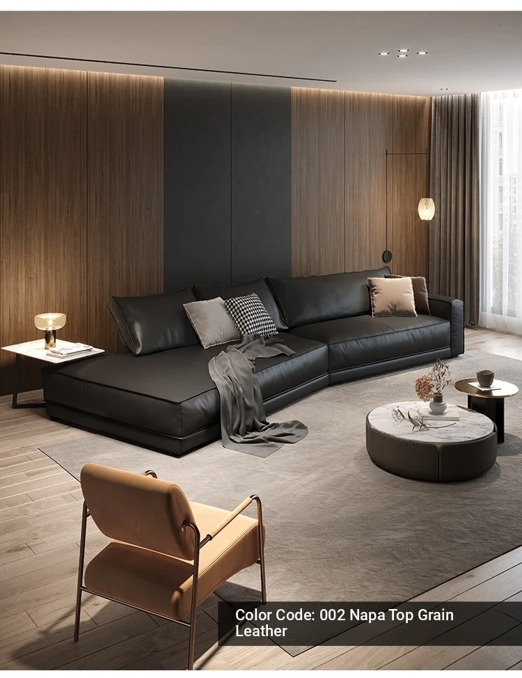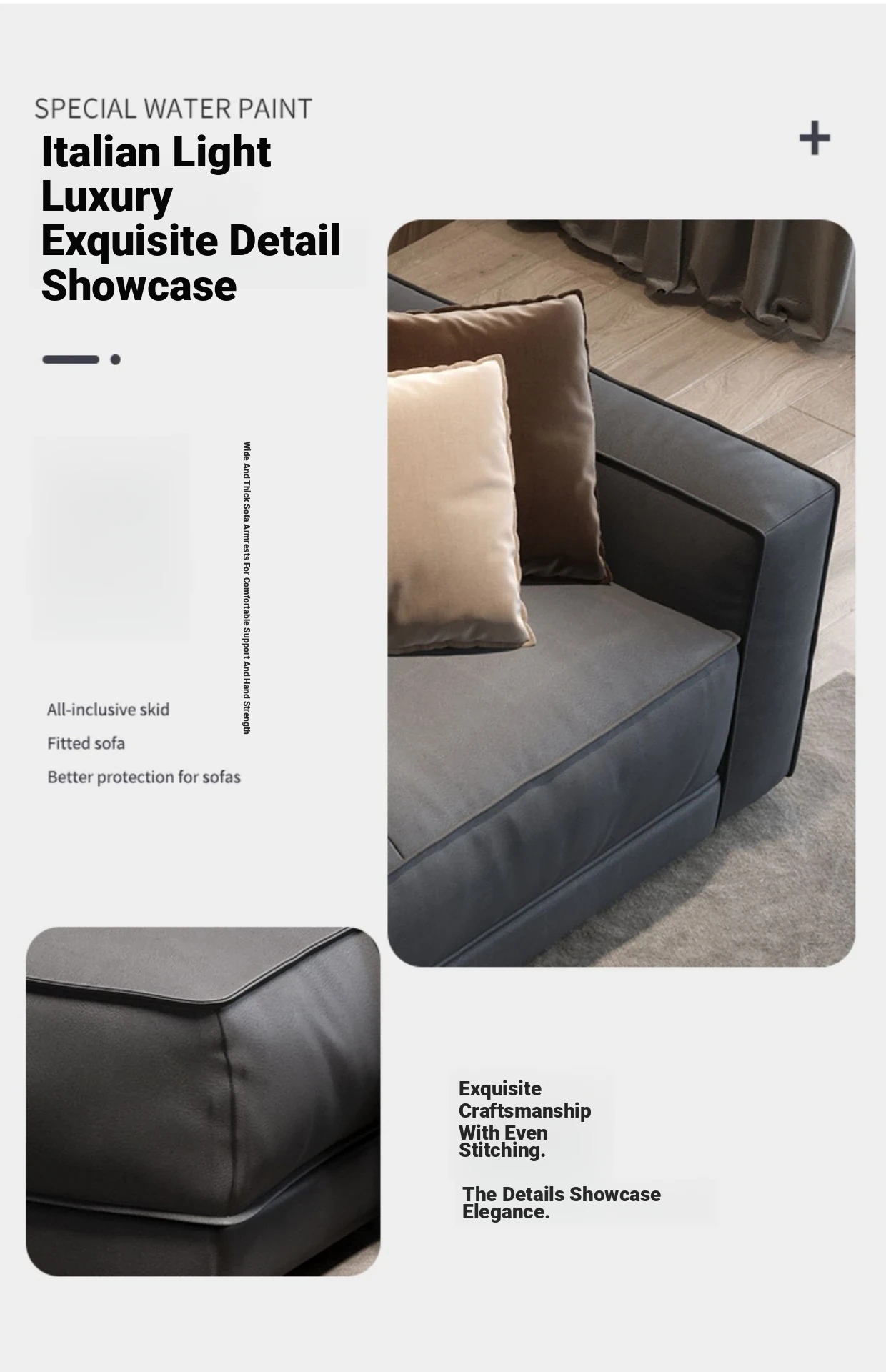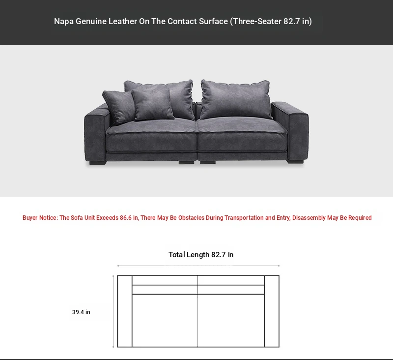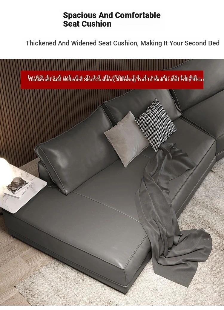 Minimalist Luxury Genuine Leather Sofa – Modern Small Apartment Three-Seat Couch in Top-Grain Cowhide for Contemporary Living Rooms