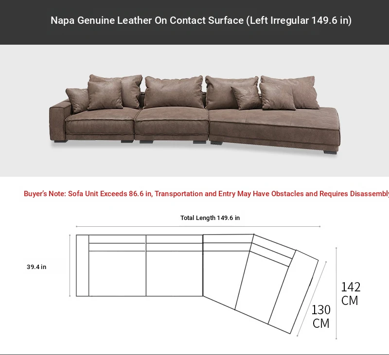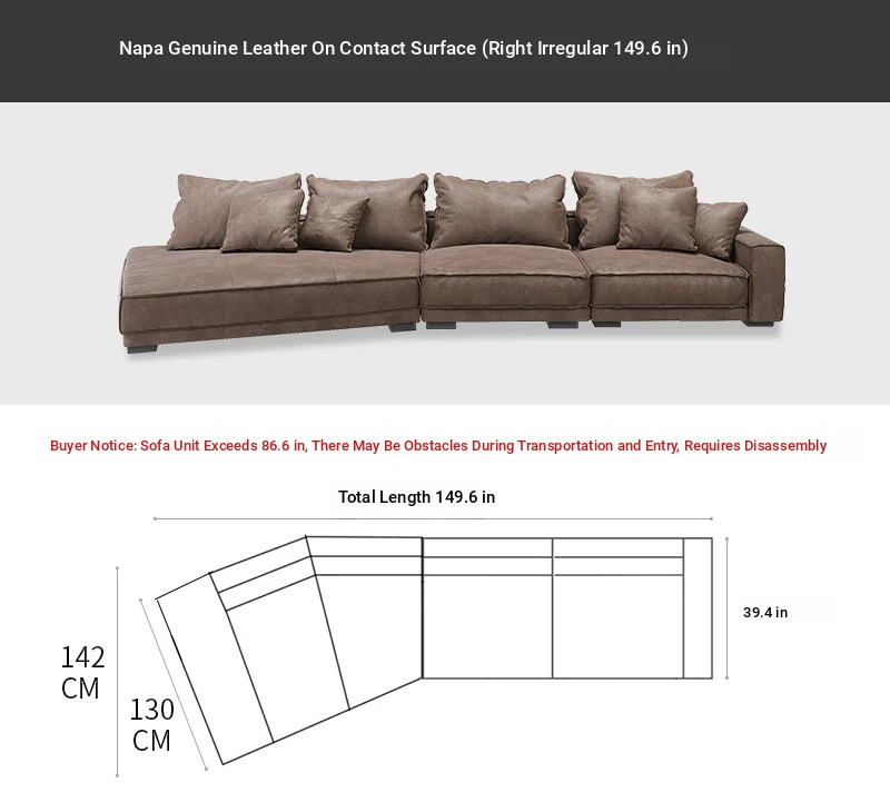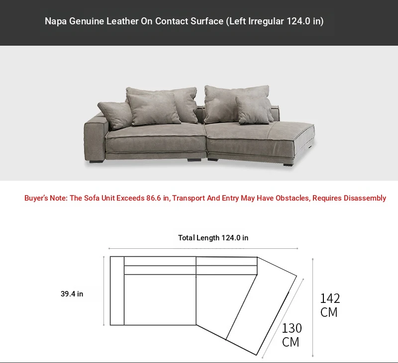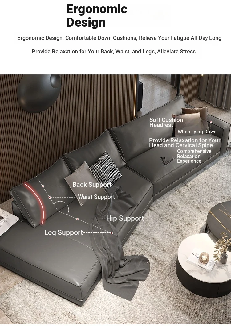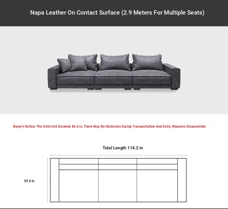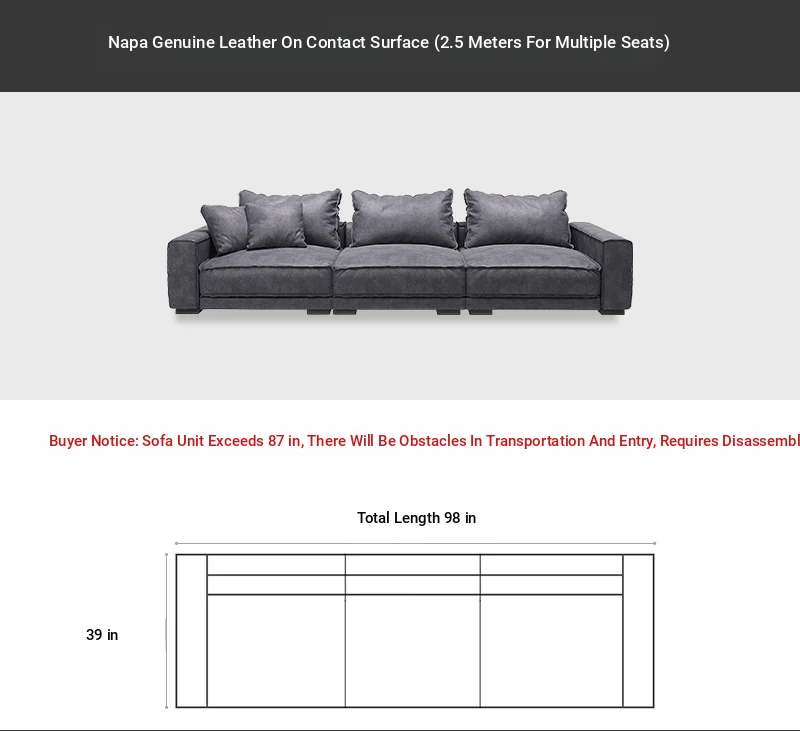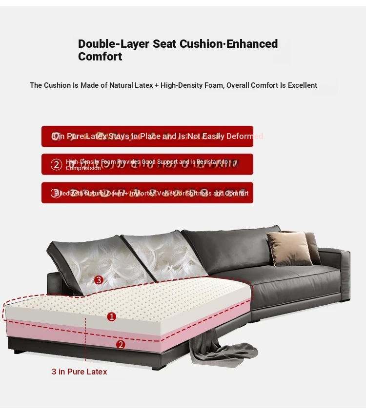 Minimalist Luxury Genuine Leather Sofa – Modern Small Apartment Three-Seat Couch in Top-Grain Cowhide for Contemporary Living Rooms