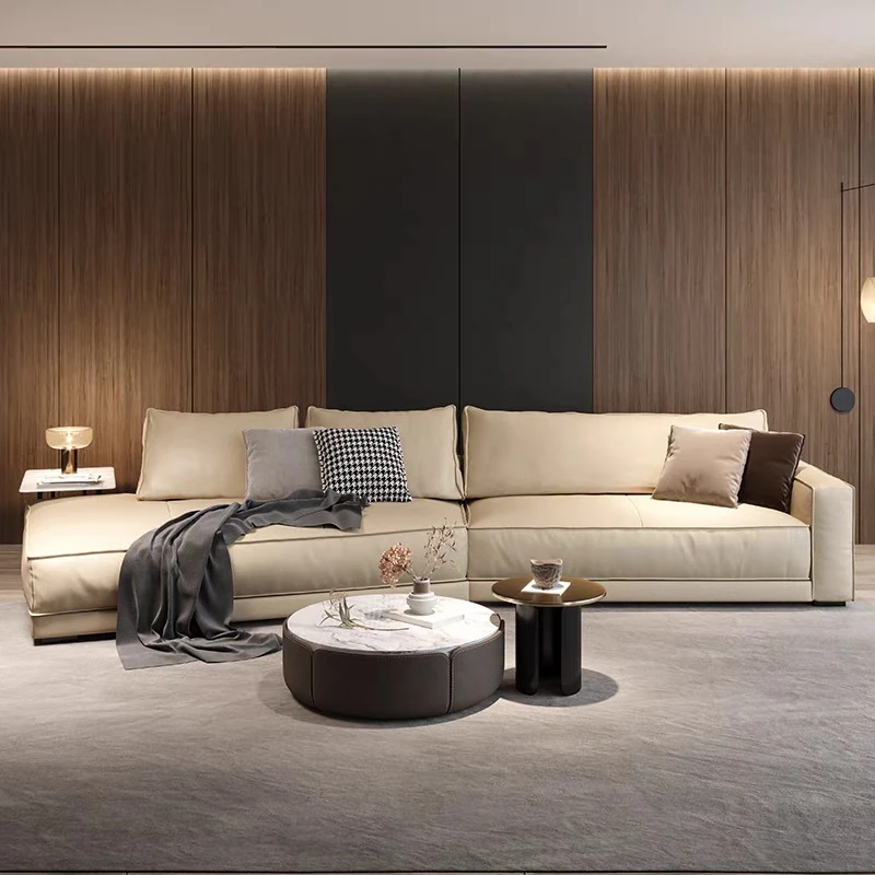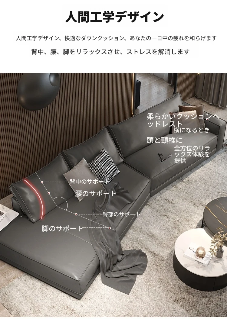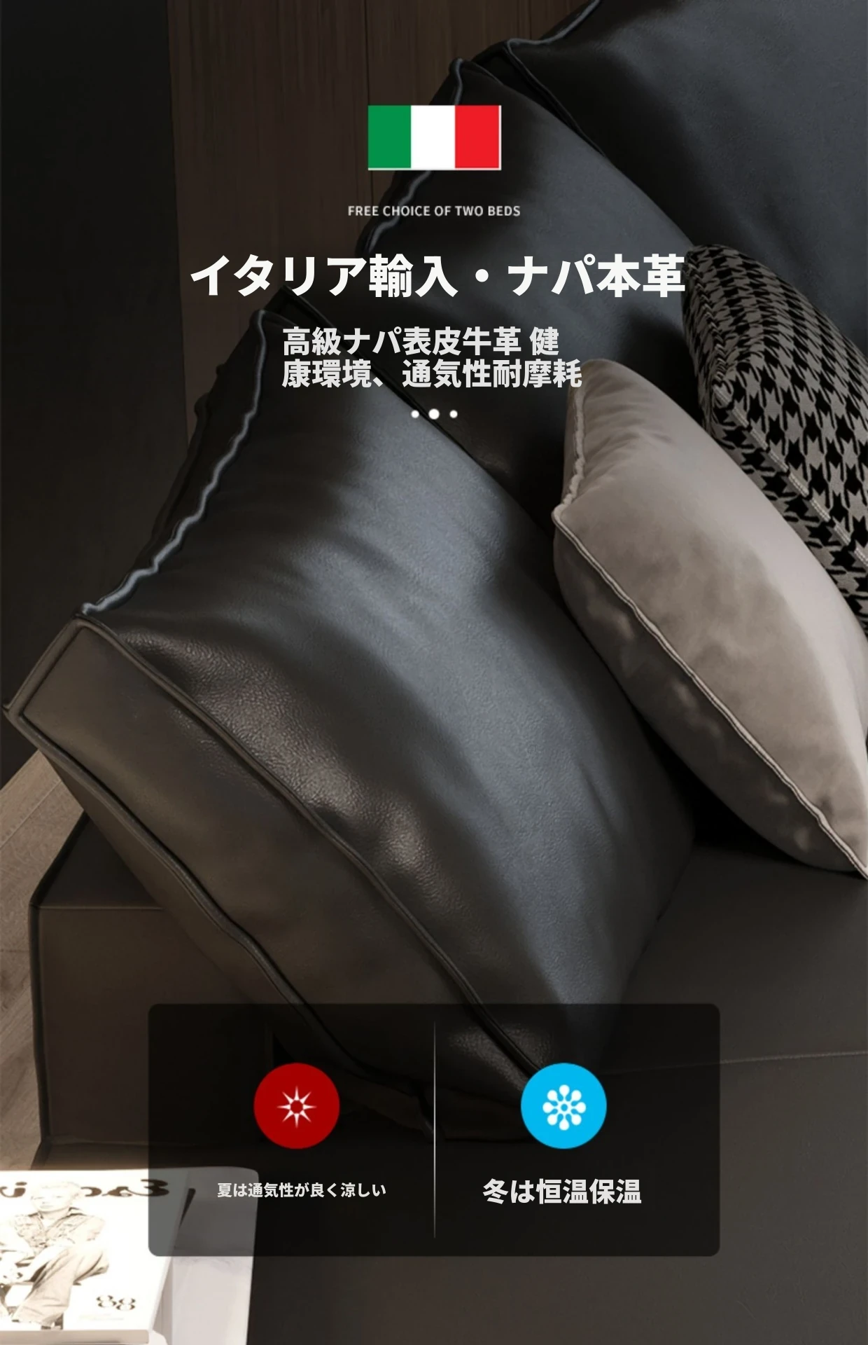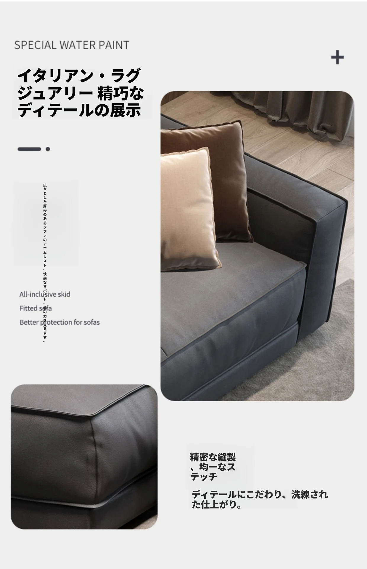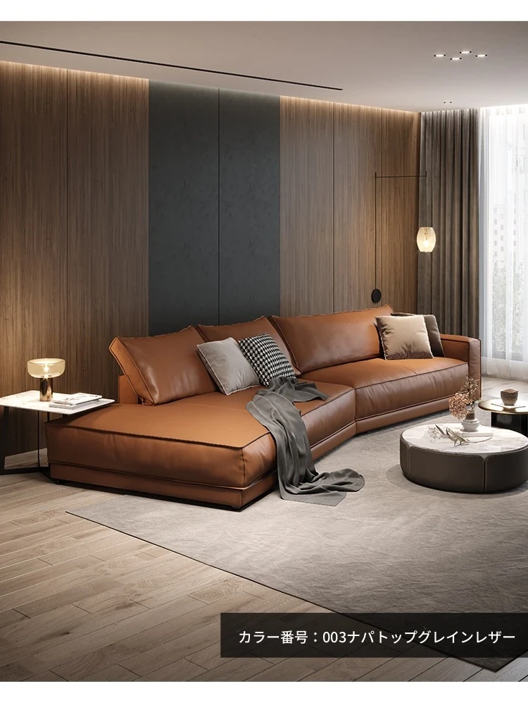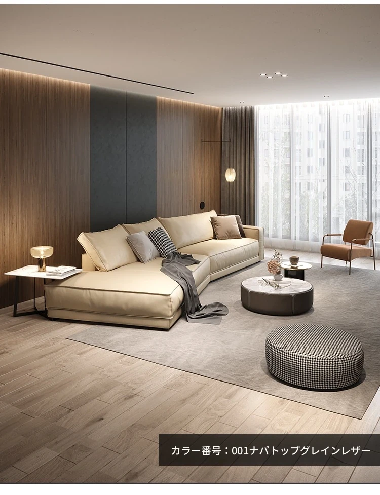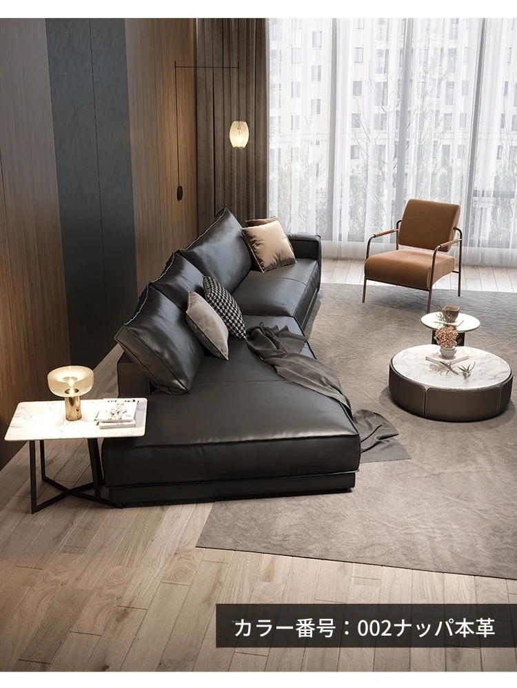ラグジュアリーでミニマルな本革ソファ - シンプルでモダン、小さなリビングにぴったりな上質な牛革使用のポストモダン3人掛けソファ。おしゃれな空間を演出し、快適なひとときを提供します。