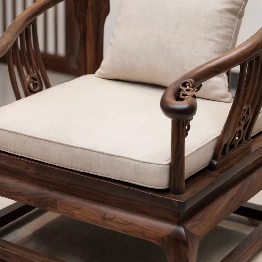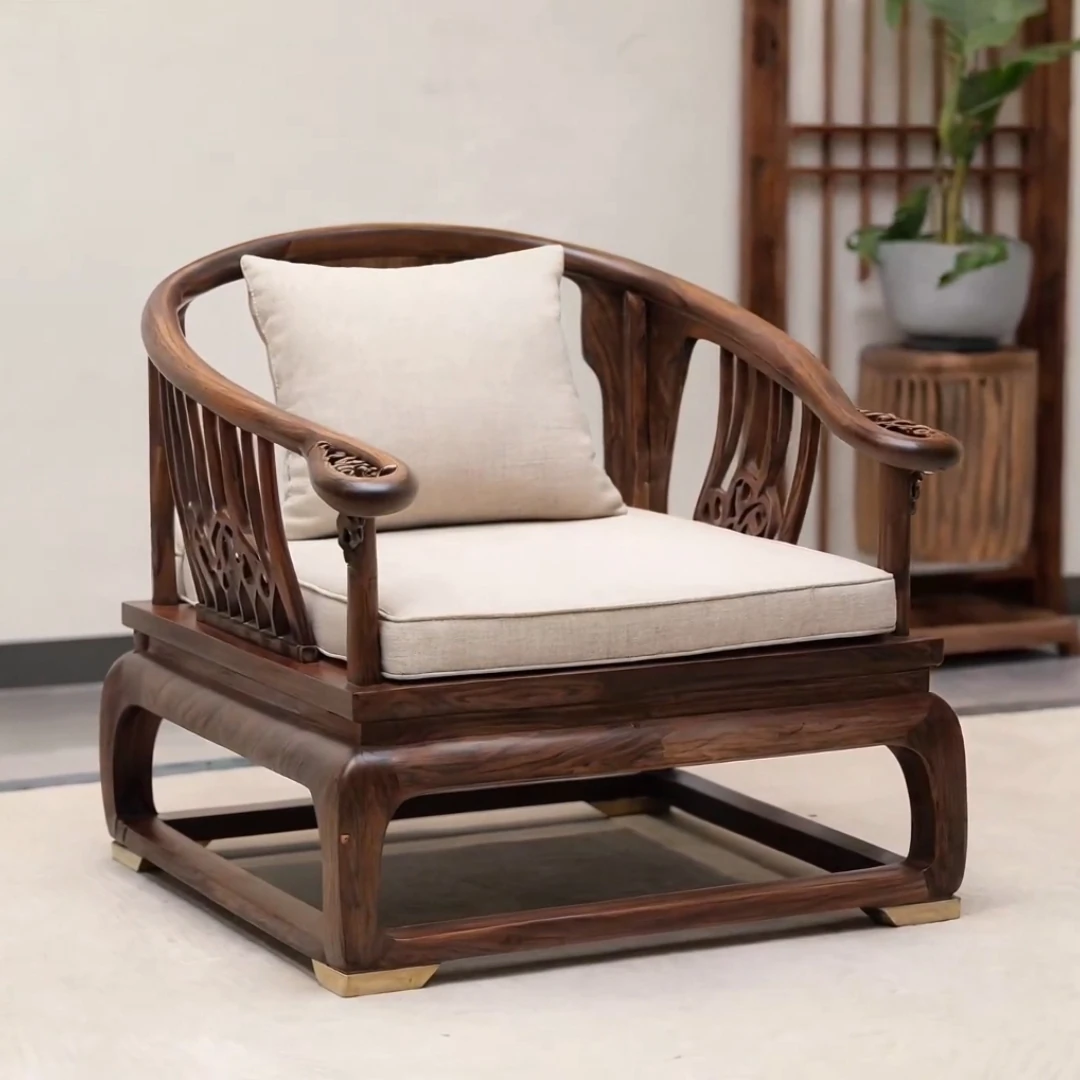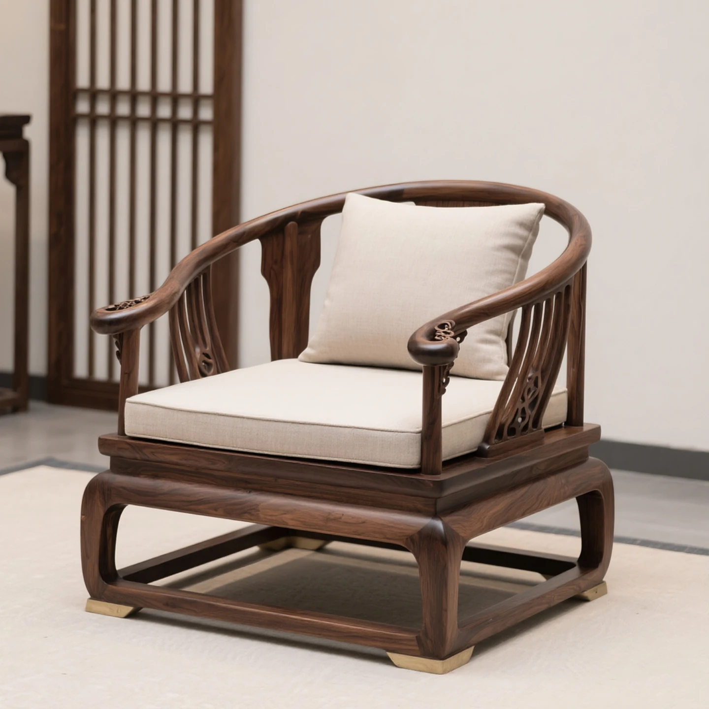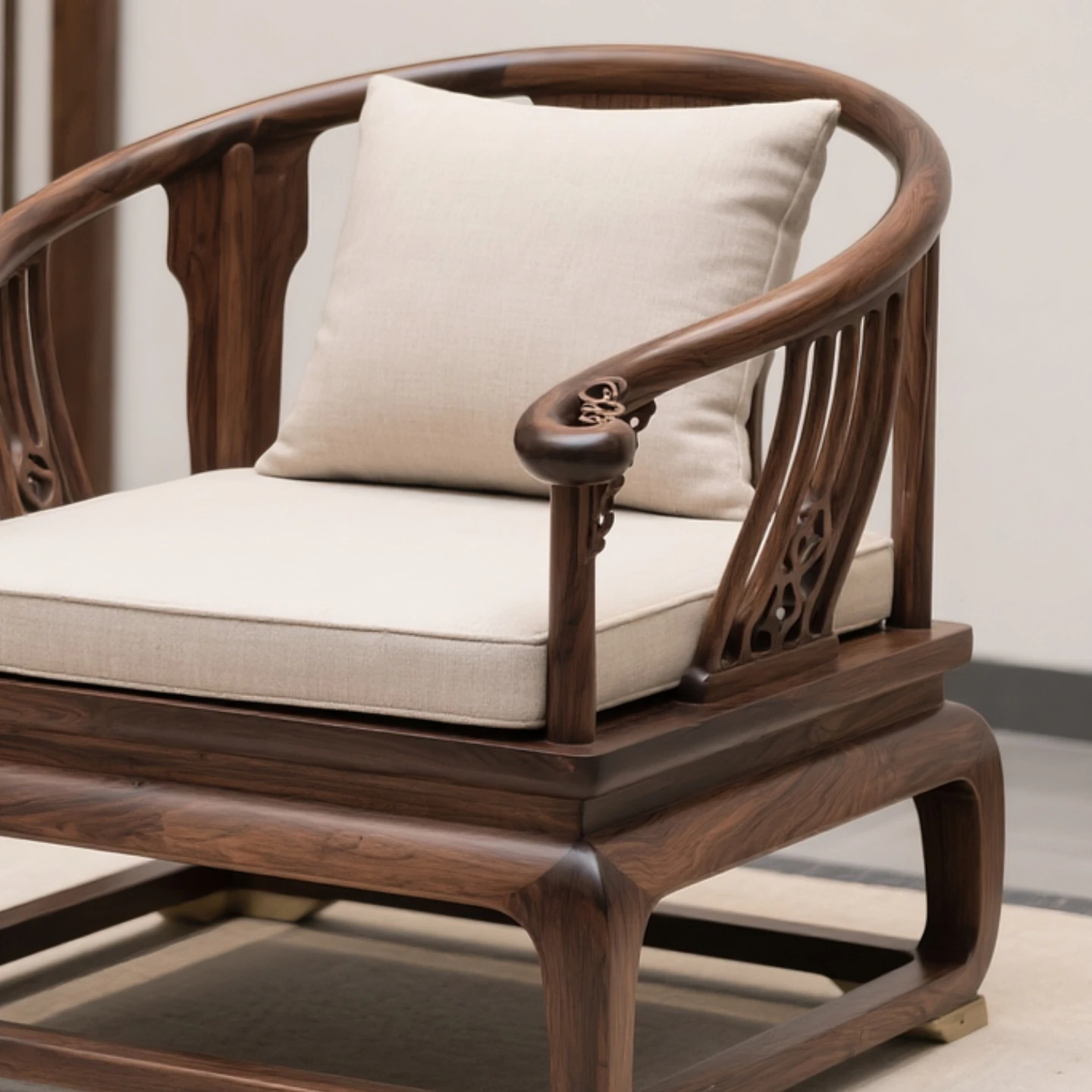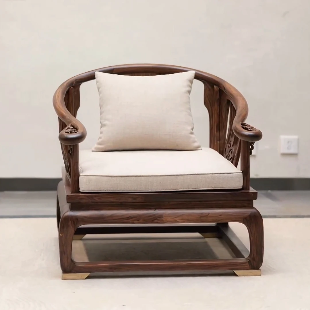 新中式スタイルの北米産ブラックウォルナット製リビングルーム用シングルチェア、ホワイトアッシュウッドを使用したシンプルで洗練された接客用リラックスチェア、布張りの心地よいシングルソファです。