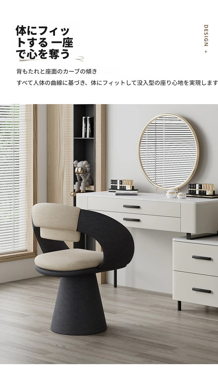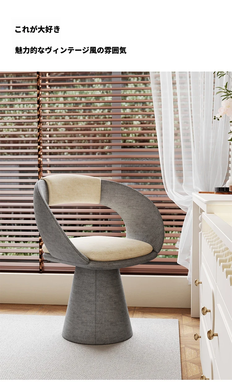 モダンでシンプルなデザインのクリエイティブなドレッシングスツール。寝室やリビングに最適!軽やかなラグジュアリー感を演出する回転式チェア。おしゃれな化粧台やダイニングにぴったりのアイテムです。