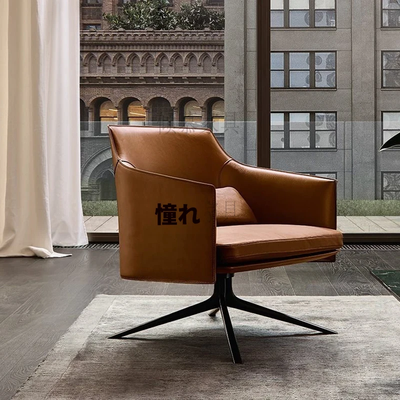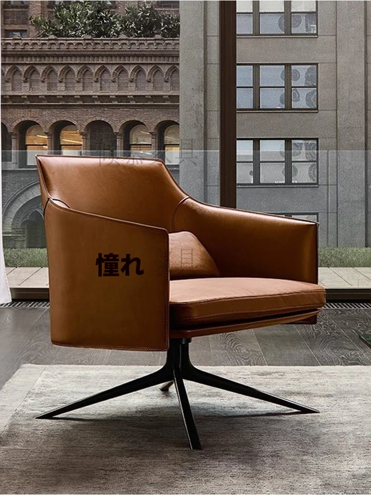 モダンシンプルな本革回転チェア|北欧スタイルの一人掛けソファ|ホテルや会所に最適なリラクゼーションチェア|オフィスエリアの接待や商談にもぴったり!