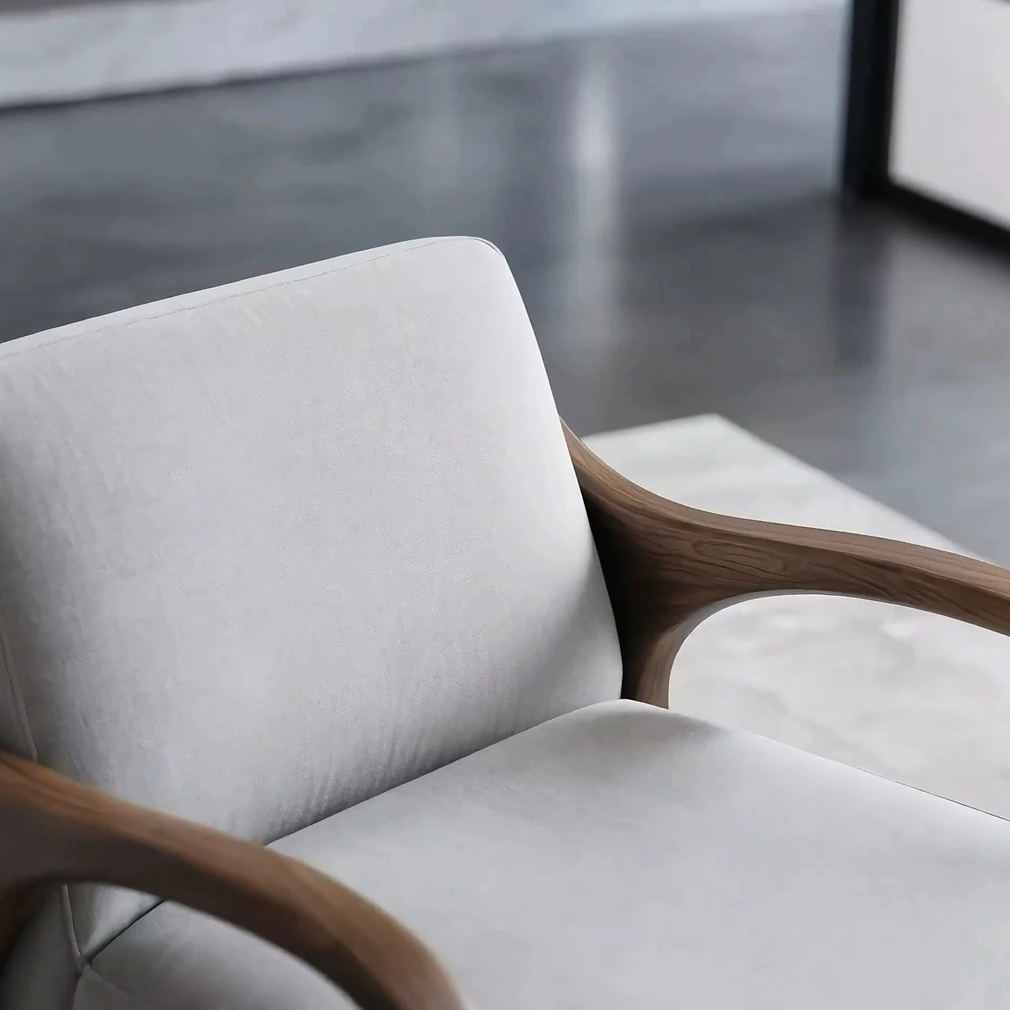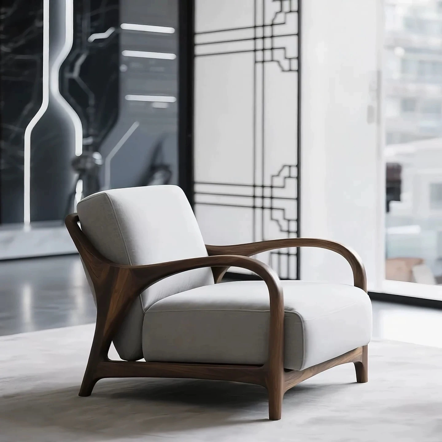 新中式スタイルの北米産ブラックウォルナット製リクライニング一人掛けソファ - モダンでシンプルなデザインの布製カジュアルチェア、快適なひとときを提供します!
