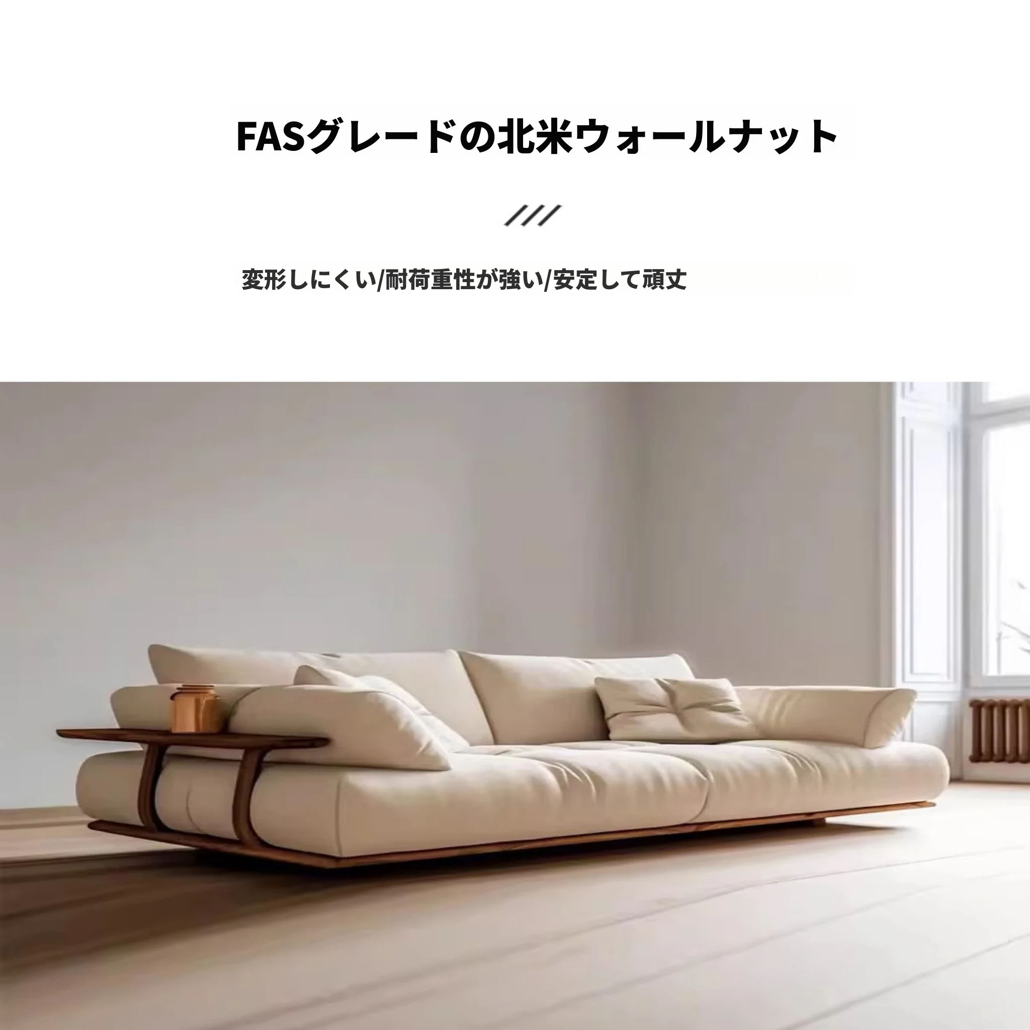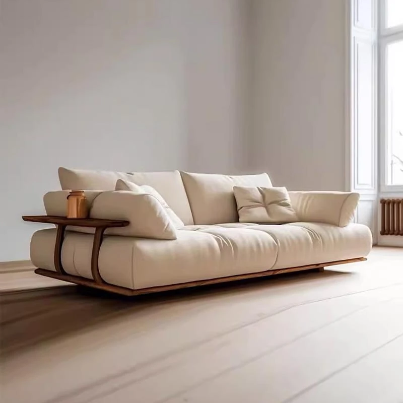 新中式スタイルの北米ウォールナット無垢材ソファ - モダンでシンプルなデザイン、コンパクトな空間にもぴったりな3人掛け直列ソファ。オフィスやリビングに最適!