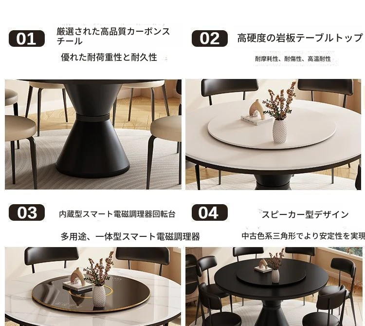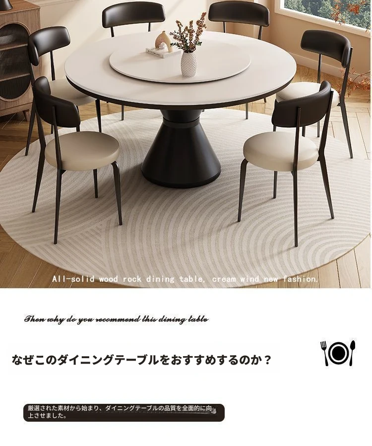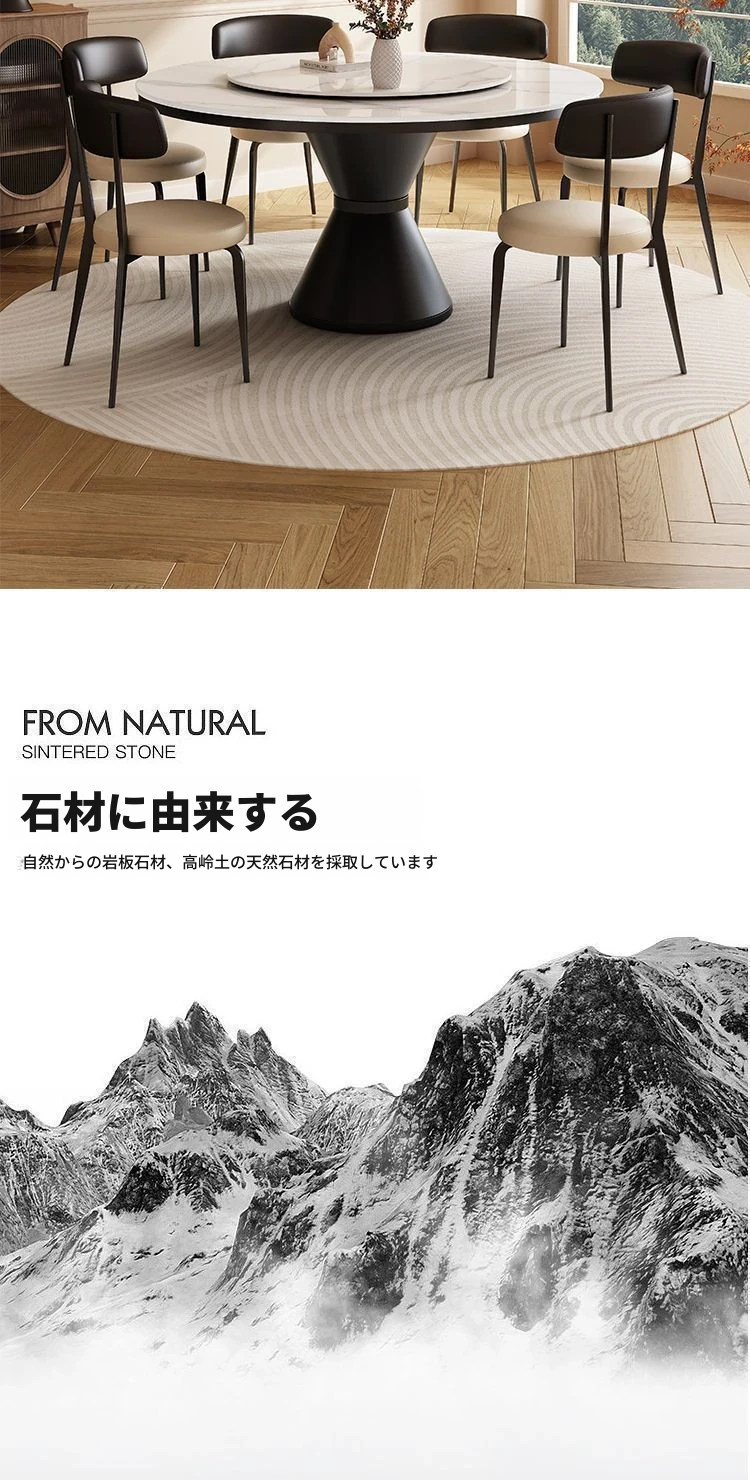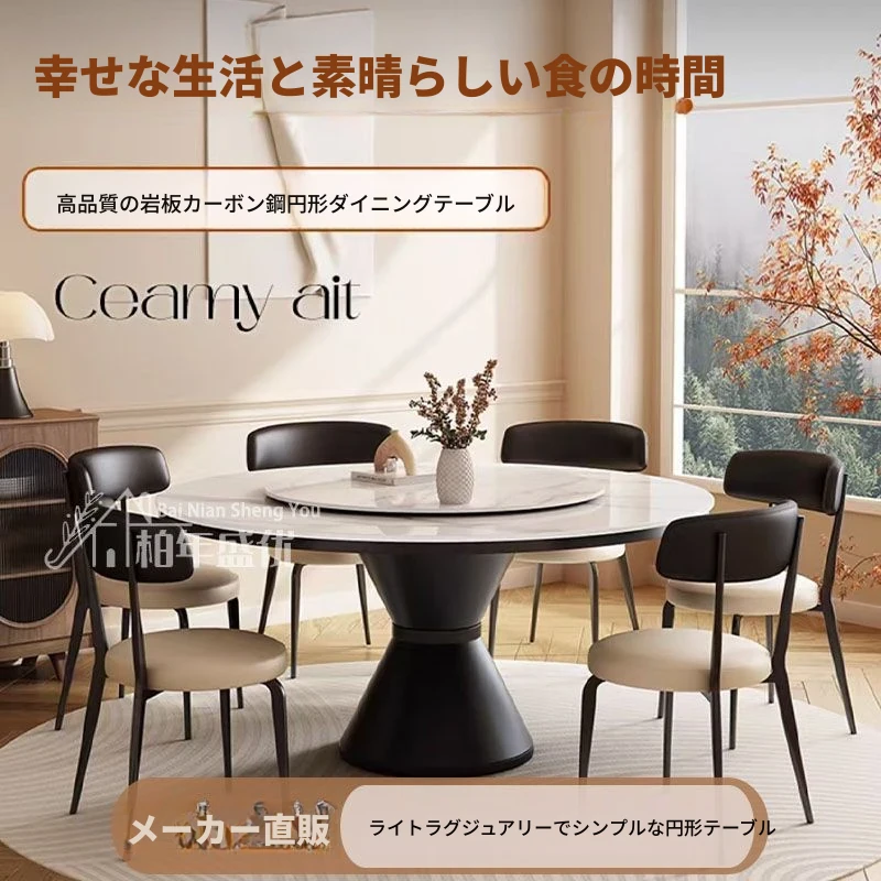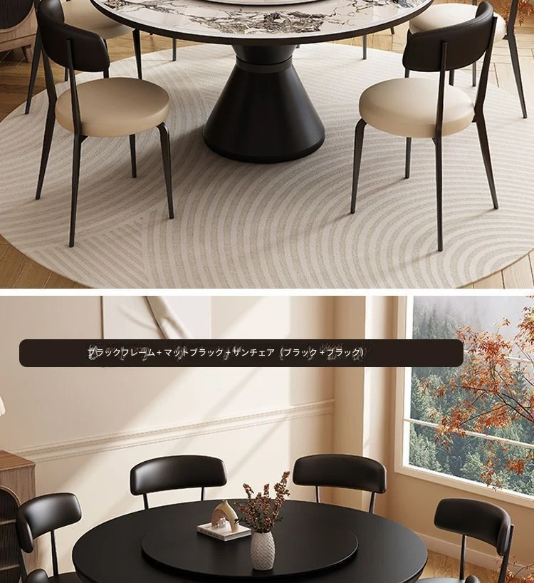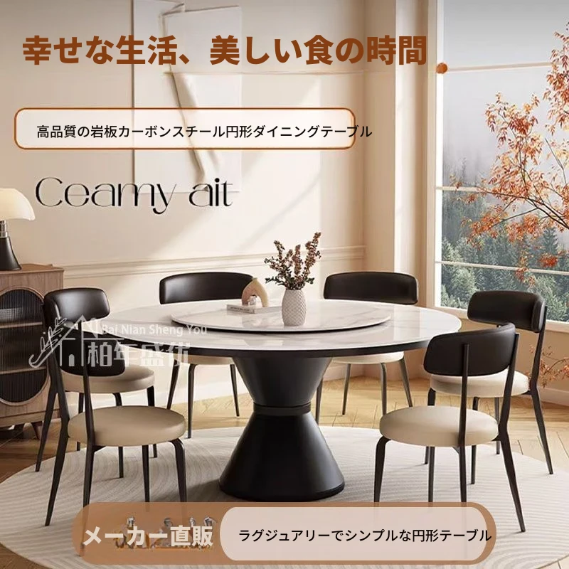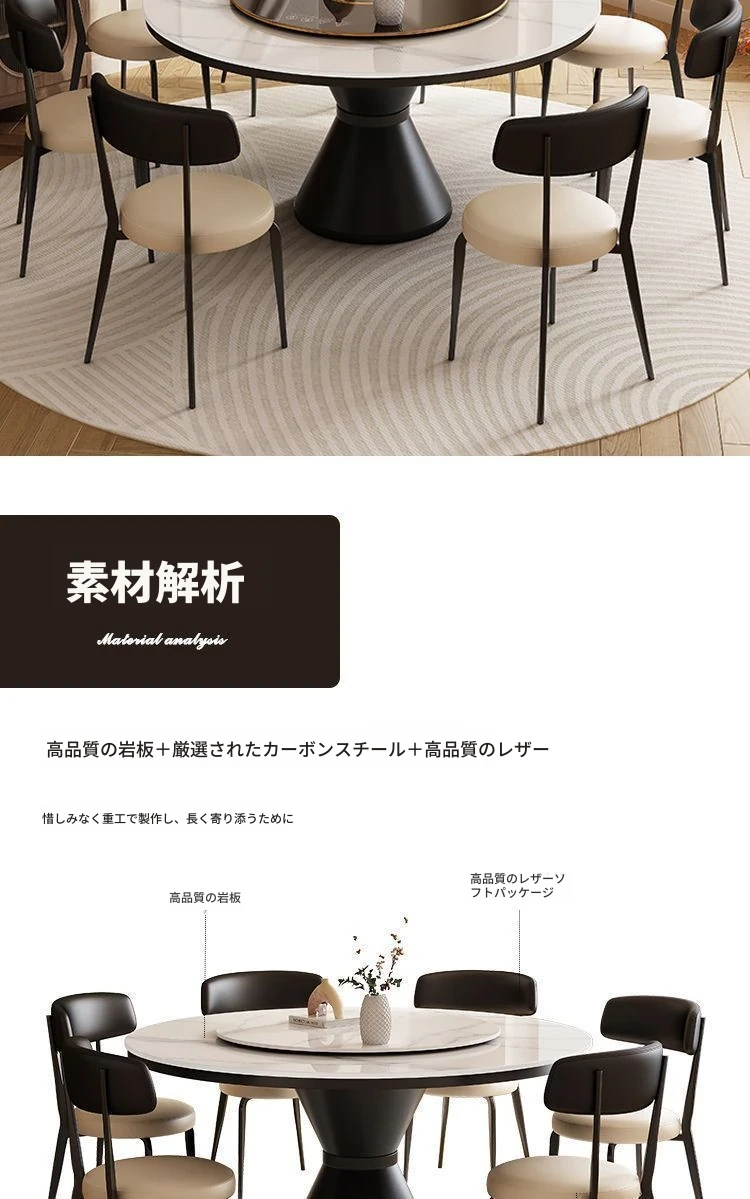 古風スタイルの岩板ダイニングテーブルセット - モダンでシンプルな小型住宅向け、ラウンドデザインの軽やかなラグジュアリーテーブル。回転式で便利な食事体験を提供します!