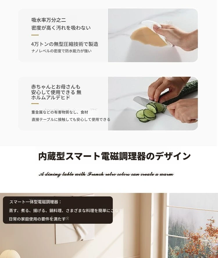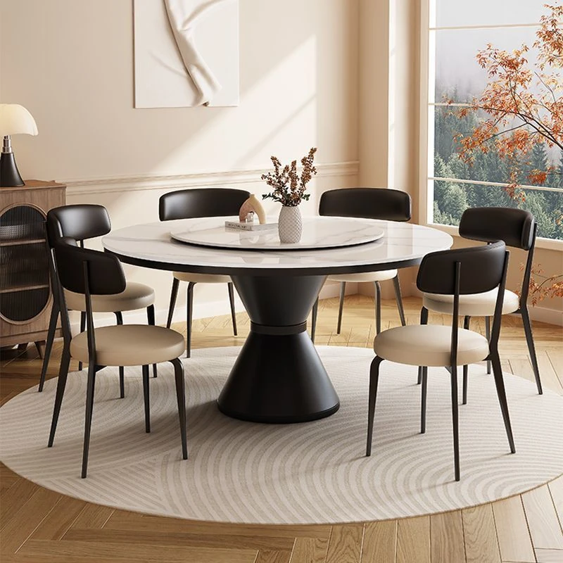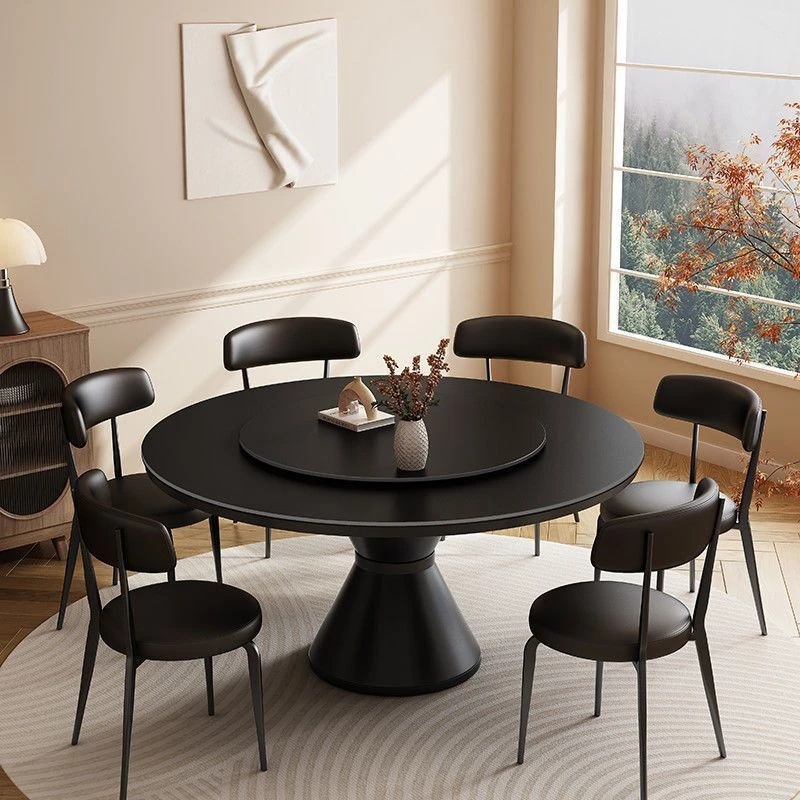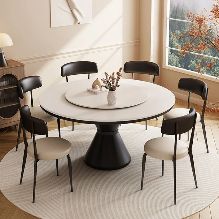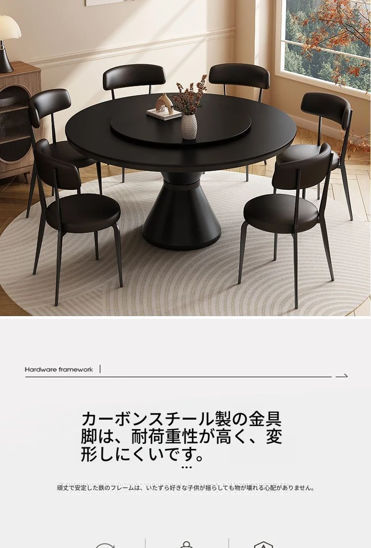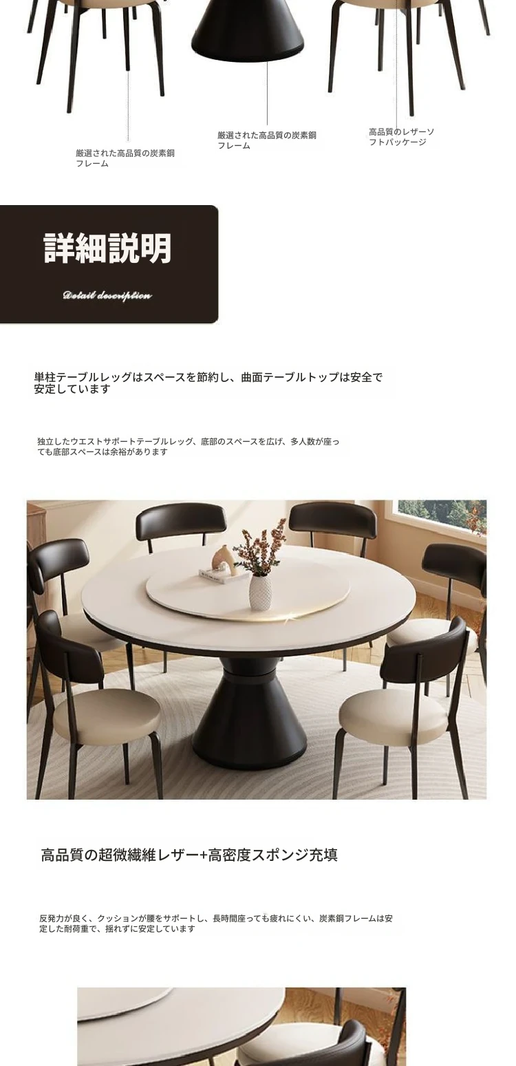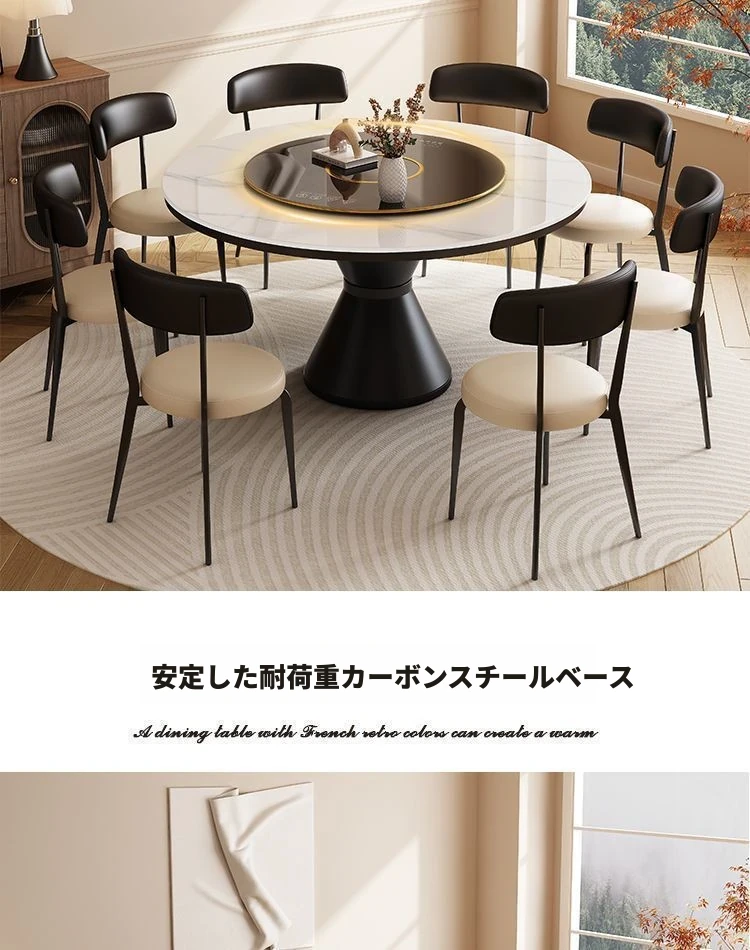 古風スタイルの岩板ダイニングテーブルセット - モダンでシンプルな小型住宅向け、ラウンドデザインの軽やかなラグジュアリーテーブル。回転式で便利な食事体験を提供します!