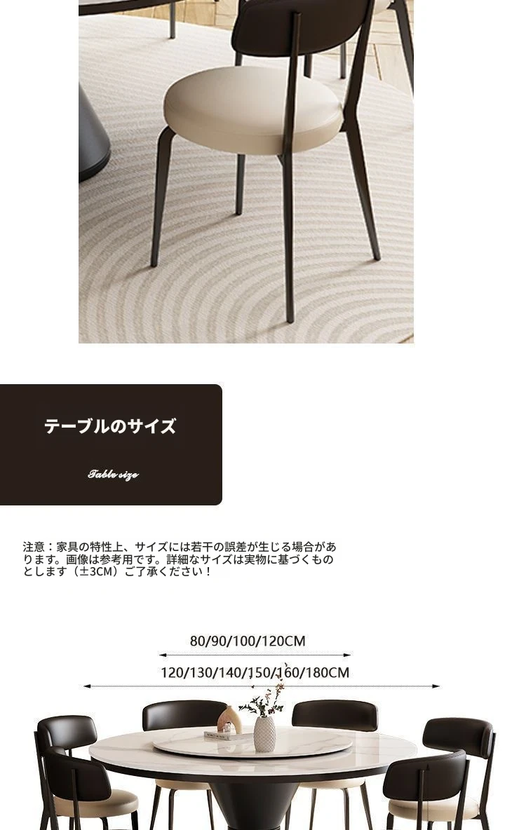 1.3M岩板円卓+サンチェア*6【回転盤付き】