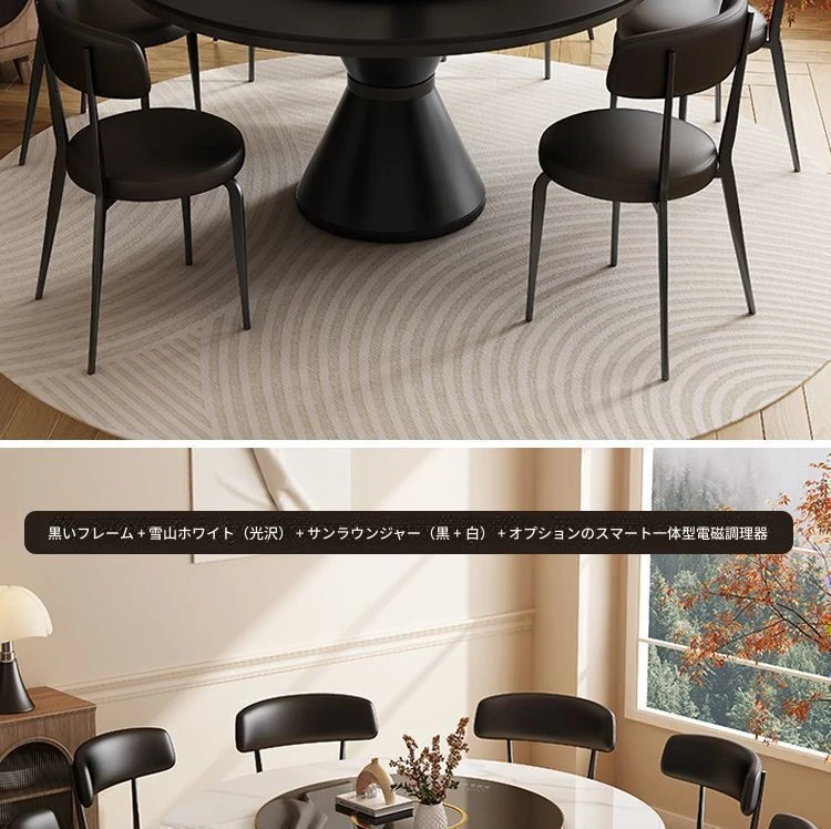 1.5M岩板円卓+サンチェア*8【回転盤付き】