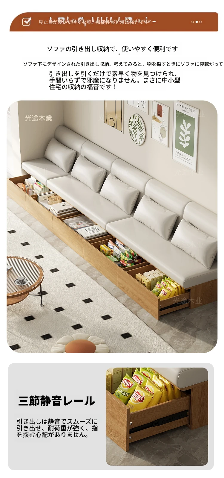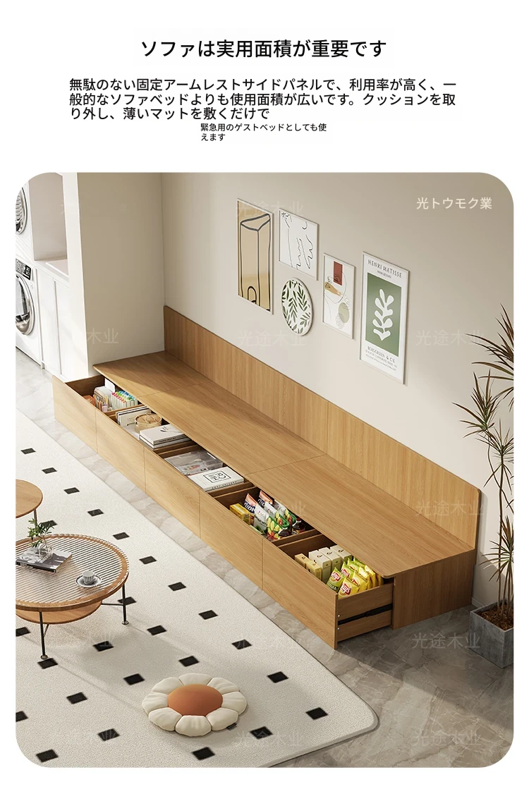 現代的ミニマリストデザイン!収納力抜群の高箱タタミソファー、リビングに最適な2WAY機能付き。引き出し式カウンターソファで、おしゃれさと便利さを兼ね備えた小スペース向けアイテム!