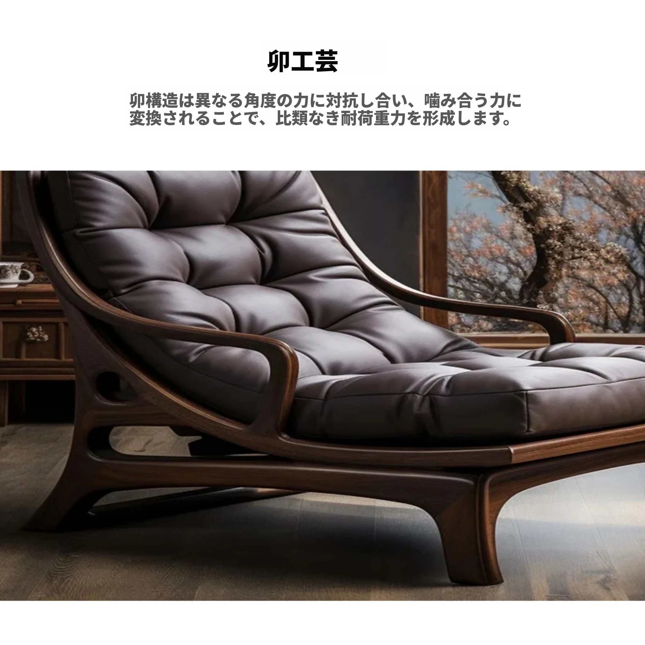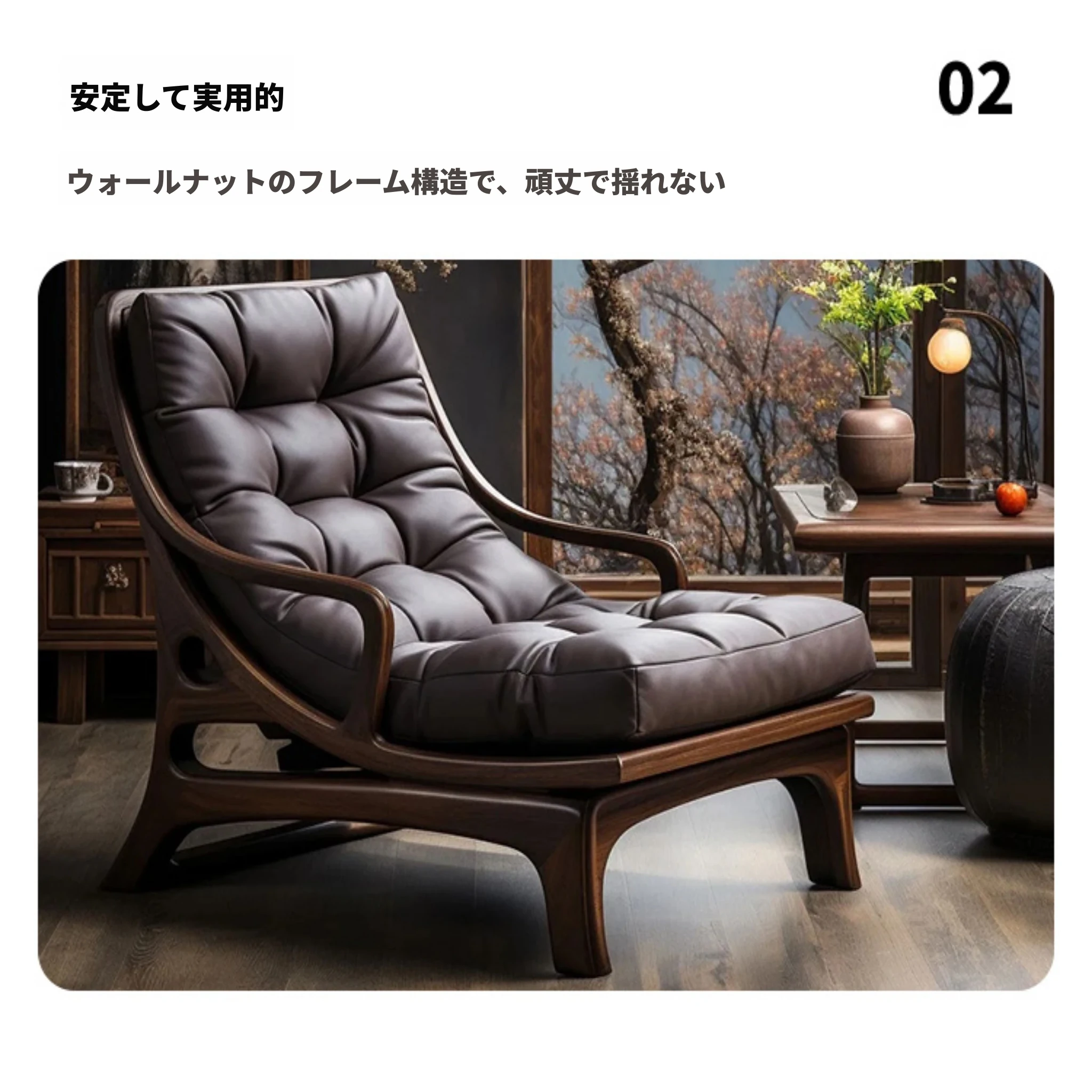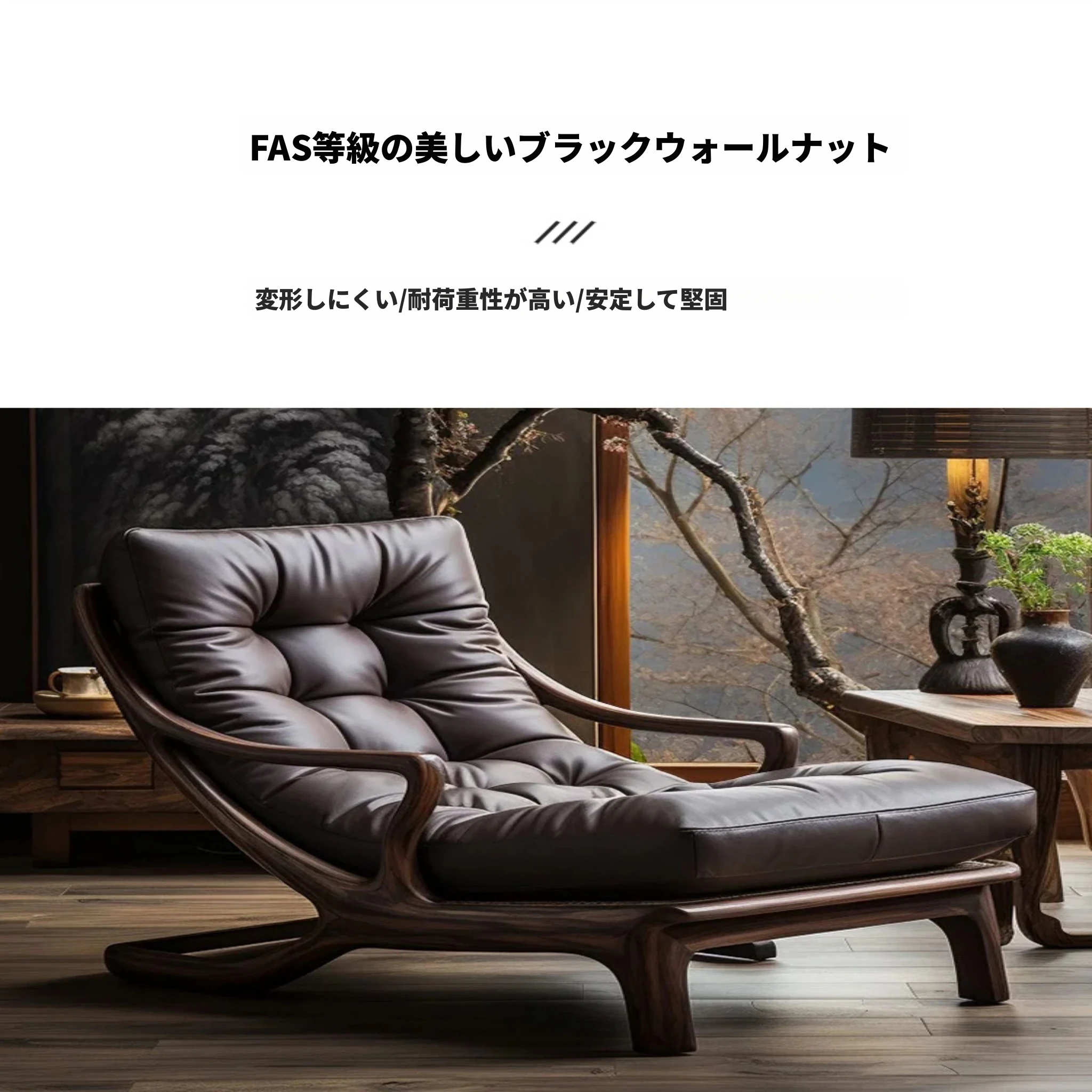 新中式スタイルの無垢材リクライニングチェア、ウォールナット製の一人掛けソファ!モダンでシンプルなデザインが魅力で、ラグジュアリーな雰囲気を演出するトラチェア。快適な座り心地で、あなたのリビングを格上げします!