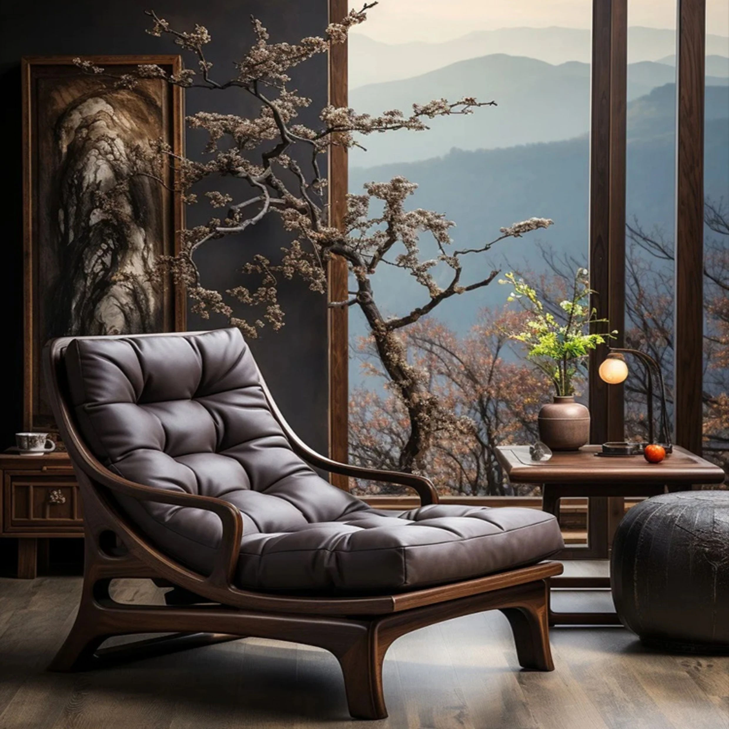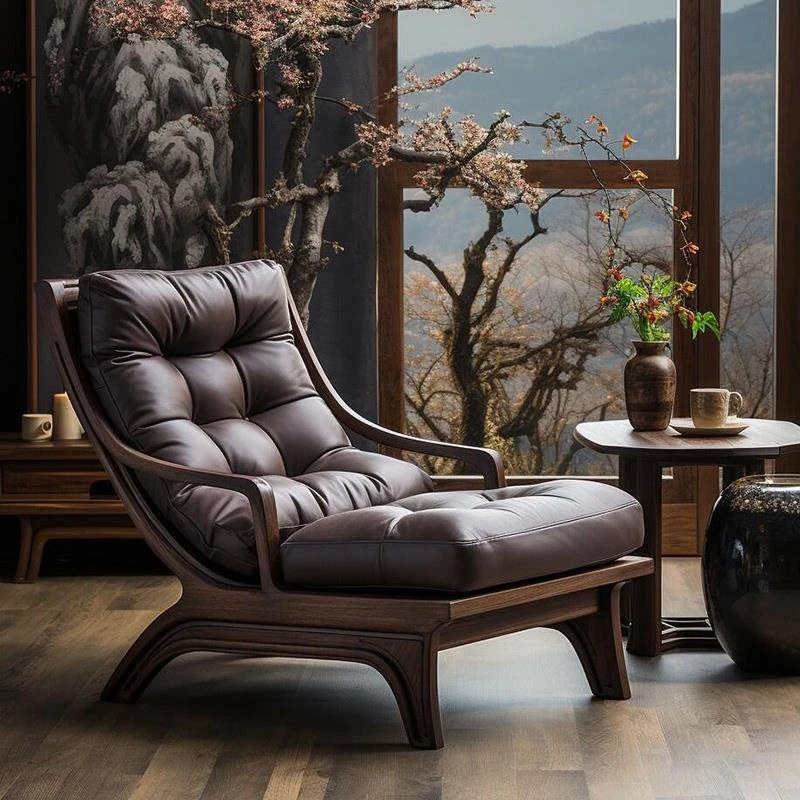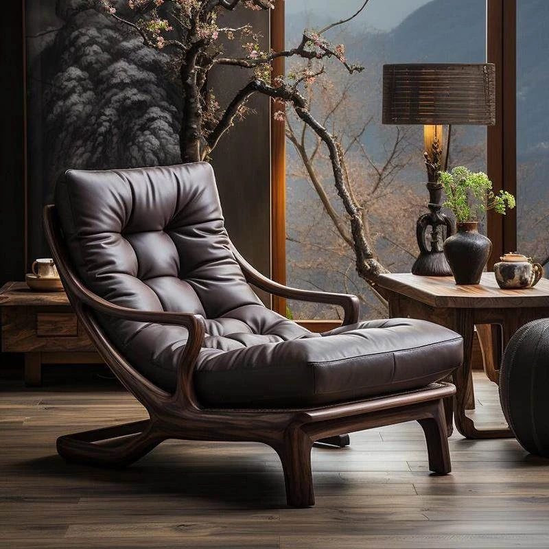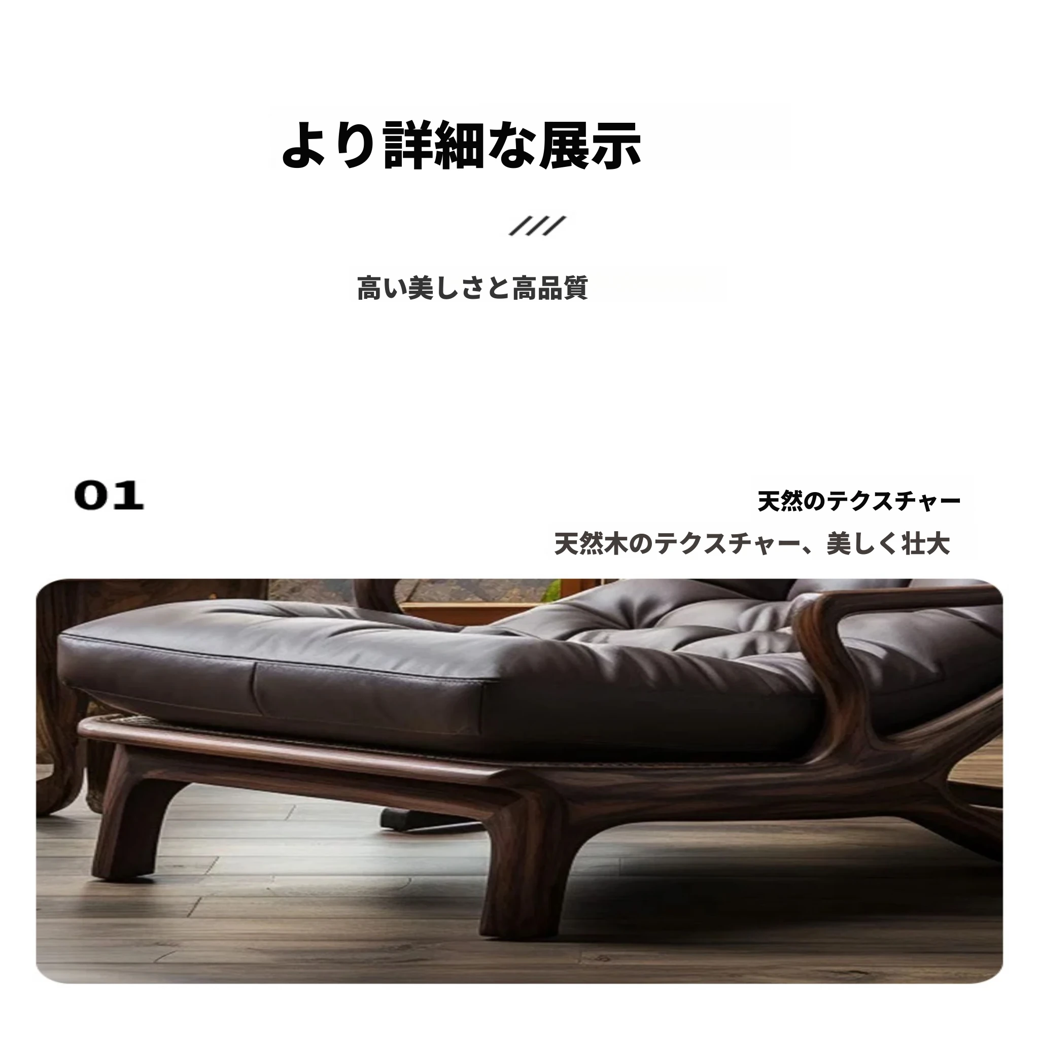 新中式スタイルの無垢材リクライニングチェア、ウォールナット製の一人掛けソファ!モダンでシンプルなデザインが魅力で、ラグジュアリーな雰囲気を演出するトラチェア。快適な座り心地で、あなたのリビングを格上げします!