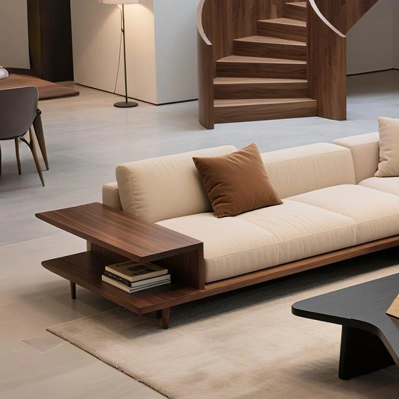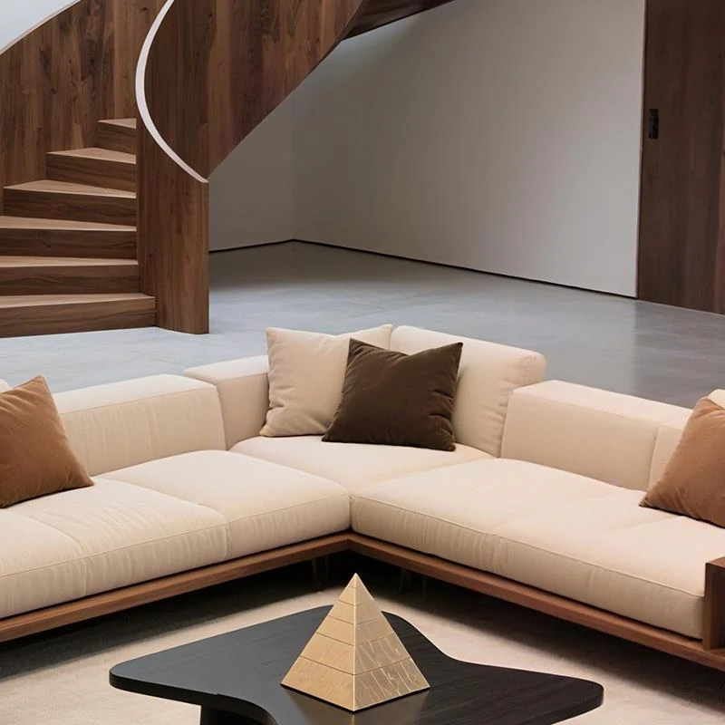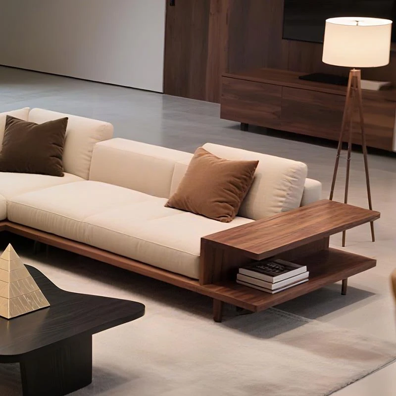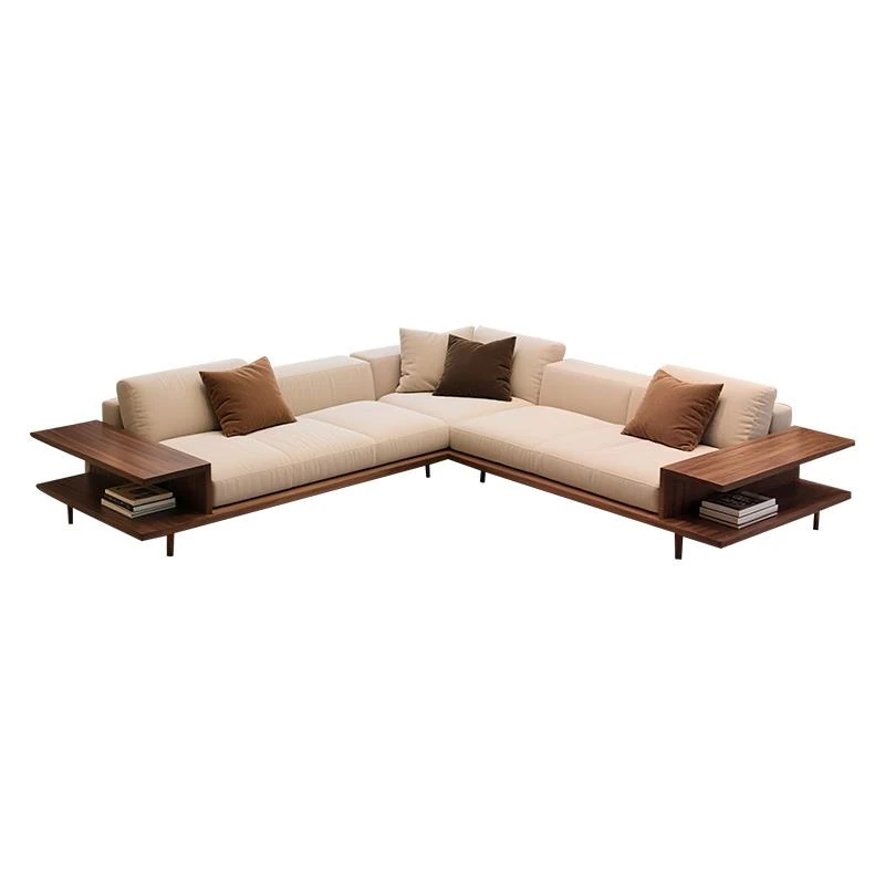 新中式高級実木ソファ|北米産ブラックウォールナット使用|25種類の新デザイン|ヴィラ向けの布製コーナーソファで、リビングルームを華やかに演出します!