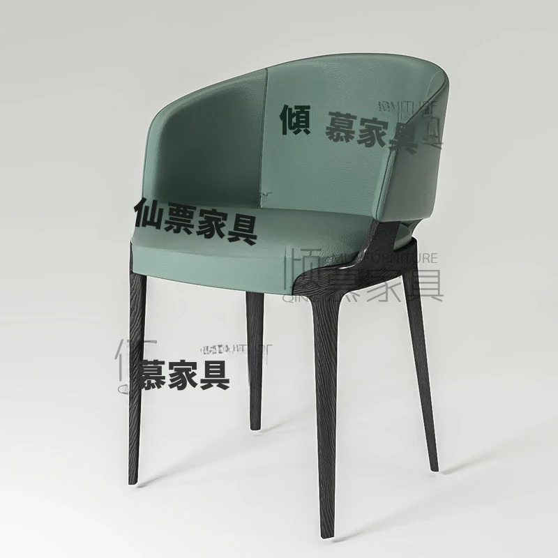 北欧風シンプルな無垢材とダークグリーンのファブリックチェア - 現代的なカフェやレストランに最適!アメリカンラグジュアリーなデザインで、リラックスした食事のひとときを演出します。