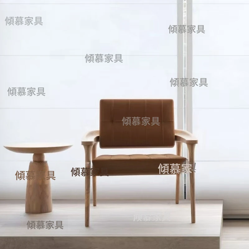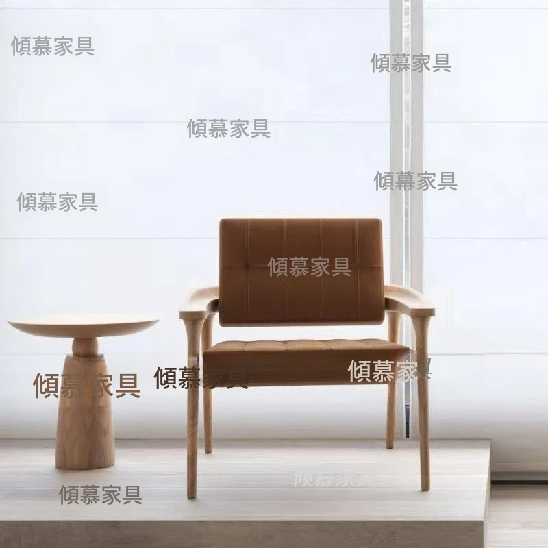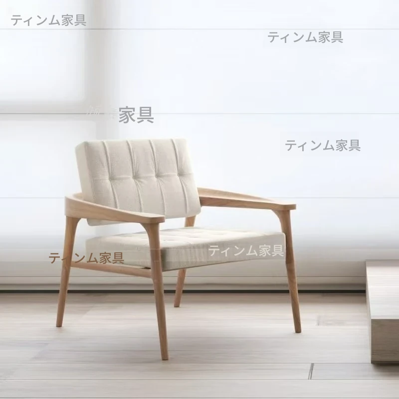 北欧スタイルの無垢材一人掛けリラックスチェア - わびさびの美を感じる現代的なシンプルデザイン、民宿やホテル、サロンにぴったりの新中式家具。心地よいひとときを提供します。