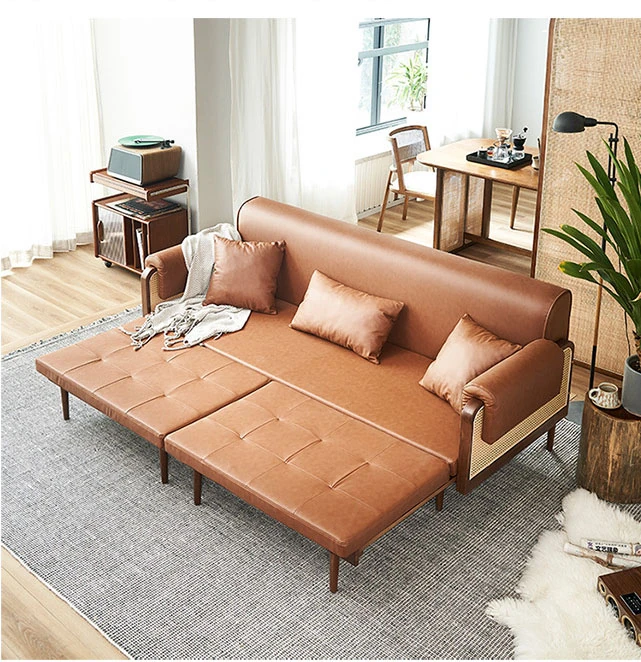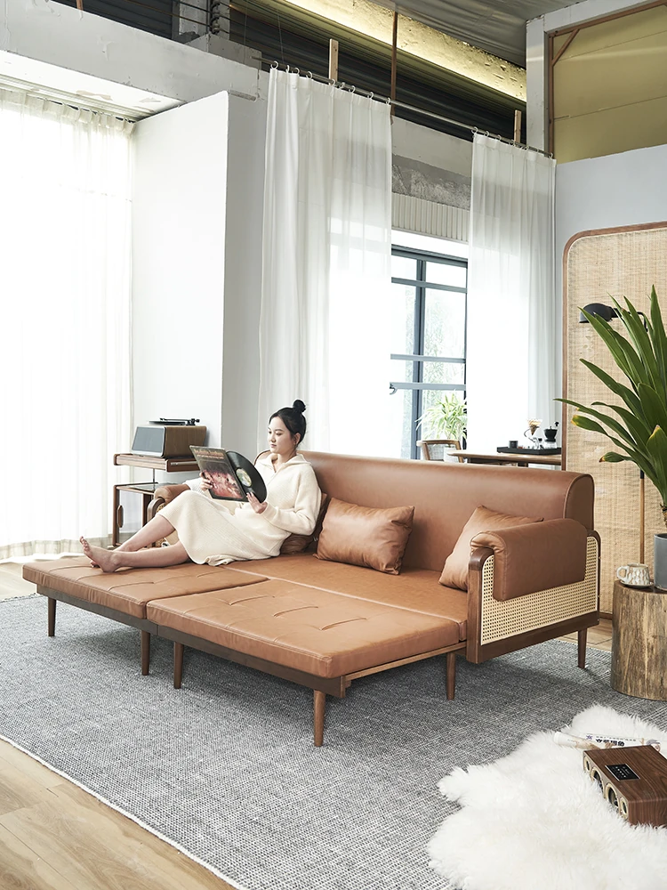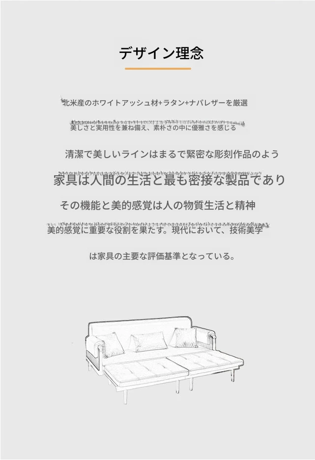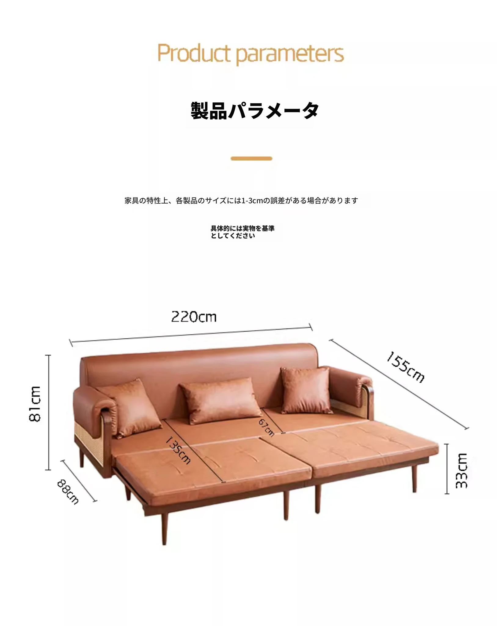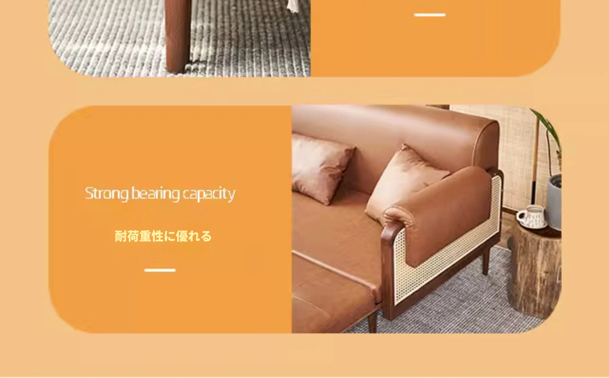 北欧スタイルの天然木ソファベッド - 折りたたみ可能!小さなリビングに最適な3人用多機能、シンプルで伸縮性のあるローハンベッド。限られたスペースでも快適さを実現!