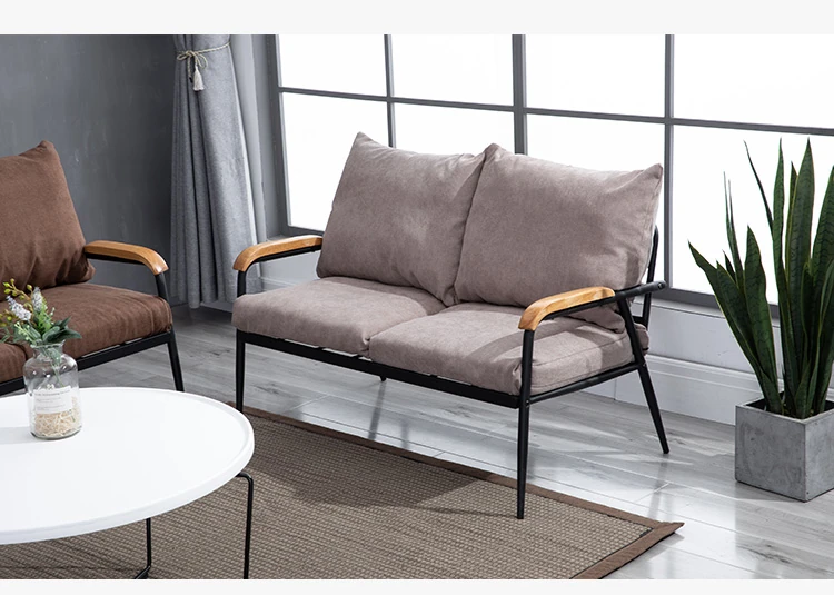 ファンチェン北欧スタイル布製ソファチェア 小型リビング向け 2人掛け 実木&アイアン製シンプルモダン家具セットで、おしゃれな空間を演出!快適さとデザイン性を兼ね備えた理想のリビングを実現します。