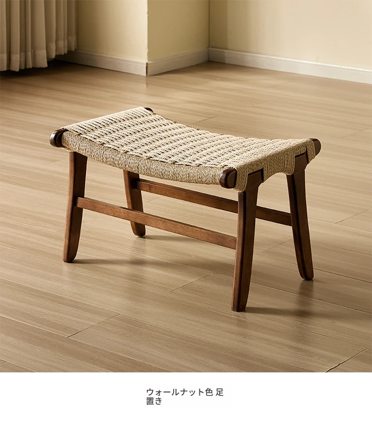 ホワイトアッシュ手すり付き【ウォールナット+ベージュのロープ編み】