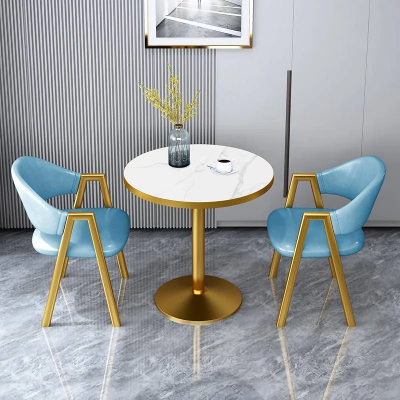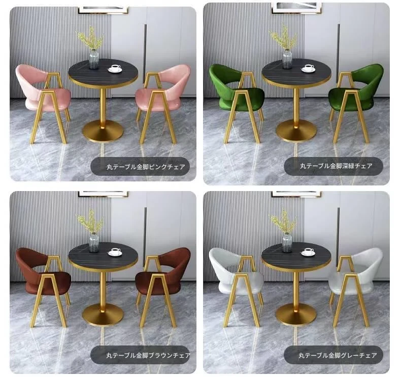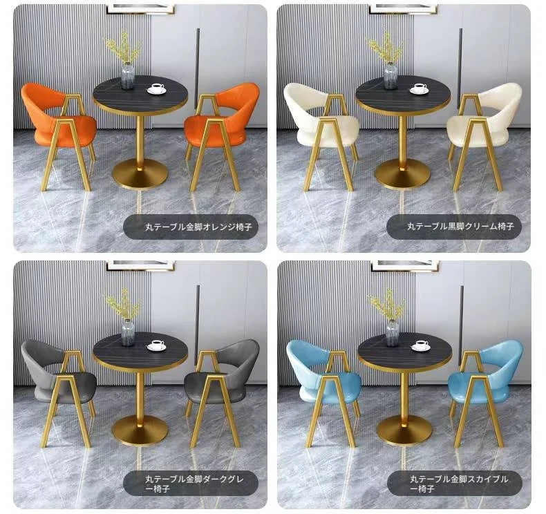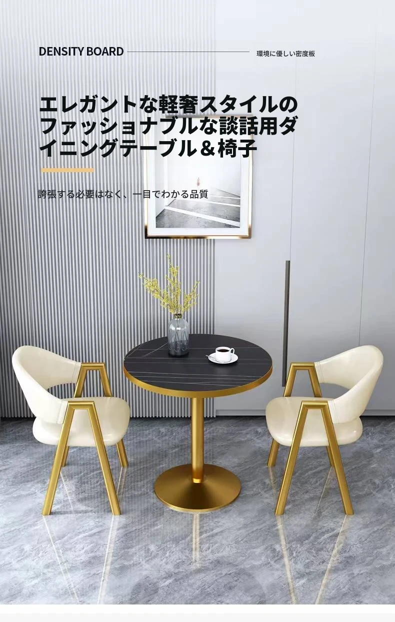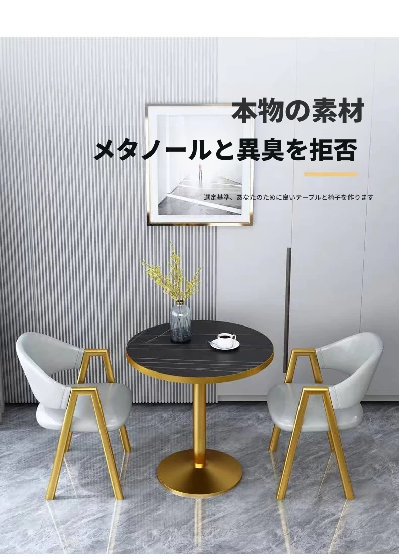 北欧スタイルのカジュアルな談話テーブル - おしゃれなミルクティー店や家庭用にも最適!小型バルコニーにぴったりな円形テーブルと岩石風デザインの椅子のセットで、心地よいひとときを演出します。