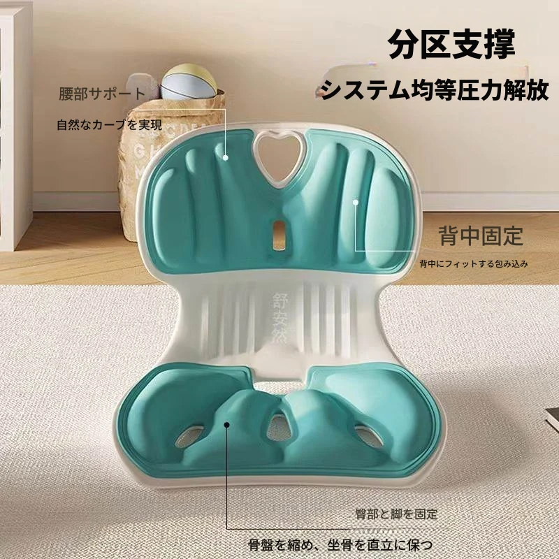 小号【姿勢矯正 腰サポートなし脚 背もたれ椅子】湖水グリーン