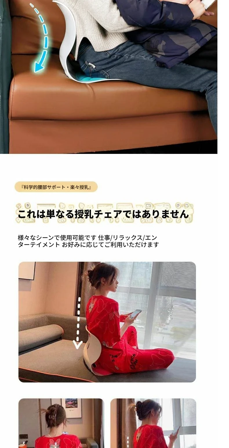 ママのための授乳チェア!妊婦さんも安心の背もたれ付き、産後のお母さんに最適なリラックスソファ。授乳やお昼寝にぴったりの腰サポート機能付きで、快適なひとときをお約束します。