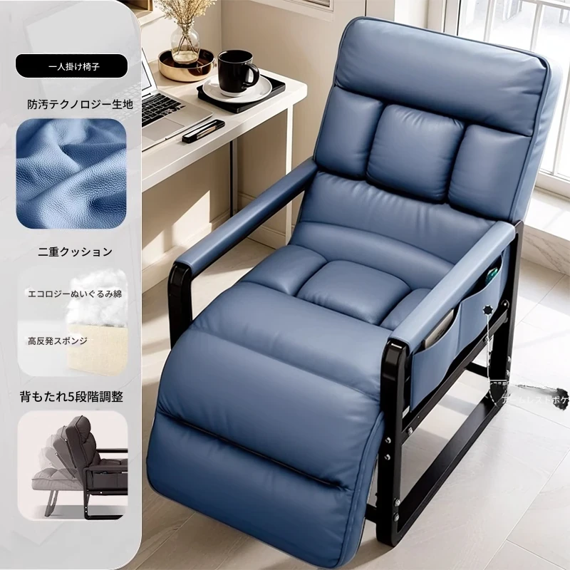 ブルー+フットレスト【洗濯不要テクノロジー布】支持棒+背もたれフットレスト調整可能 仰向け 側面アームレストポケット