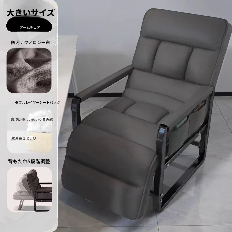 グレー+フットレスト-大サイズ【洗濯不要テクノロジー布】支持棒+背もたれフットレスト調整可能 仰向け 側面アームレストポケット