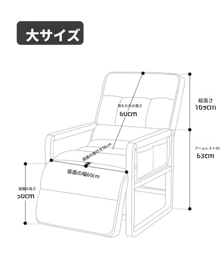 グレー大サイズ【洗濯不要テクノロジー布】支持棒+背もたれ多段階調整 側面アームレストポケット