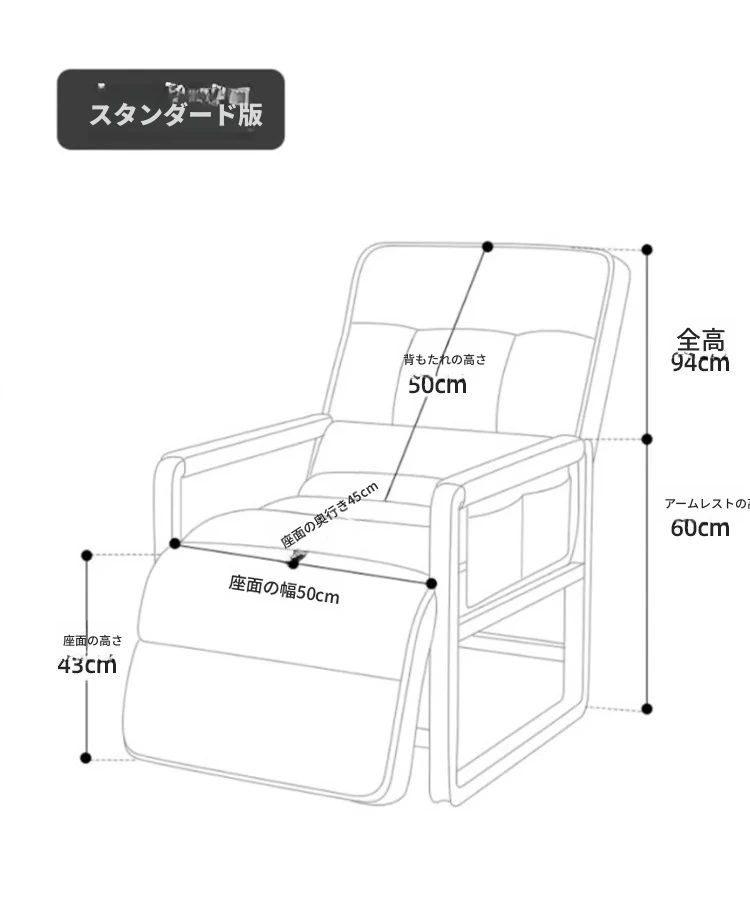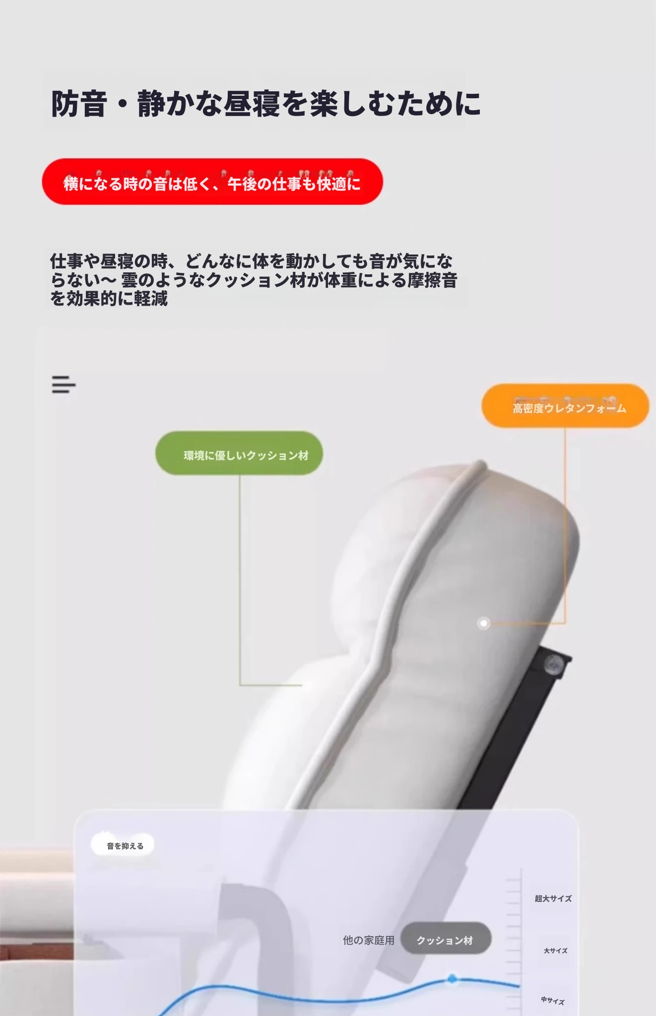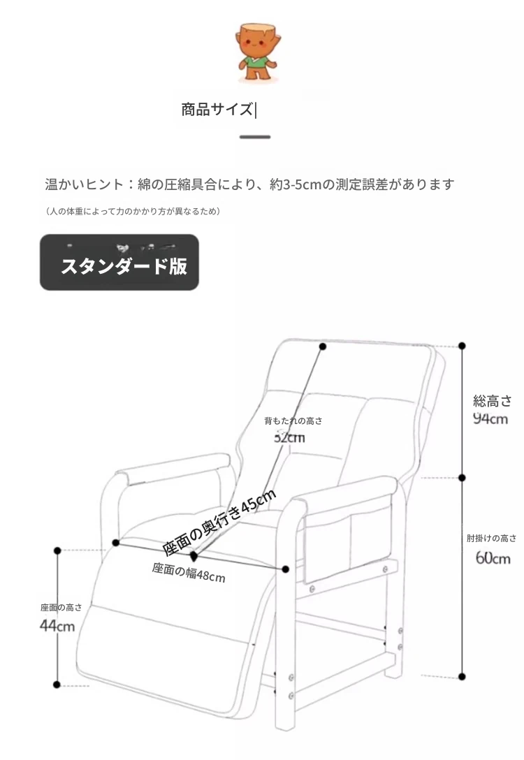アイボリー+フットレスト【洗濯不要テクノロジー布】支持棒+背もたれフットレスト調整可能 仰向け 側面アームレストポケット
