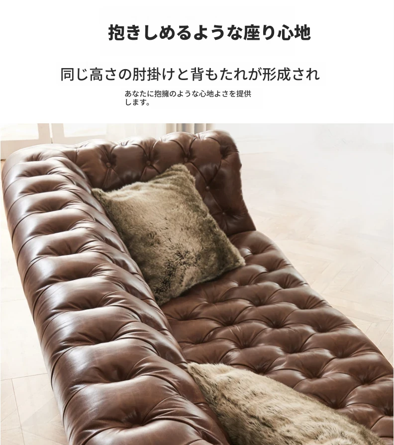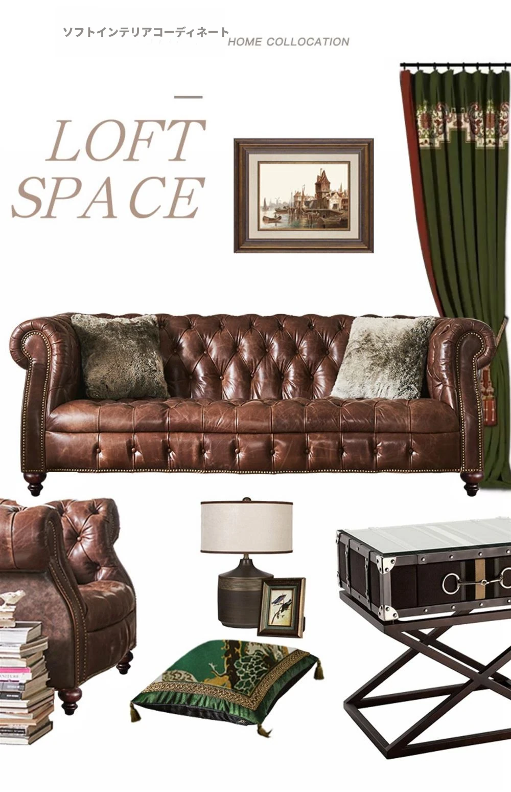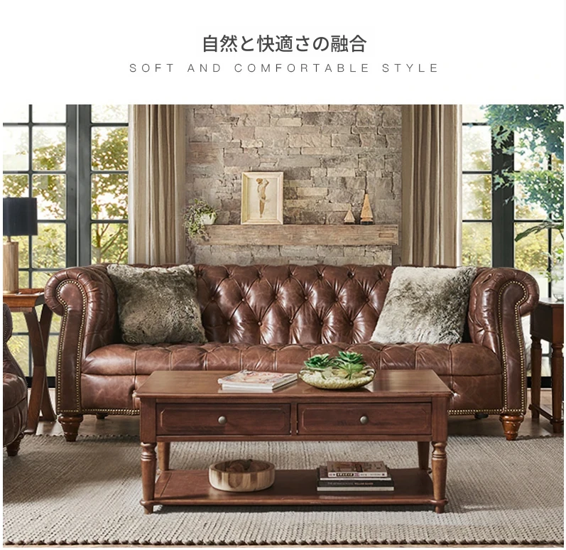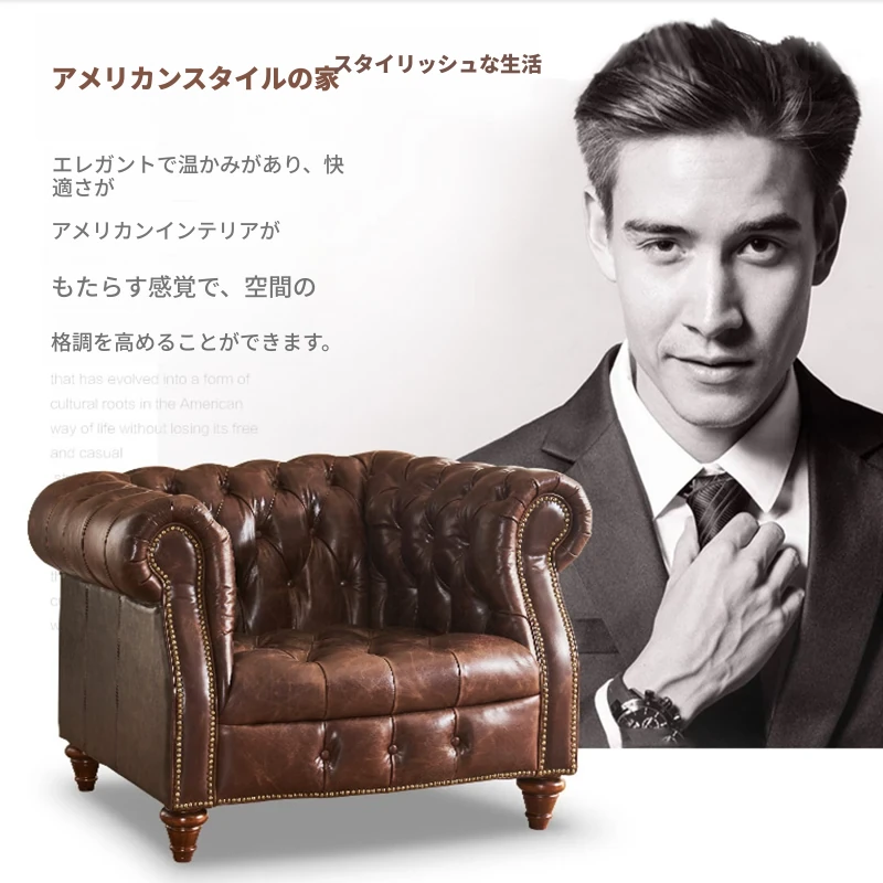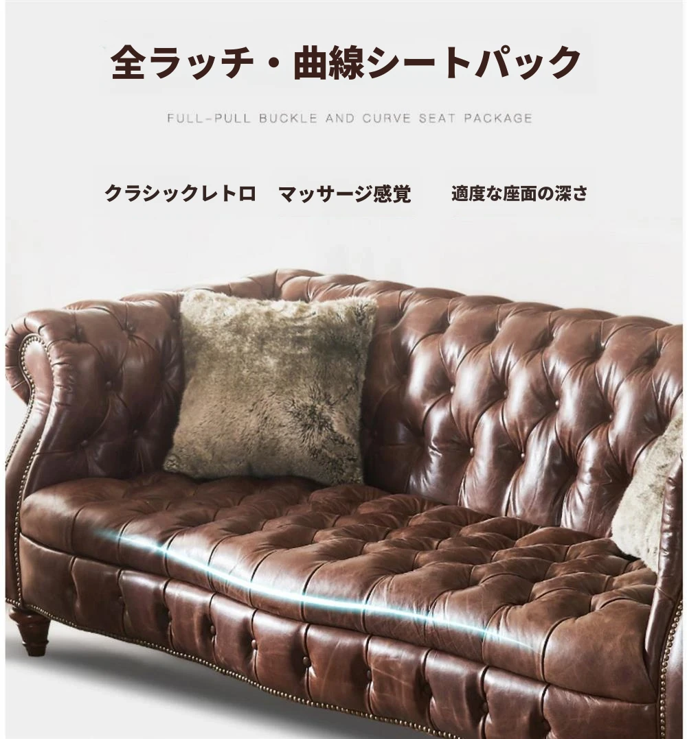 アメリカンスタイル本革ソファ|高品質トップグレイン牛革使用|応接室やシガーバーに最適|ヴィンテージ仕上げの高級ヨーロッパ家具|洗練されたデザインでおもてなしを引き立てます!