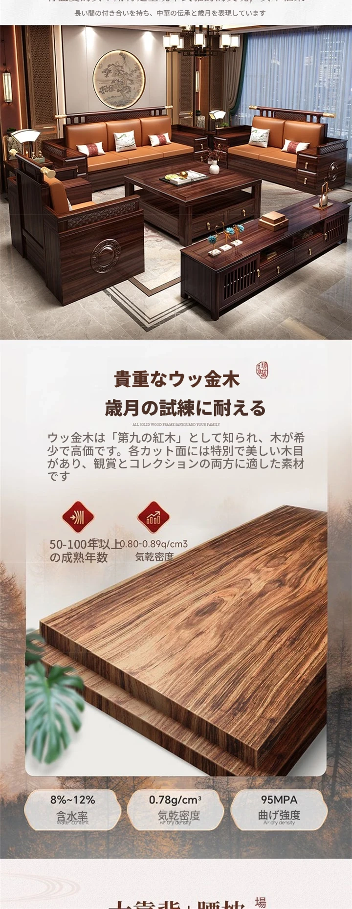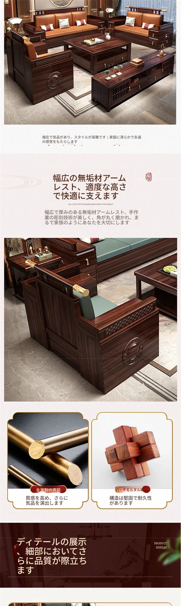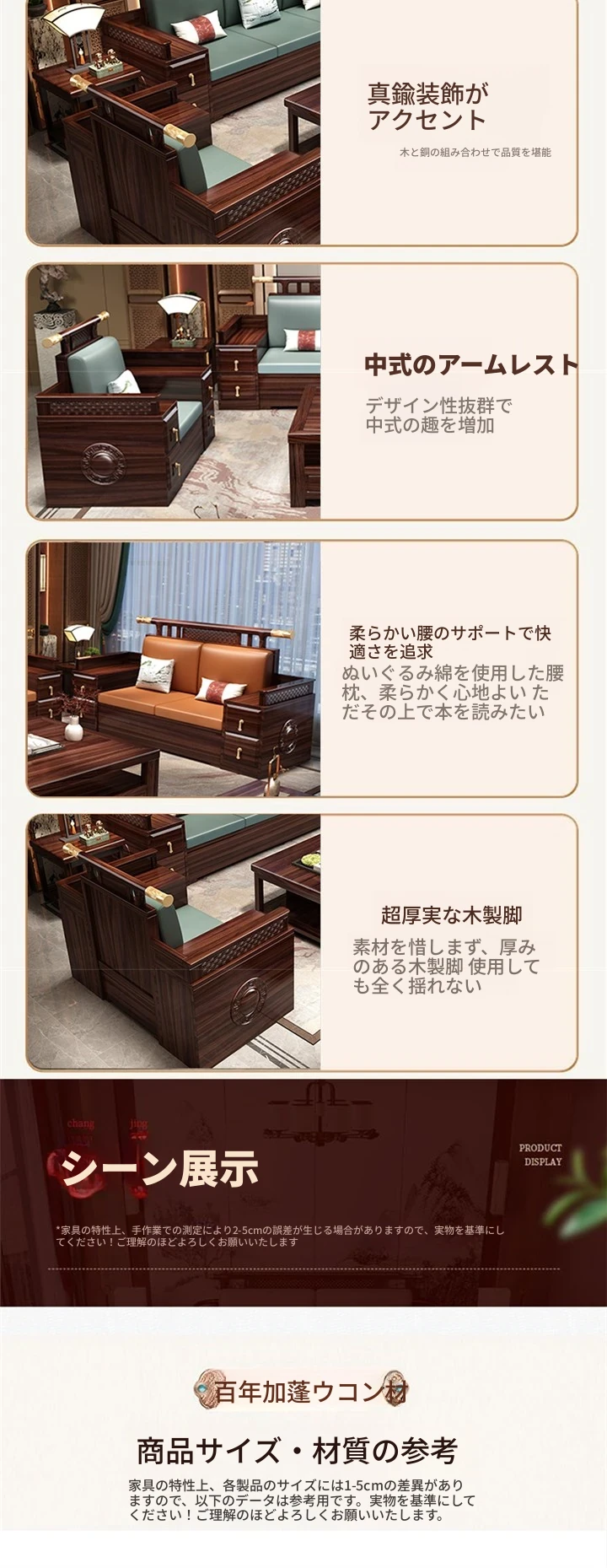 ウー金木製 新中式 全実木ソファ 小型住宅向け 冬夏兼用 リビングルーム用 取り外し可能&洗える収納付き 木製家具で快適な空間を演出!