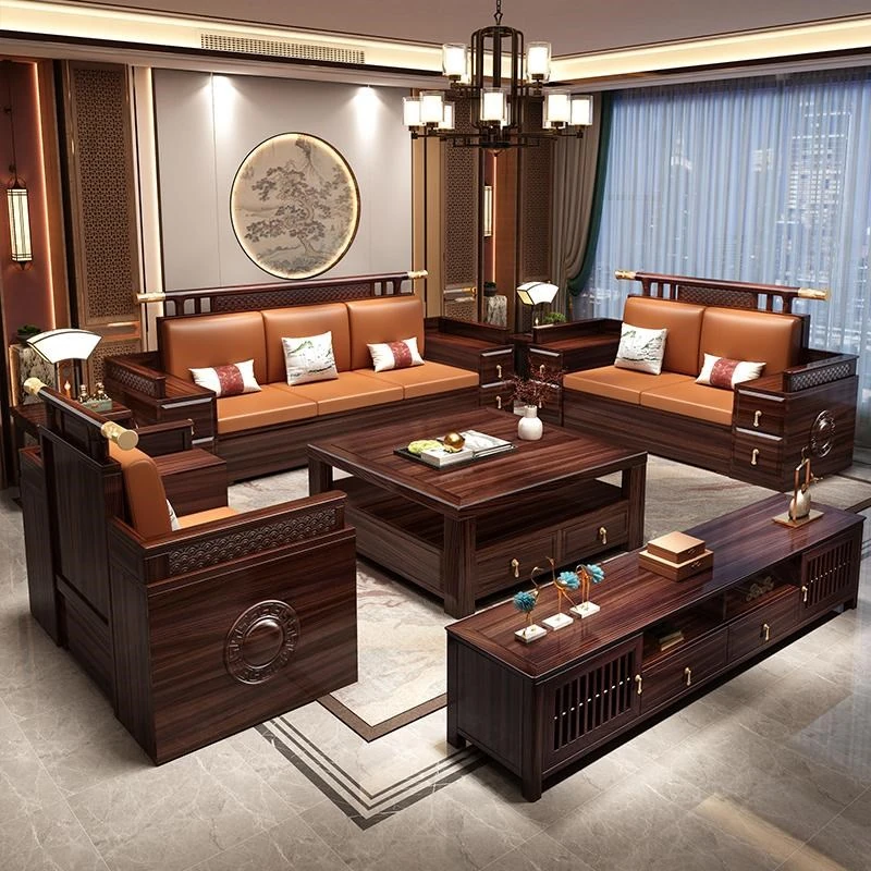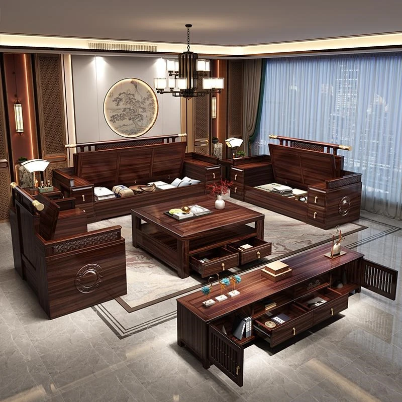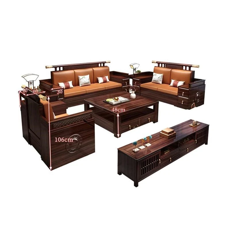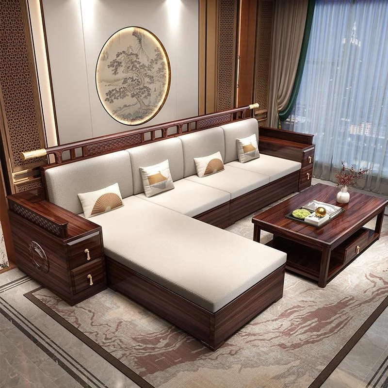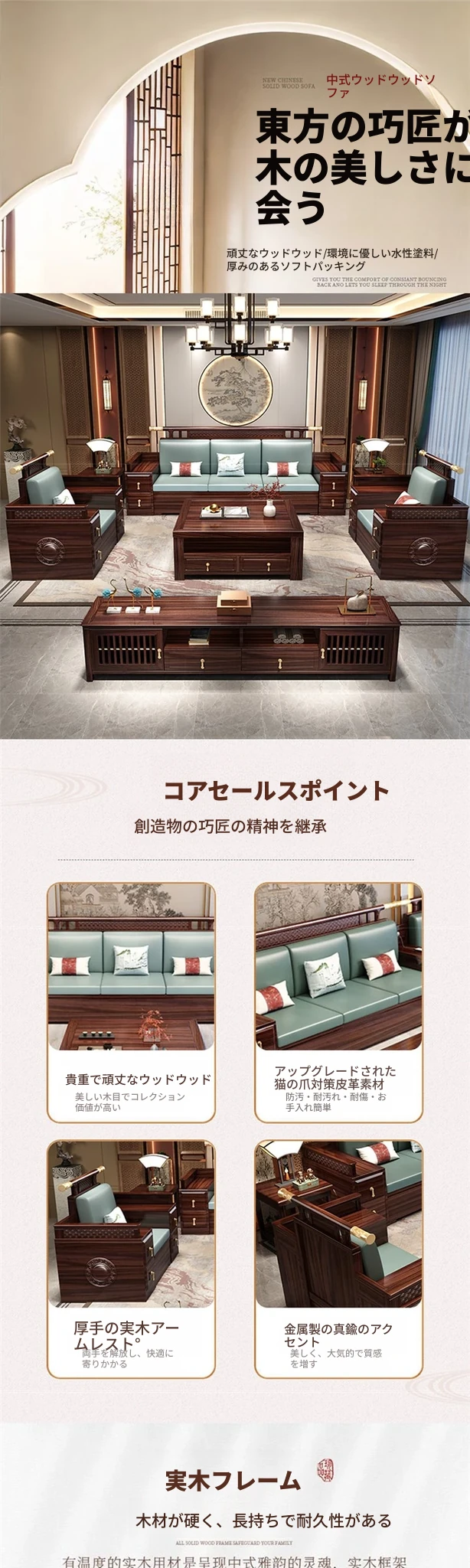 ウー金木製 新中式 全実木ソファ 小型住宅向け 冬夏兼用 リビングルーム用 取り外し可能&洗える収納付き 木製家具で快適な空間を演出!