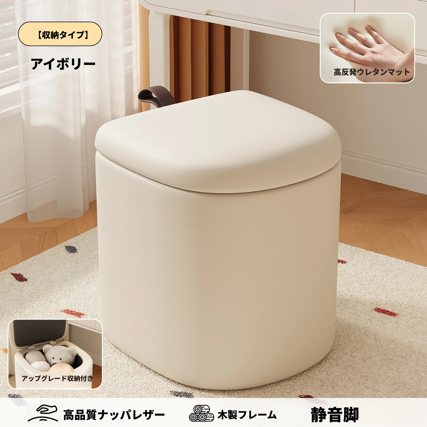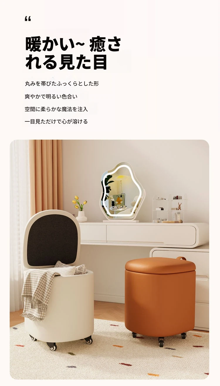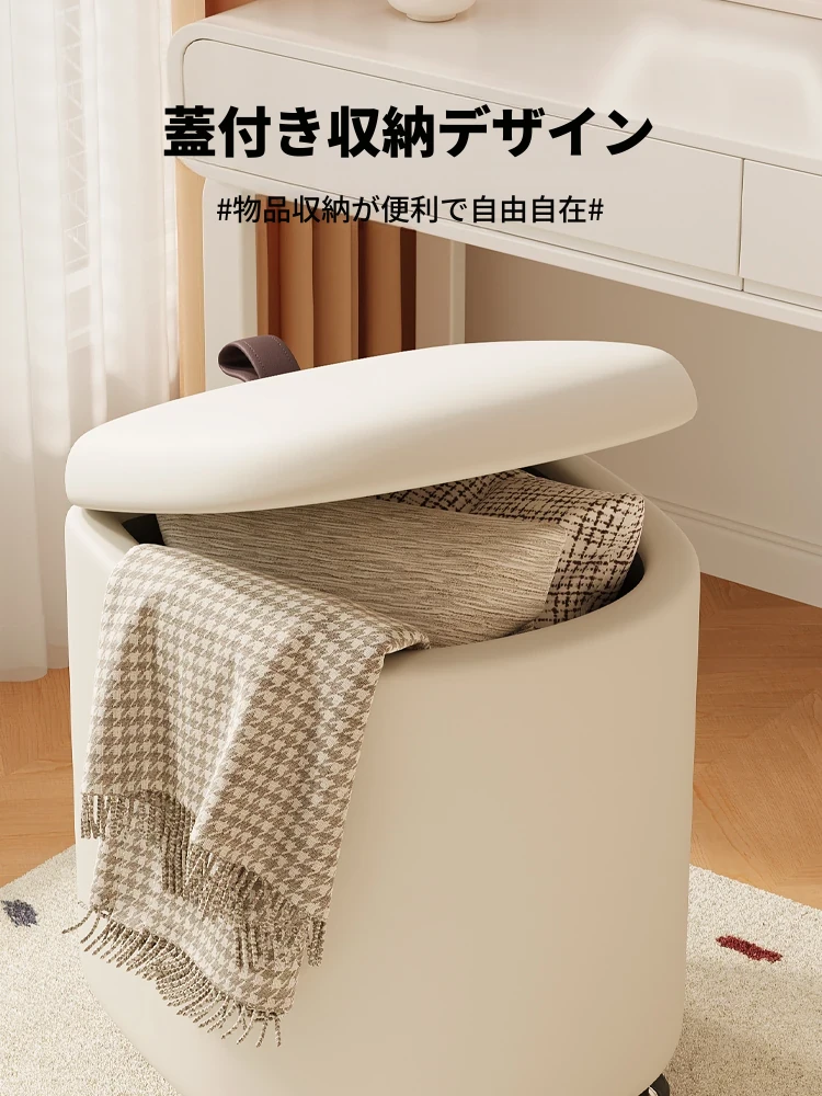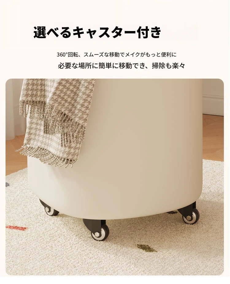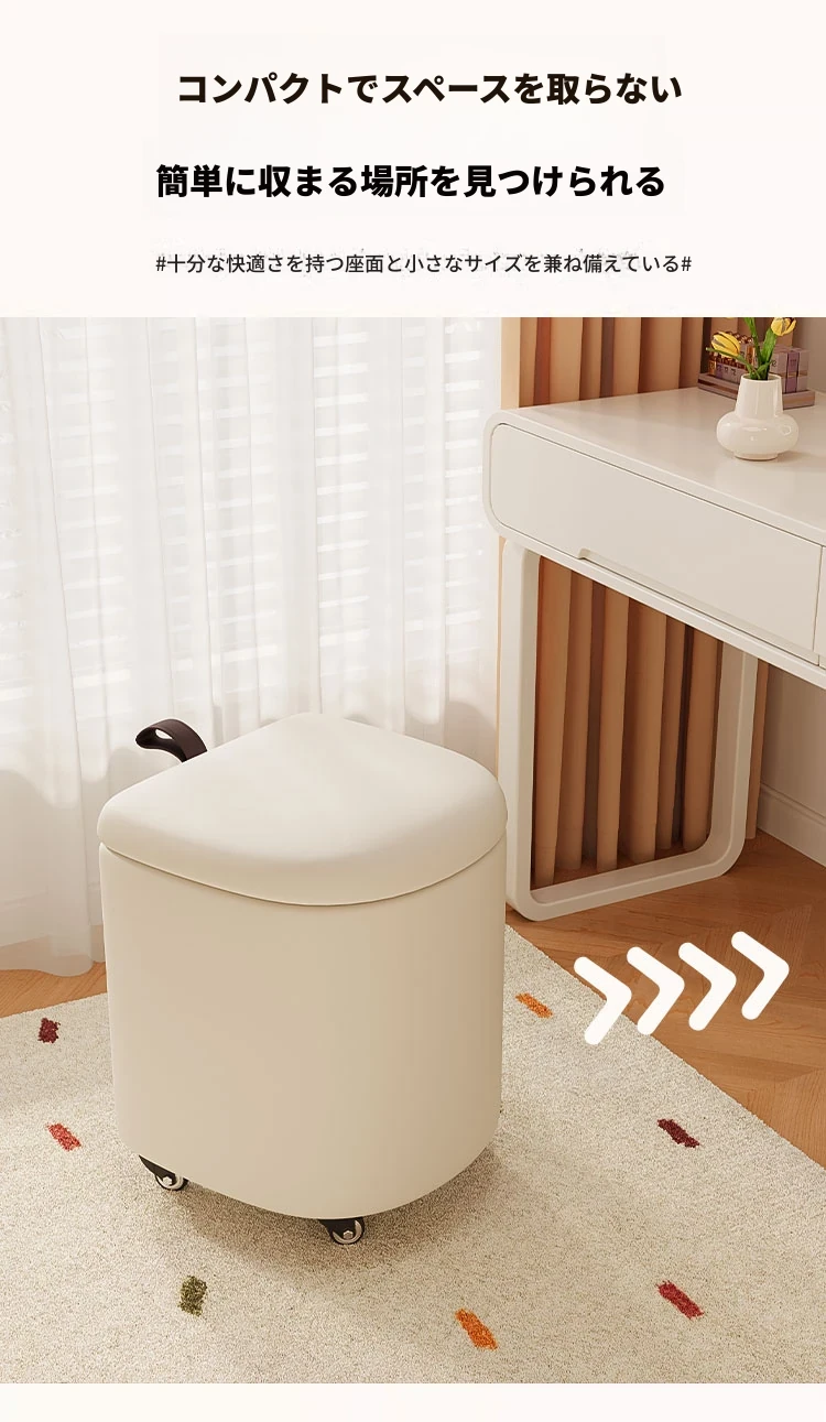 収納力抜群!クリーム風デザインのメイクアップスツール、回転式で便利な四角い形。キャスター付きで移動も楽々!女子の寝室にぴったりなネイルチェア、コンパクトでスタイリッシュなアイテムです。