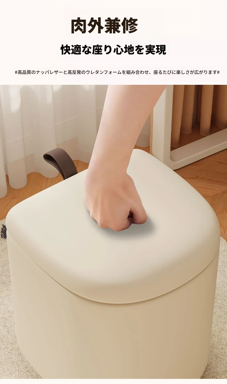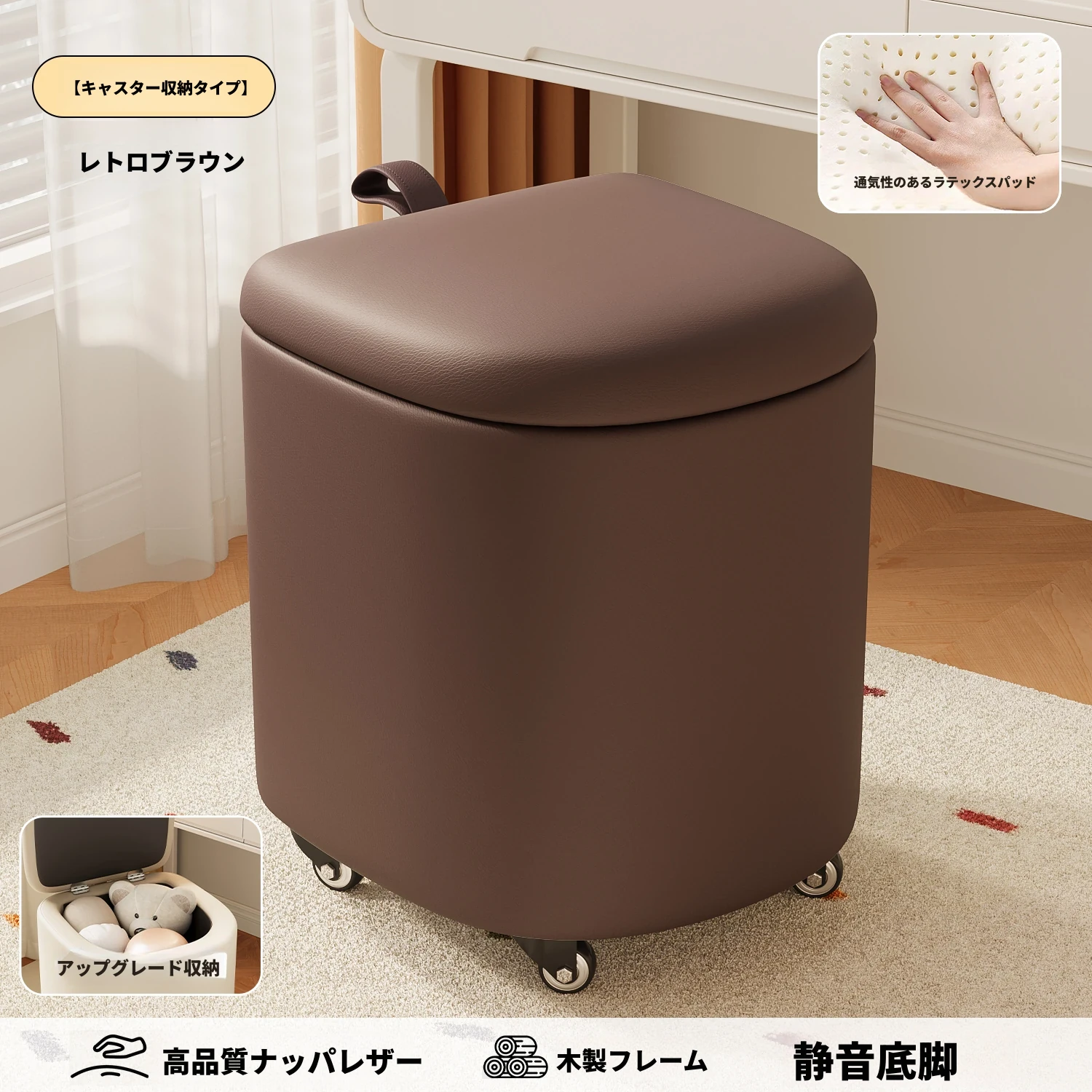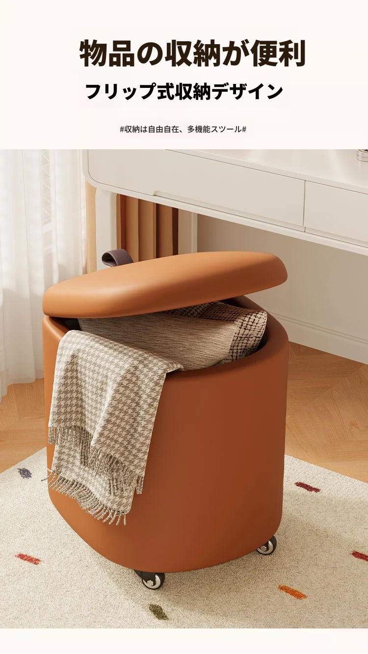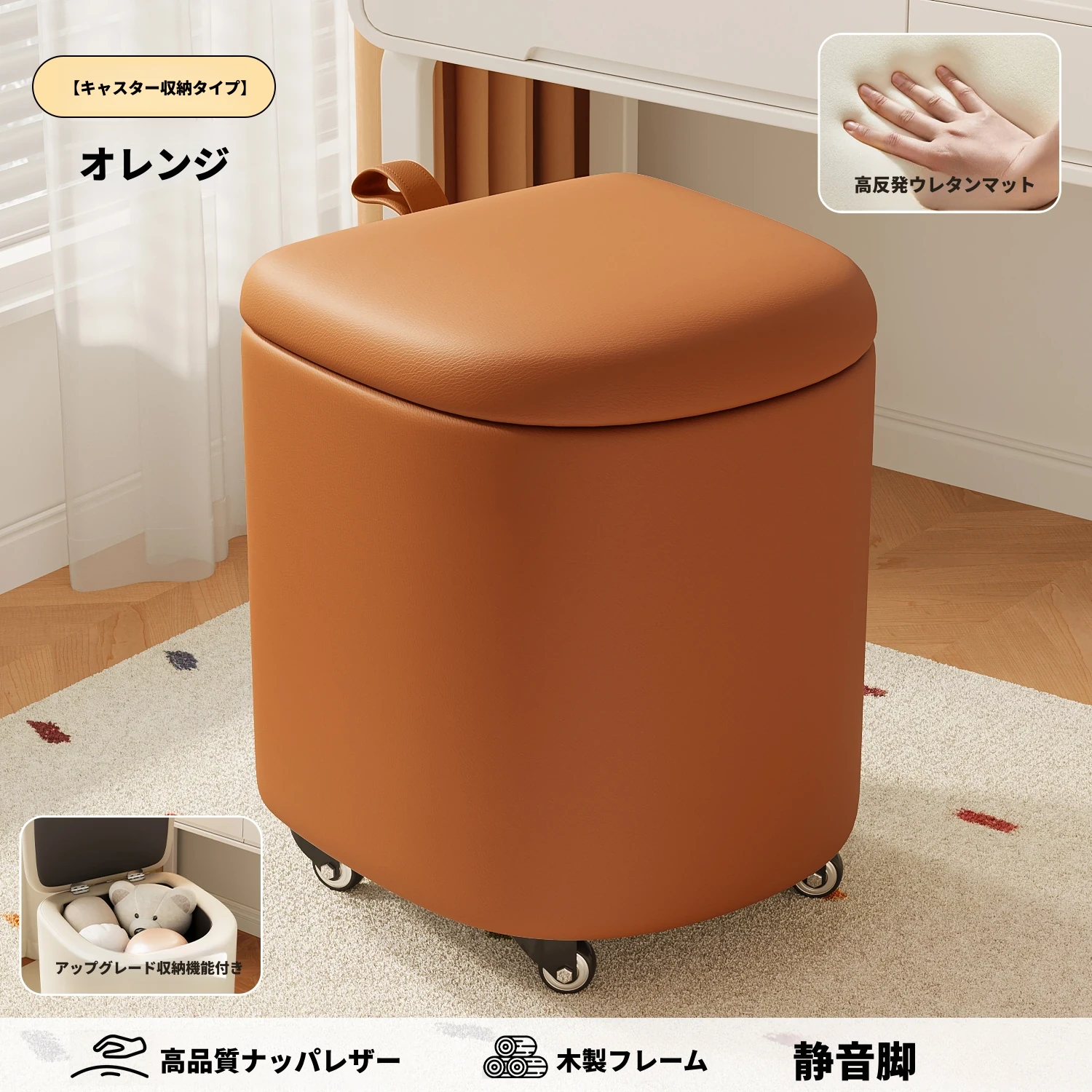 収納力抜群!クリーム風デザインのメイクアップスツール、回転式で便利な四角い形。キャスター付きで移動も楽々!女子の寝室にぴったりなネイルチェア、コンパクトでスタイリッシュなアイテムです。
