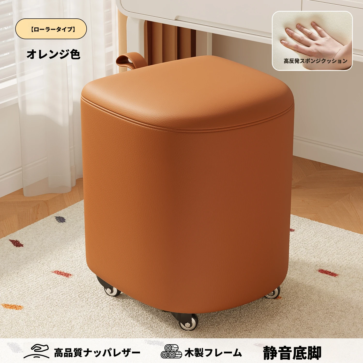 キャスタータイプ⭐オレンジレッド【高反発ウレタンマット】高品質ナッパレザー-360°回転