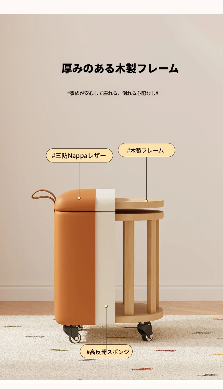 キャスター収納タイプ⭐オレンジレッド【通気性ラテックスマット】高品質ナッパレザー-360°回転