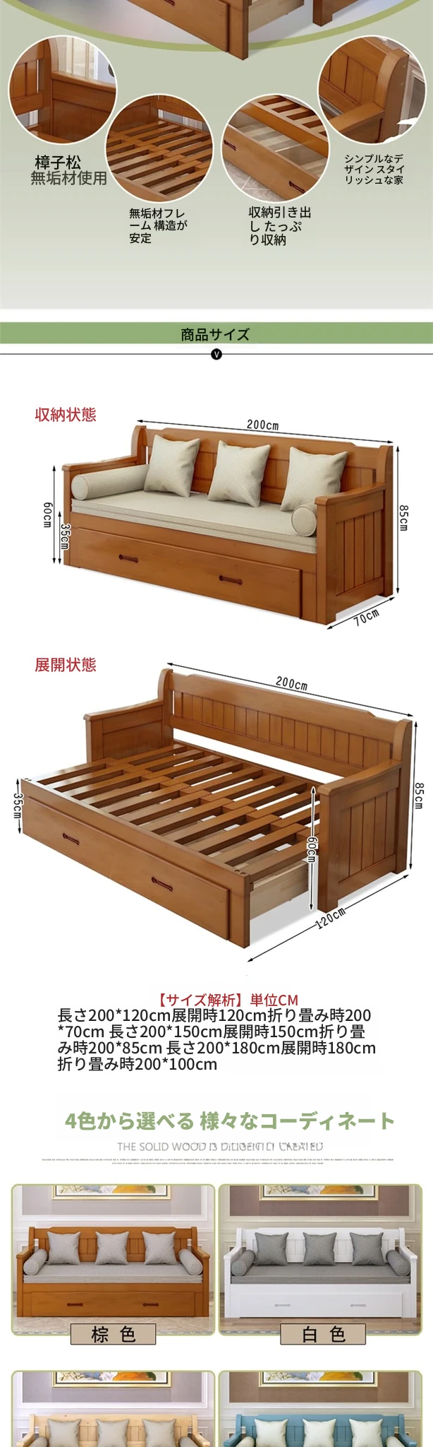 選りすぐりのウッドソファベッド|折りたたみ可能なリビング用ダブルサイズ|1.5m・1.8mの多機能&伸縮式|小Y型のお部屋にも最適!スライド式でスペースを有効活用!