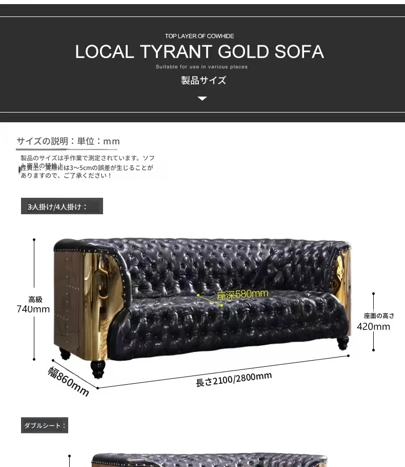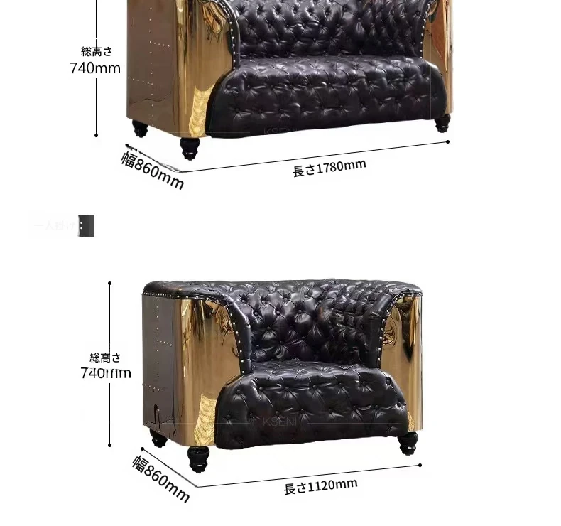 アメリカンインダストリアルスタイルのソファー 銅色アルミパネル使用 メタリックシガーバーソファー ヴィンテージブラック 高級別荘向けの洗練されたデザイン
