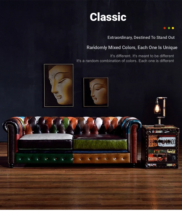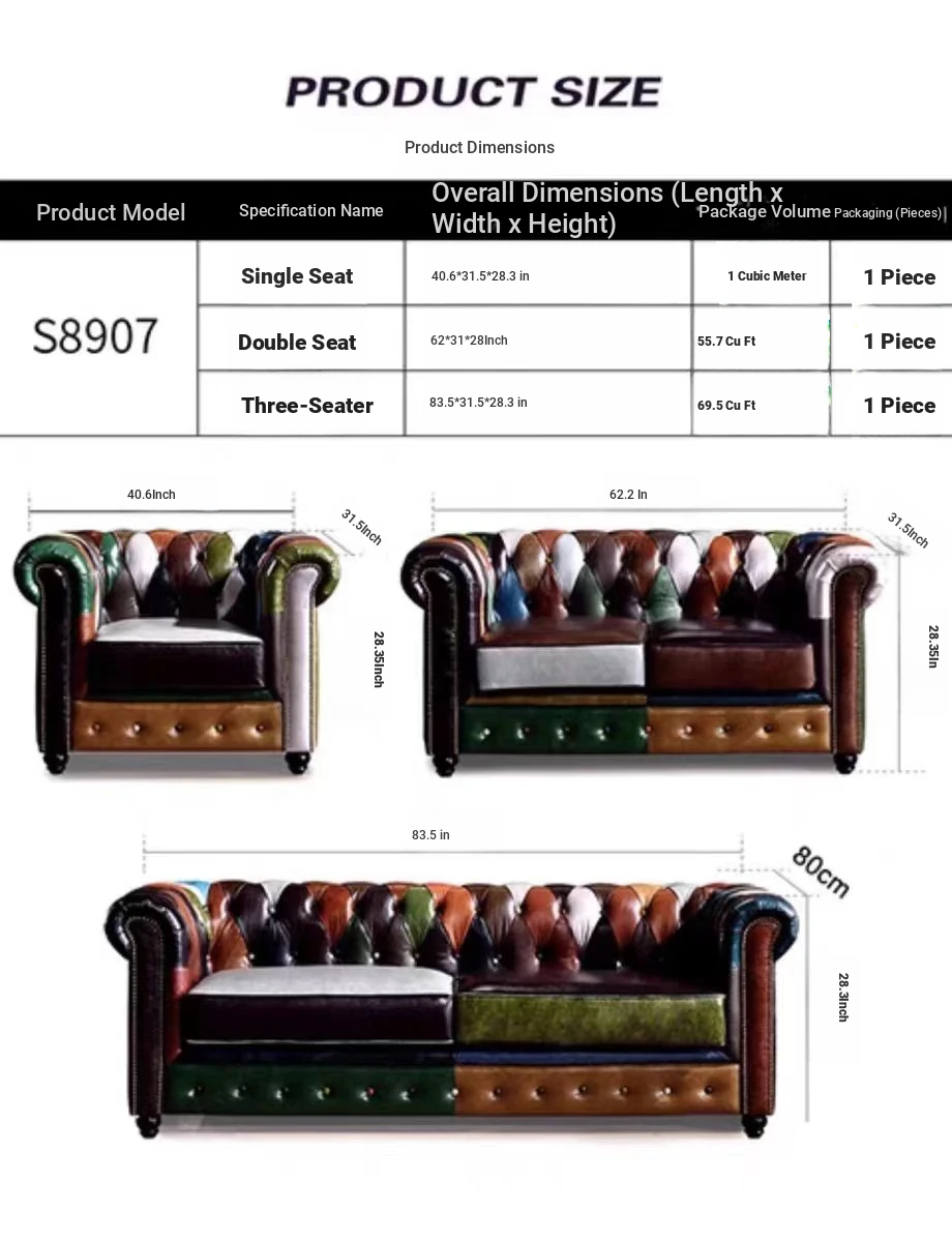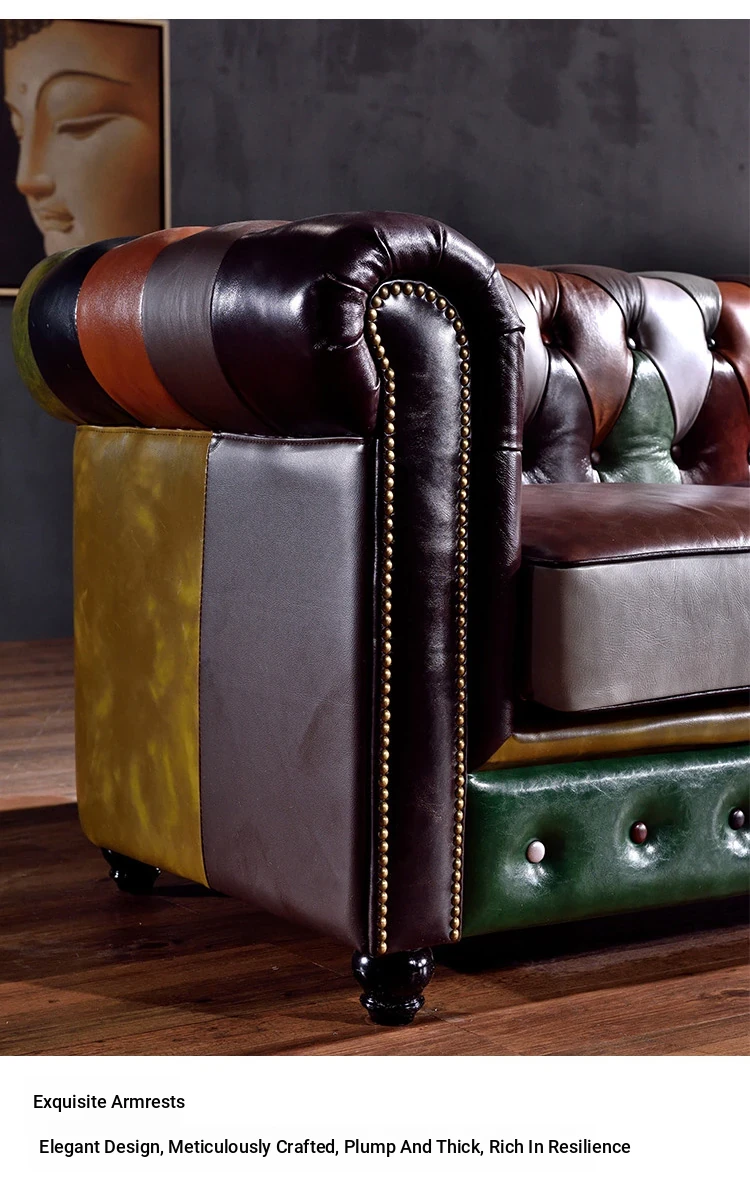 Three-seat sofa/R-grade oil wax leather/contact surface