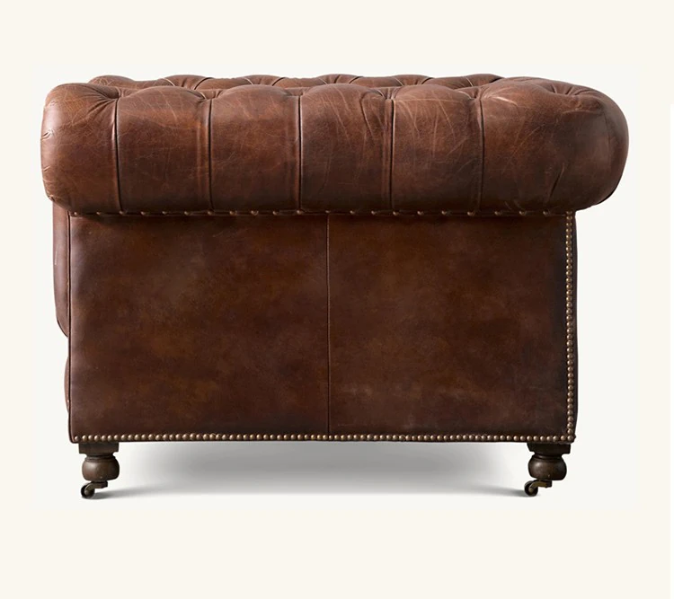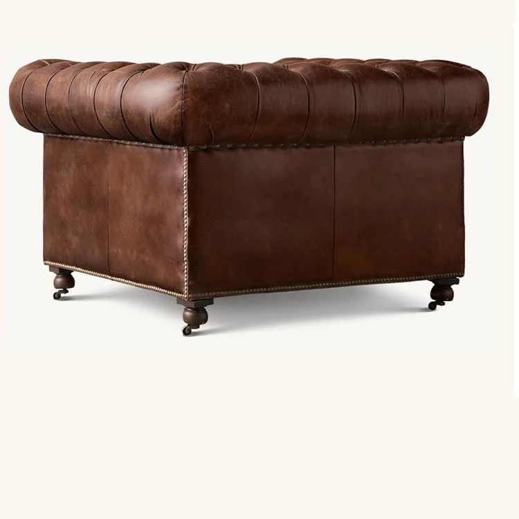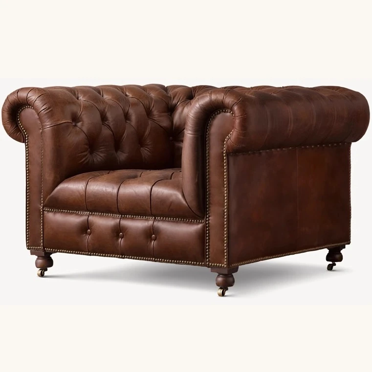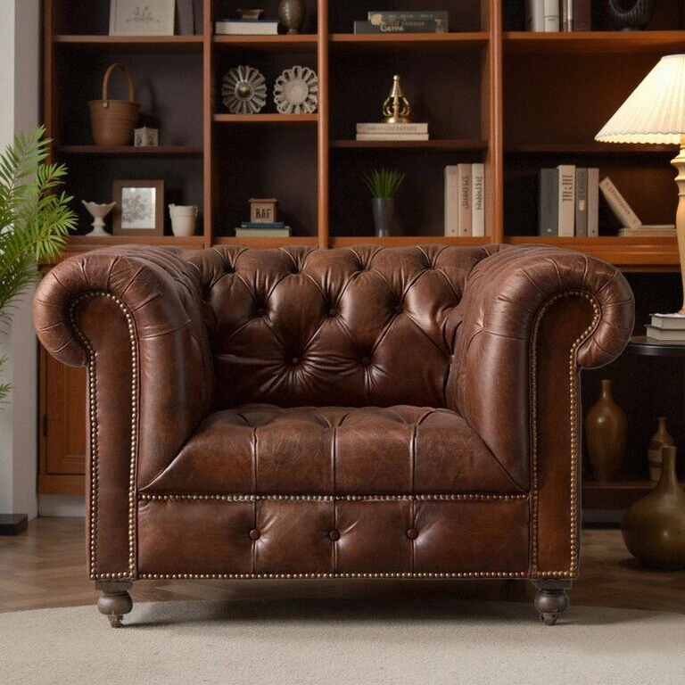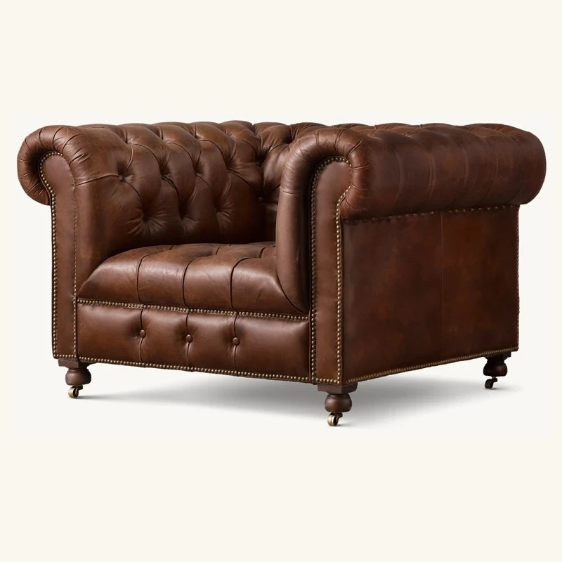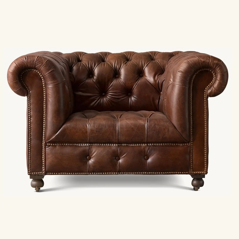アメリカンヴィンテージ本革一人掛けソファー - 中古風のトラ椅子、リラックスできるシガーバー用チェア、居心地抜群のリビングルームに最適!
