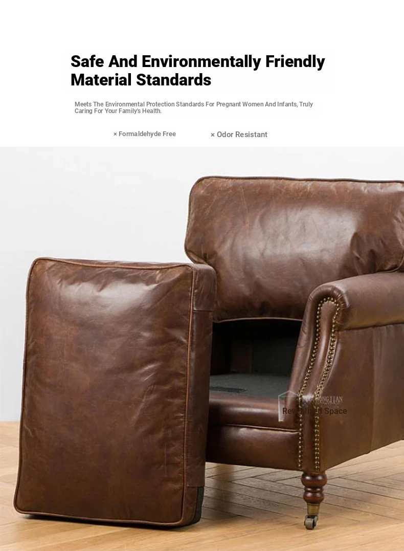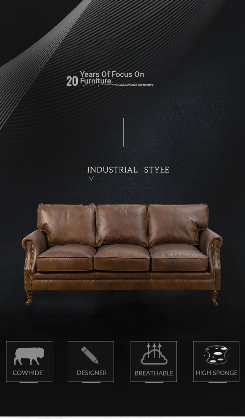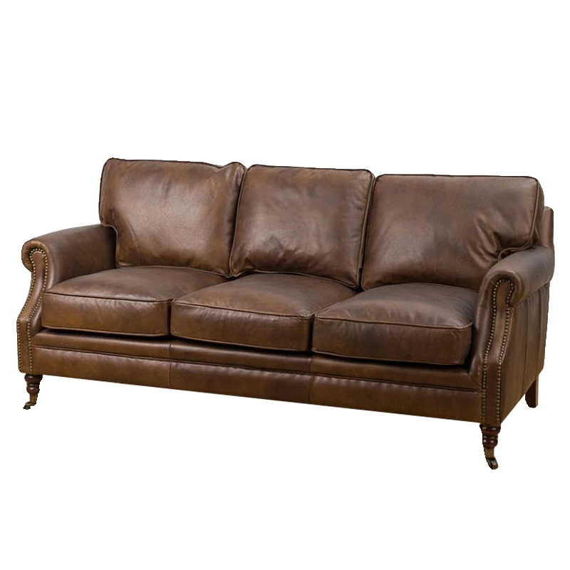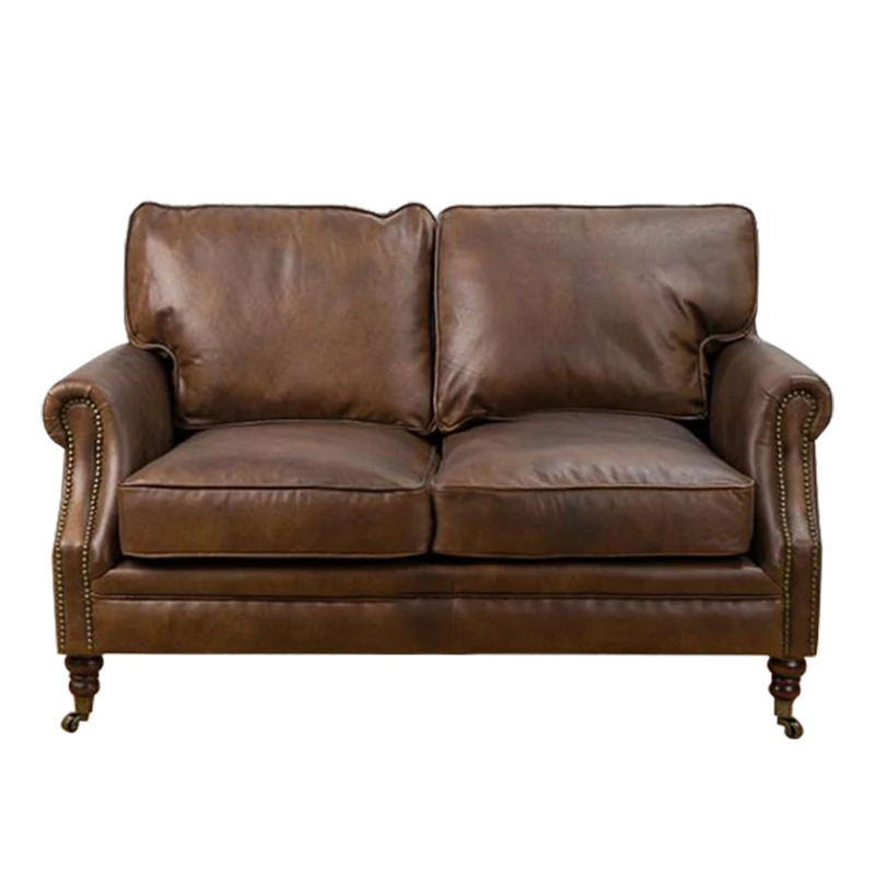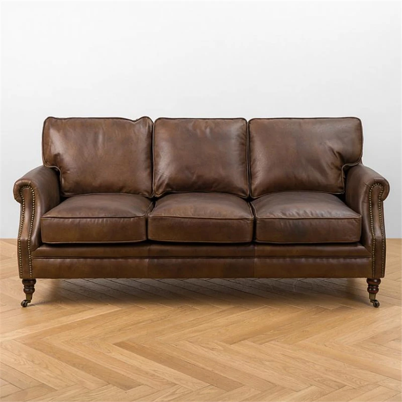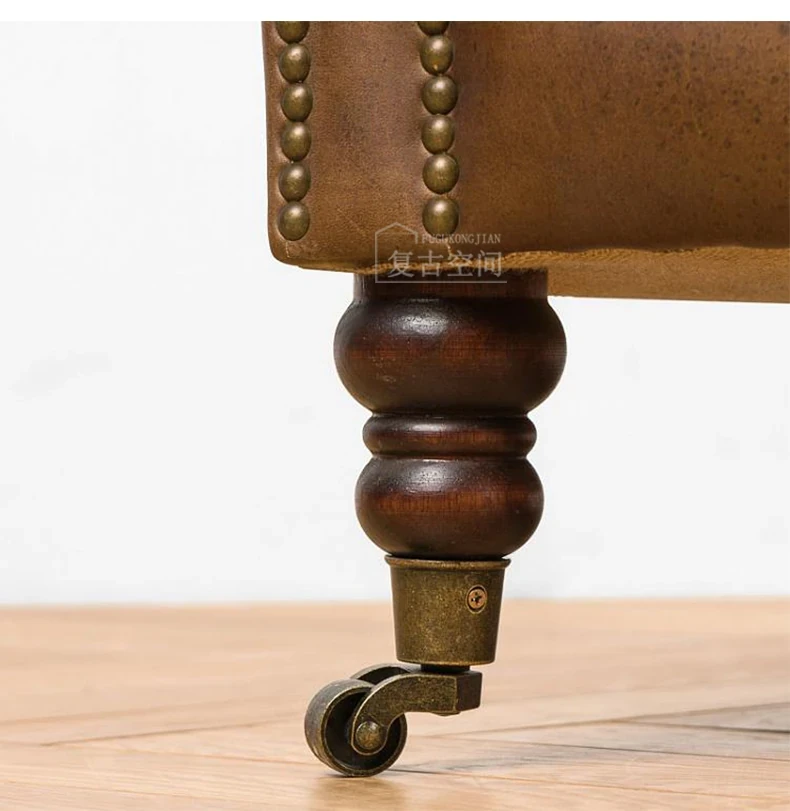 アメリカンレトロなレザーボタンソファー|フレンチアンティーク風オイルワックス牛革使用|リビングルームやシガーバー、ホテル、民宿に最適!高級感溢れるデザインで、くつろぎのひとときを演出します。