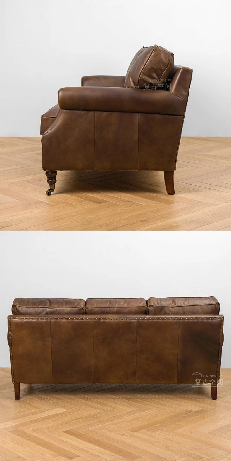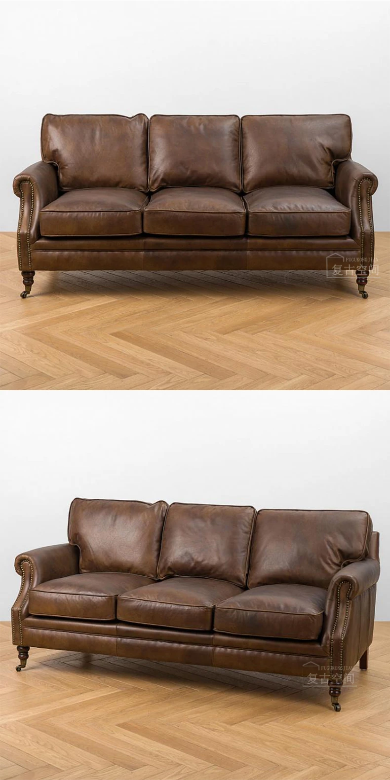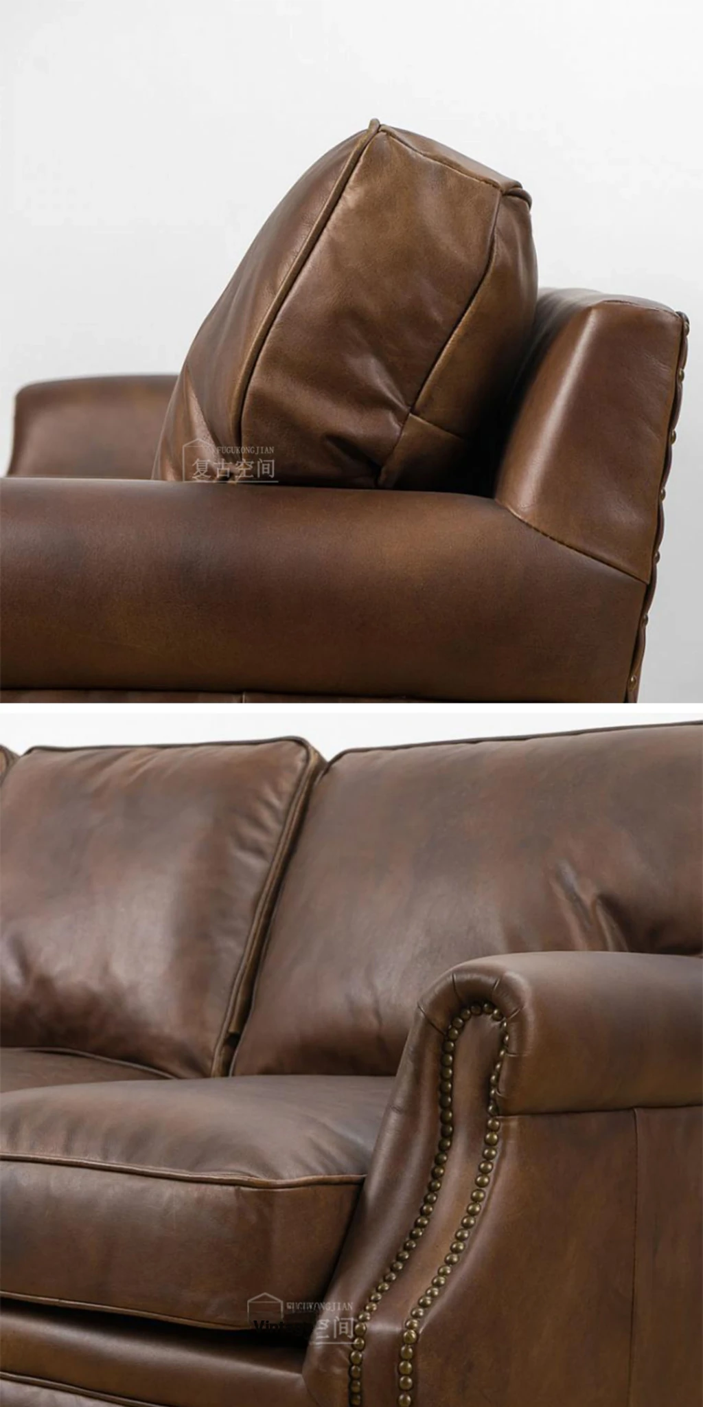 アメリカンレトロなレザーボタンソファー|フレンチアンティーク風オイルワックス牛革使用|リビングルームやシガーバー、ホテル、民宿に最適!高級感溢れるデザインで、くつろぎのひとときを演出します。