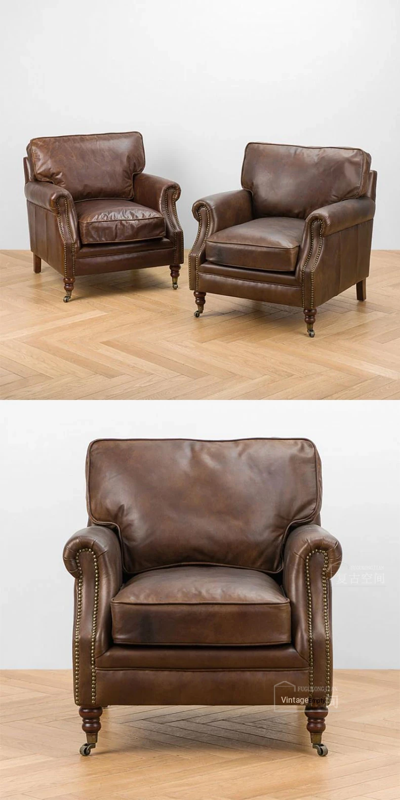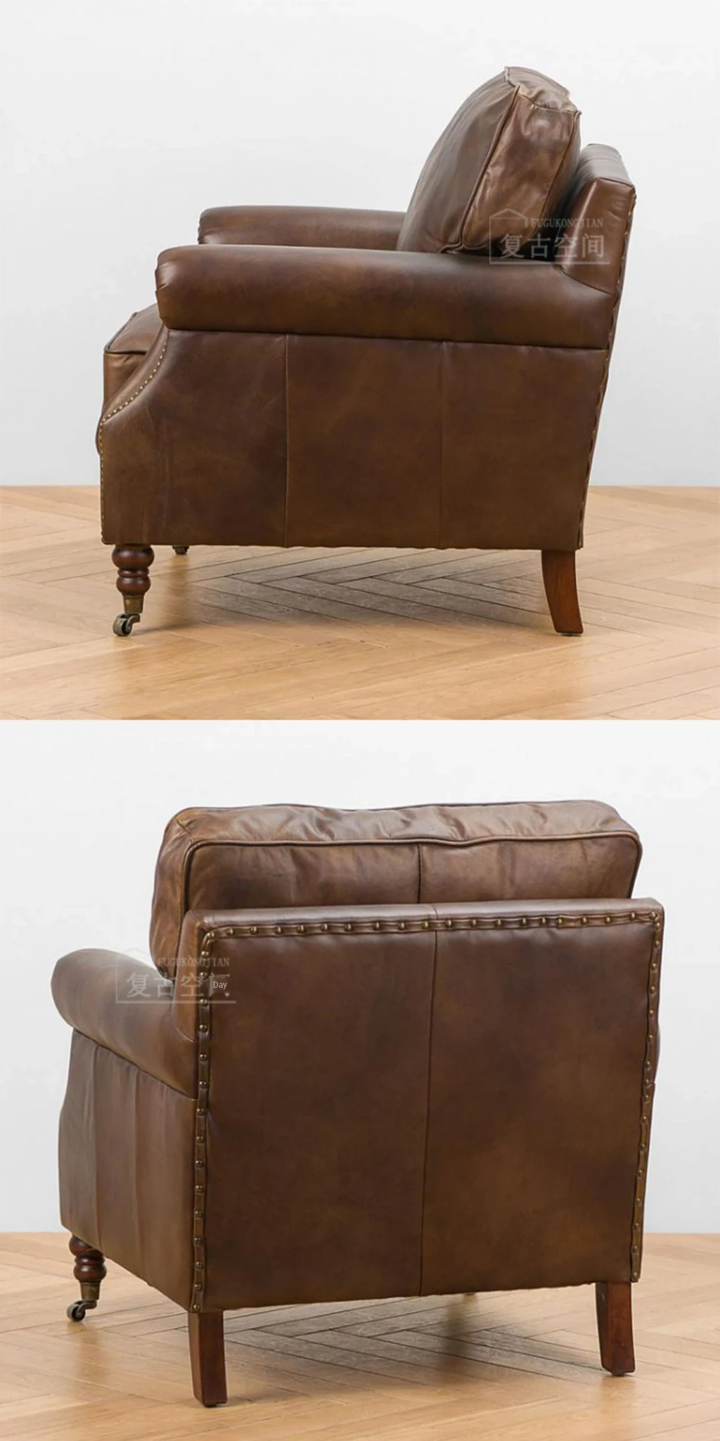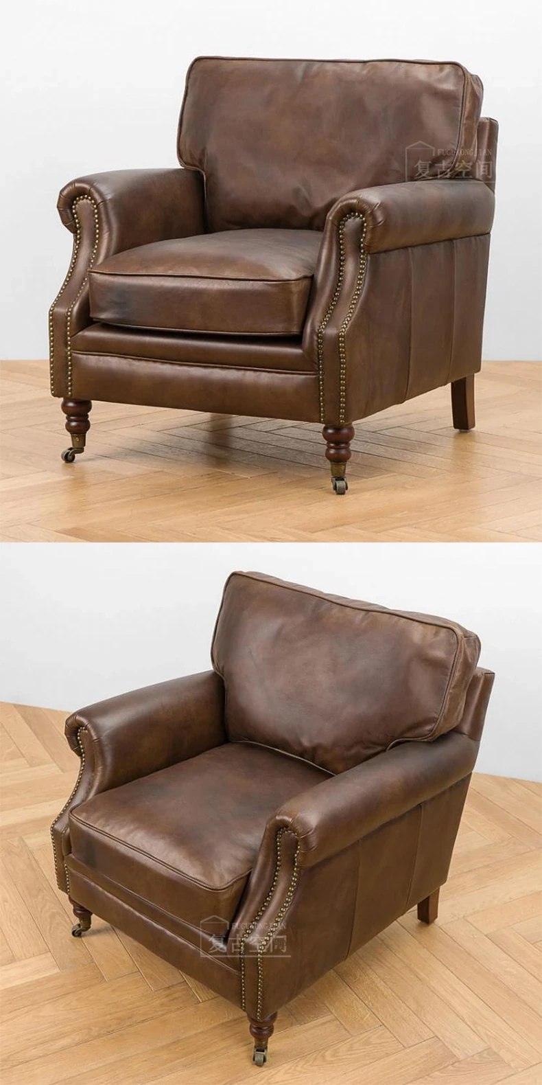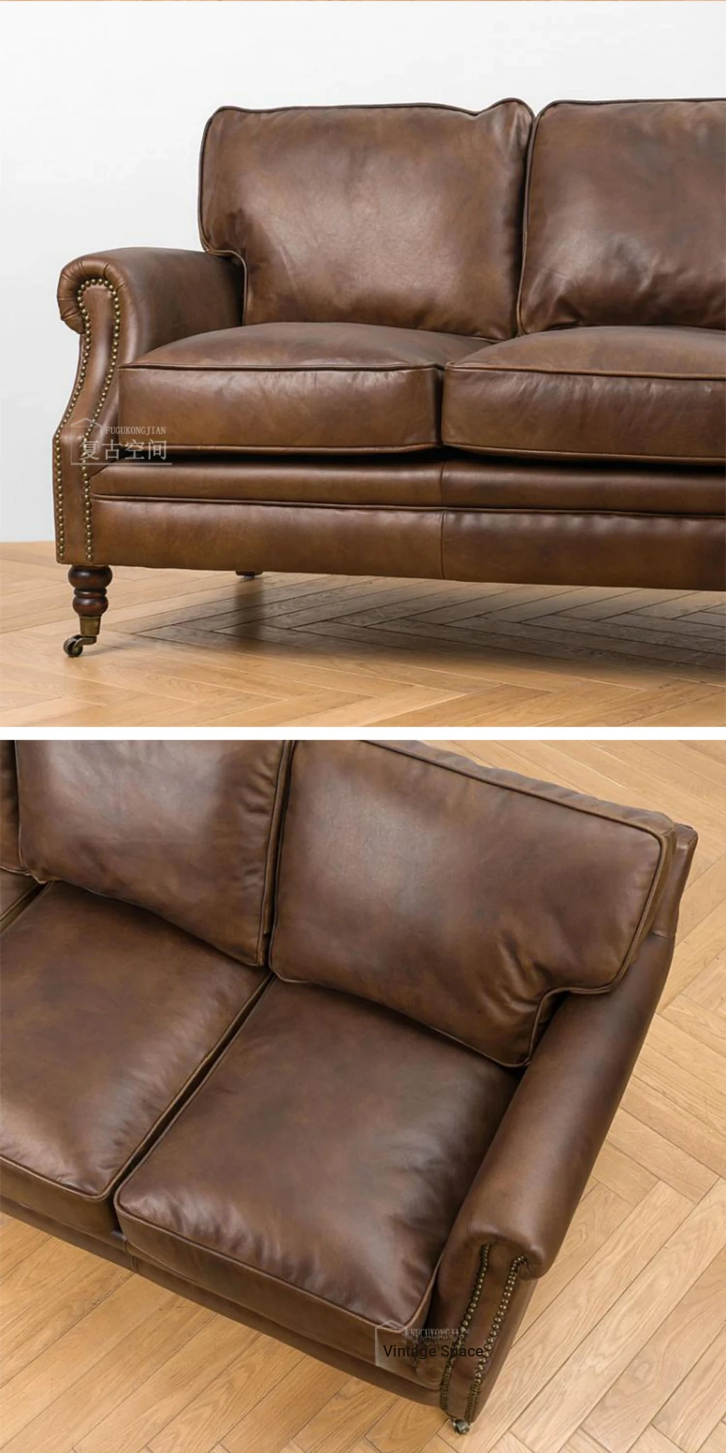 アメリカンレトロなレザーボタンソファー|フレンチアンティーク風オイルワックス牛革使用|リビングルームやシガーバー、ホテル、民宿に最適!高級感溢れるデザインで、くつろぎのひとときを演出します。