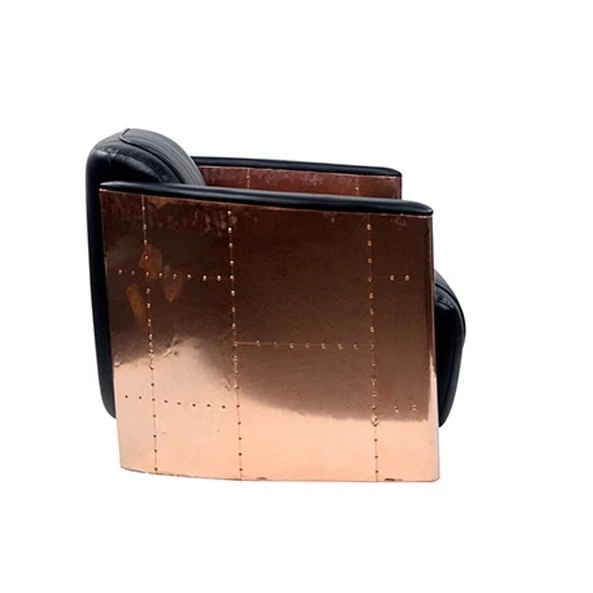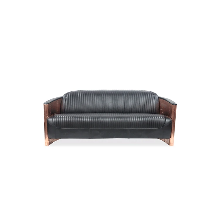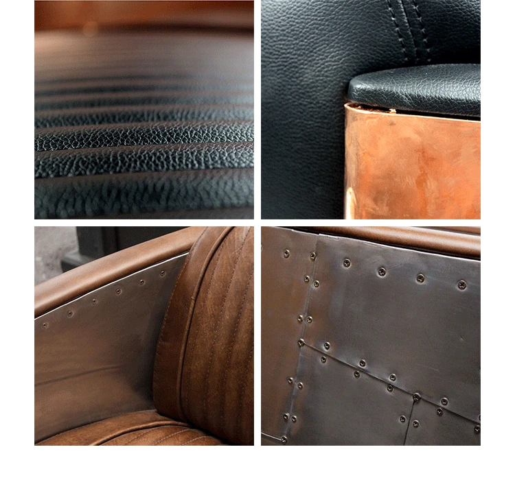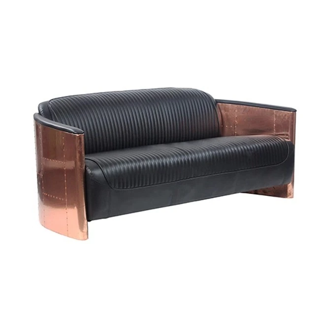 アメリカンレトロ本革ソファー・ローズゴールド色 中古風アルミ製シガーバーソファー 工業風ヴィンテージメタル仕上げでお洒落な空間を演出!