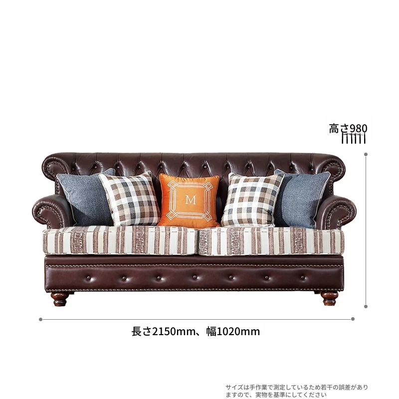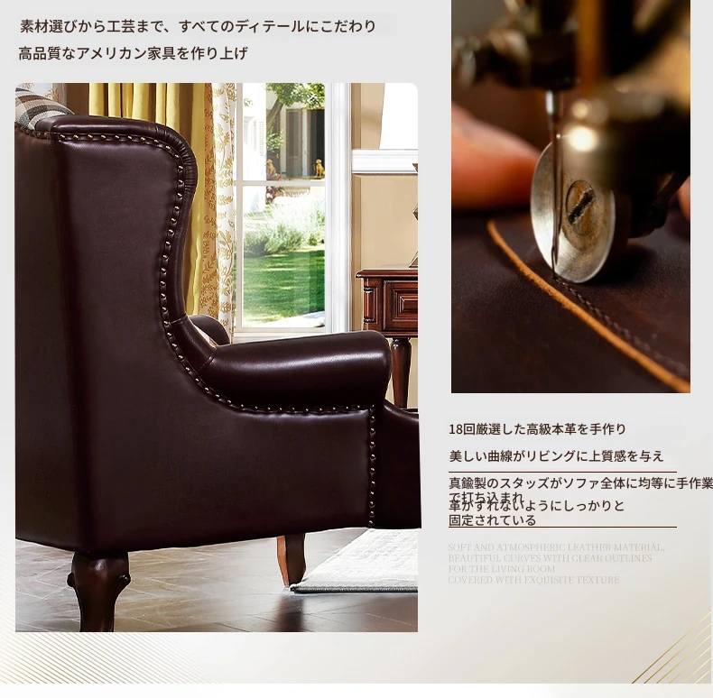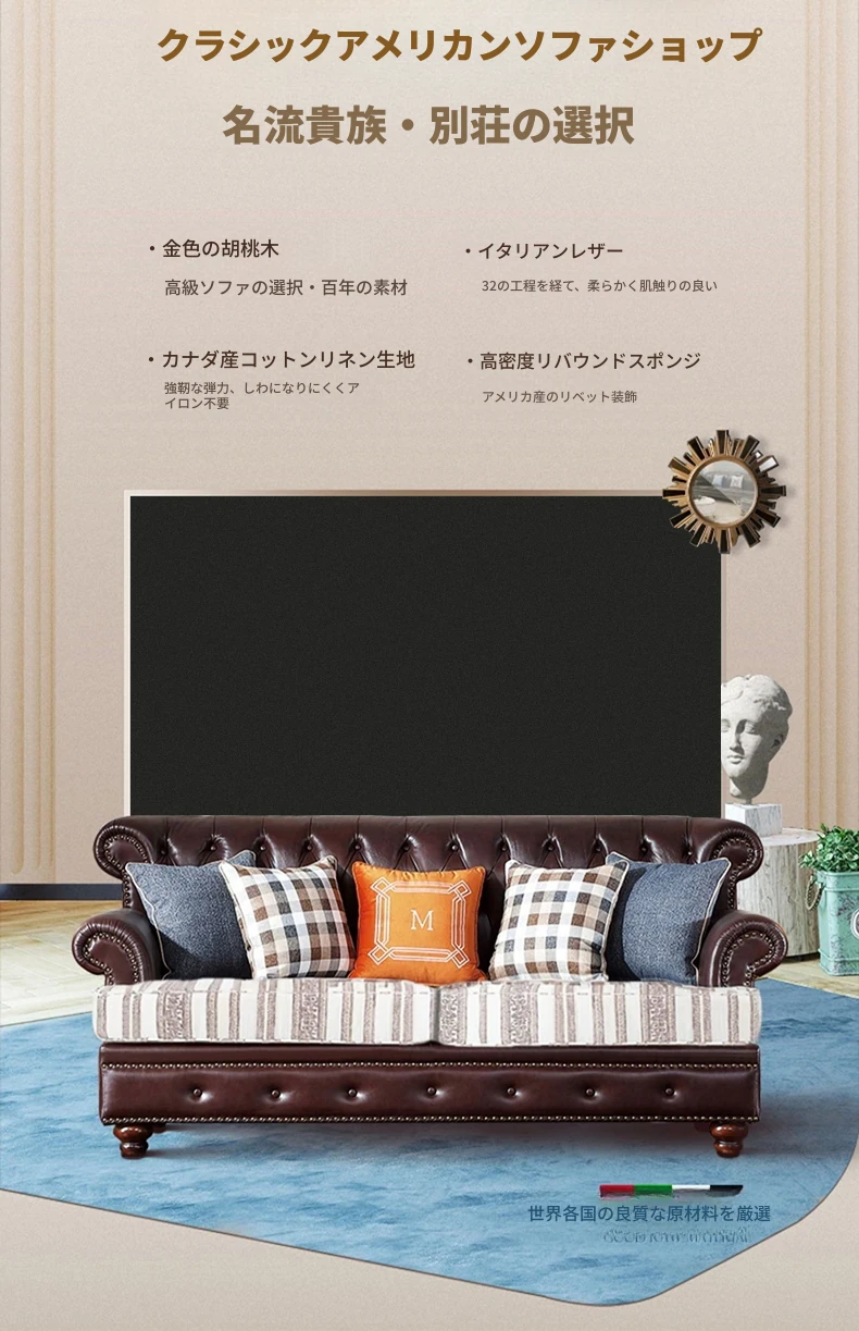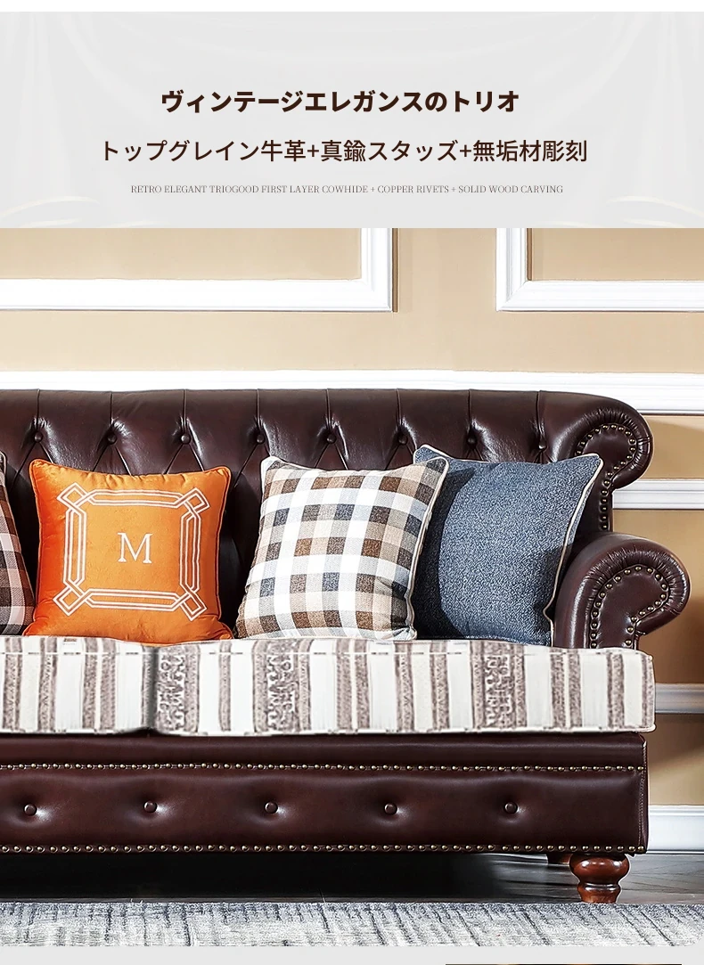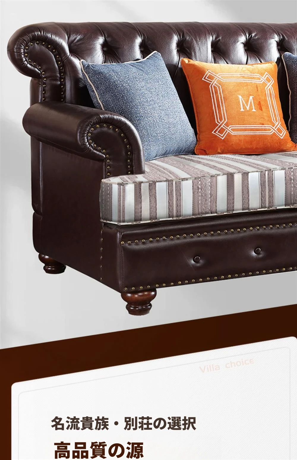 アメリカンレトロスタイルのボタン留め本革ソファ|ヴィンテージオイルワックス仕上げの牛革を使用した、エレガントなリビング・接客スペースにぴったりの高級ソファ。快適さとデザイン性を兼ね備えた一品です!